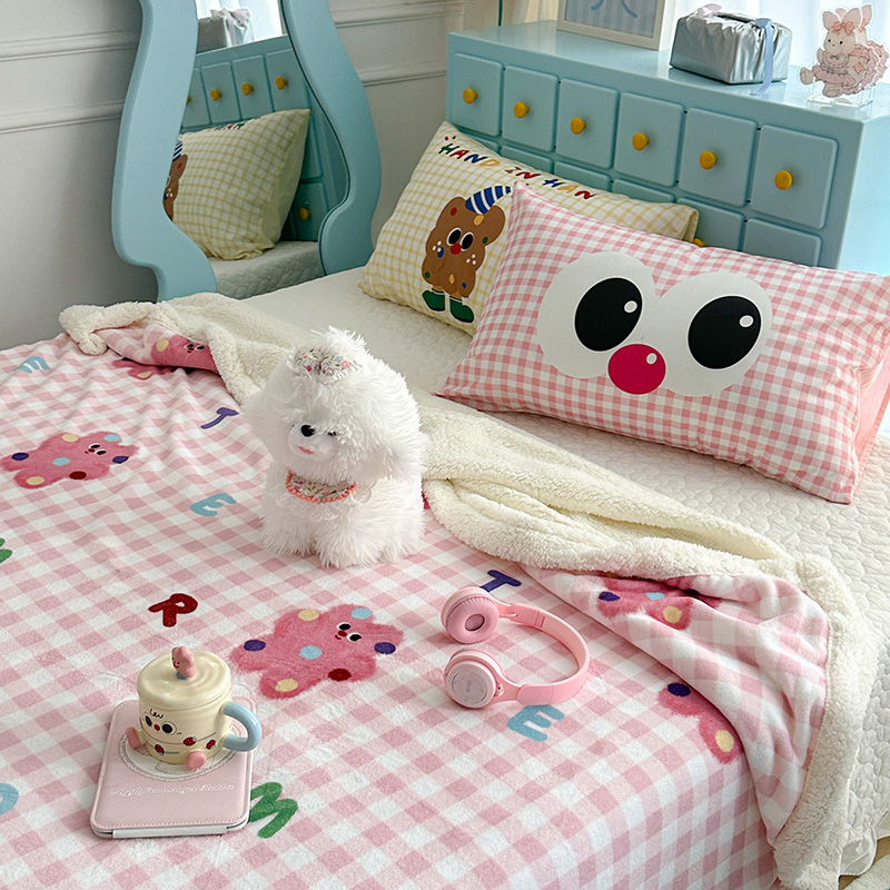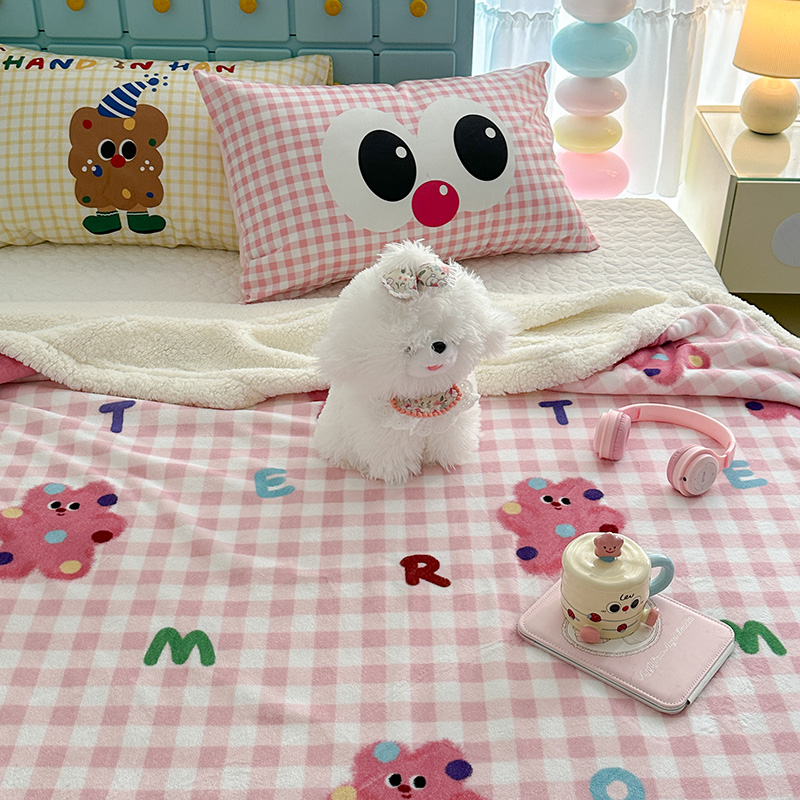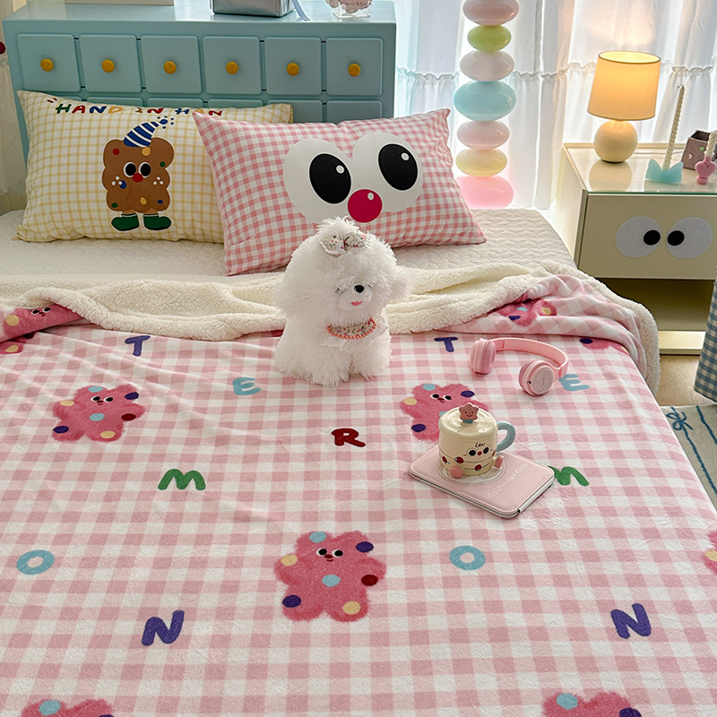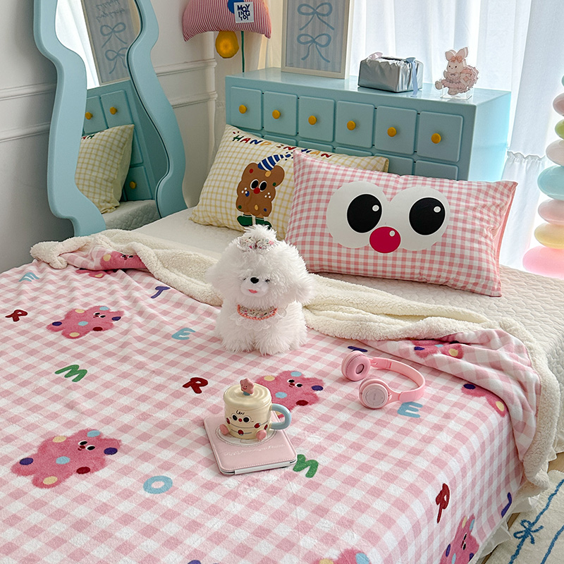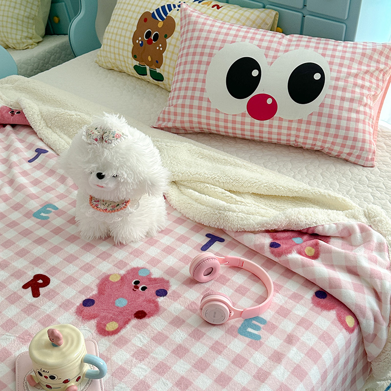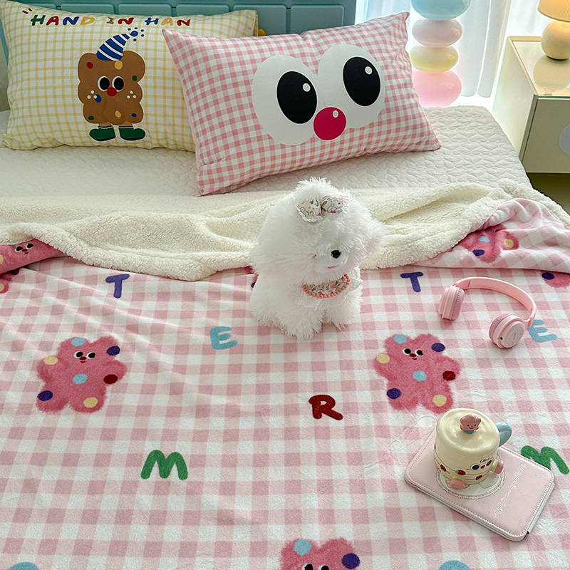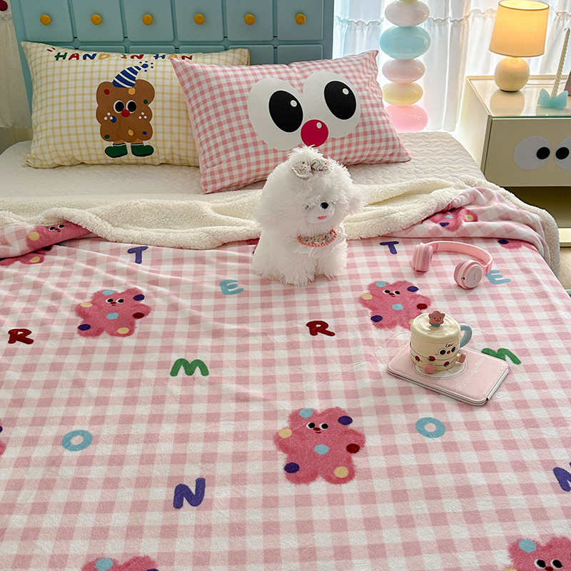 昔可家纺 2024新款羊羔绒牛奶绒毛毯系列(三)-卡通系列 点点粉格猫