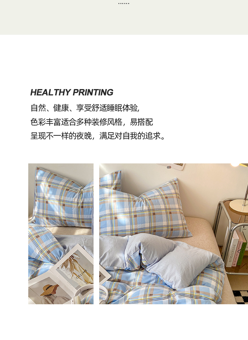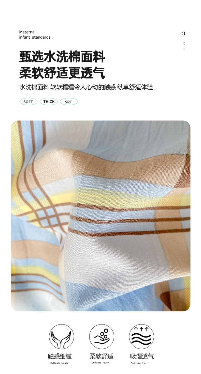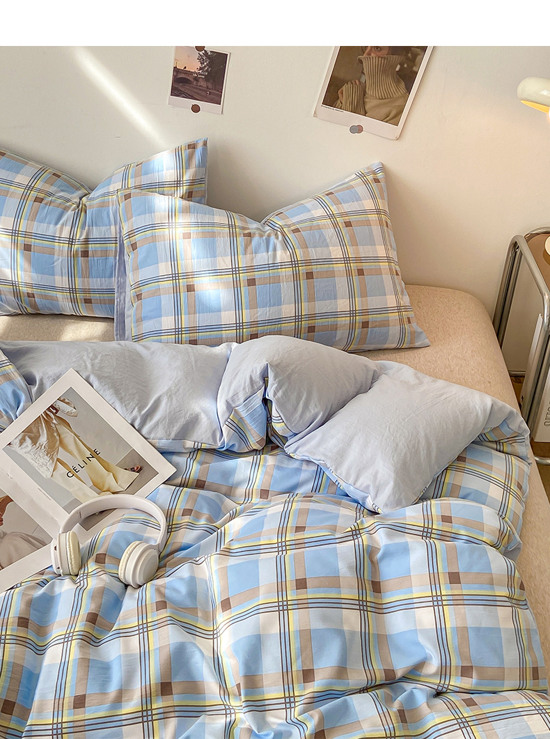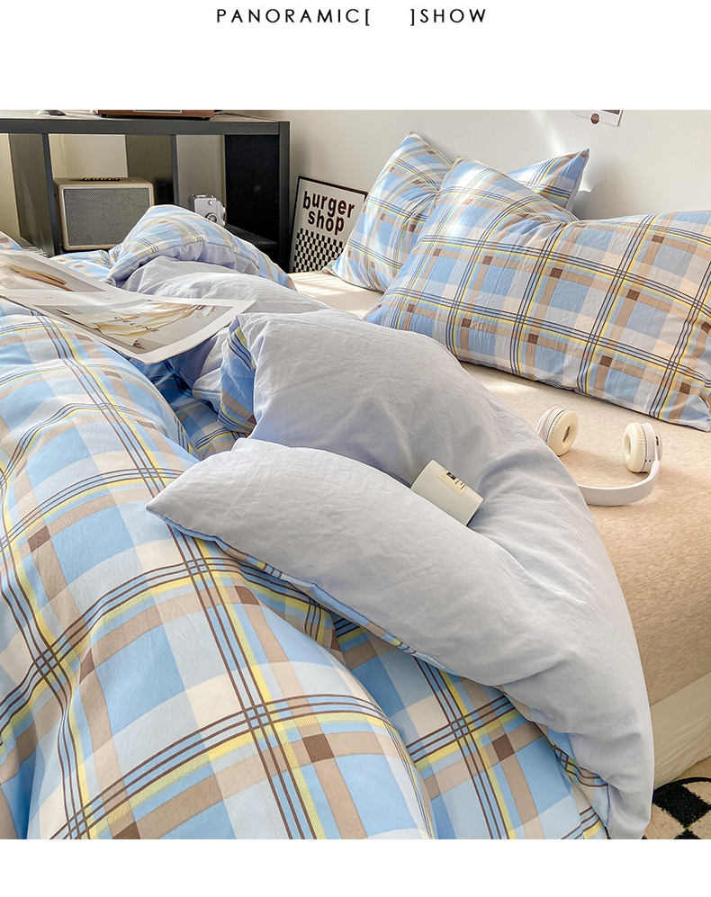 商品名称:悦织湾家纺 2025新款日式简约格子水洗棉单品被套系列 莫尼蓝