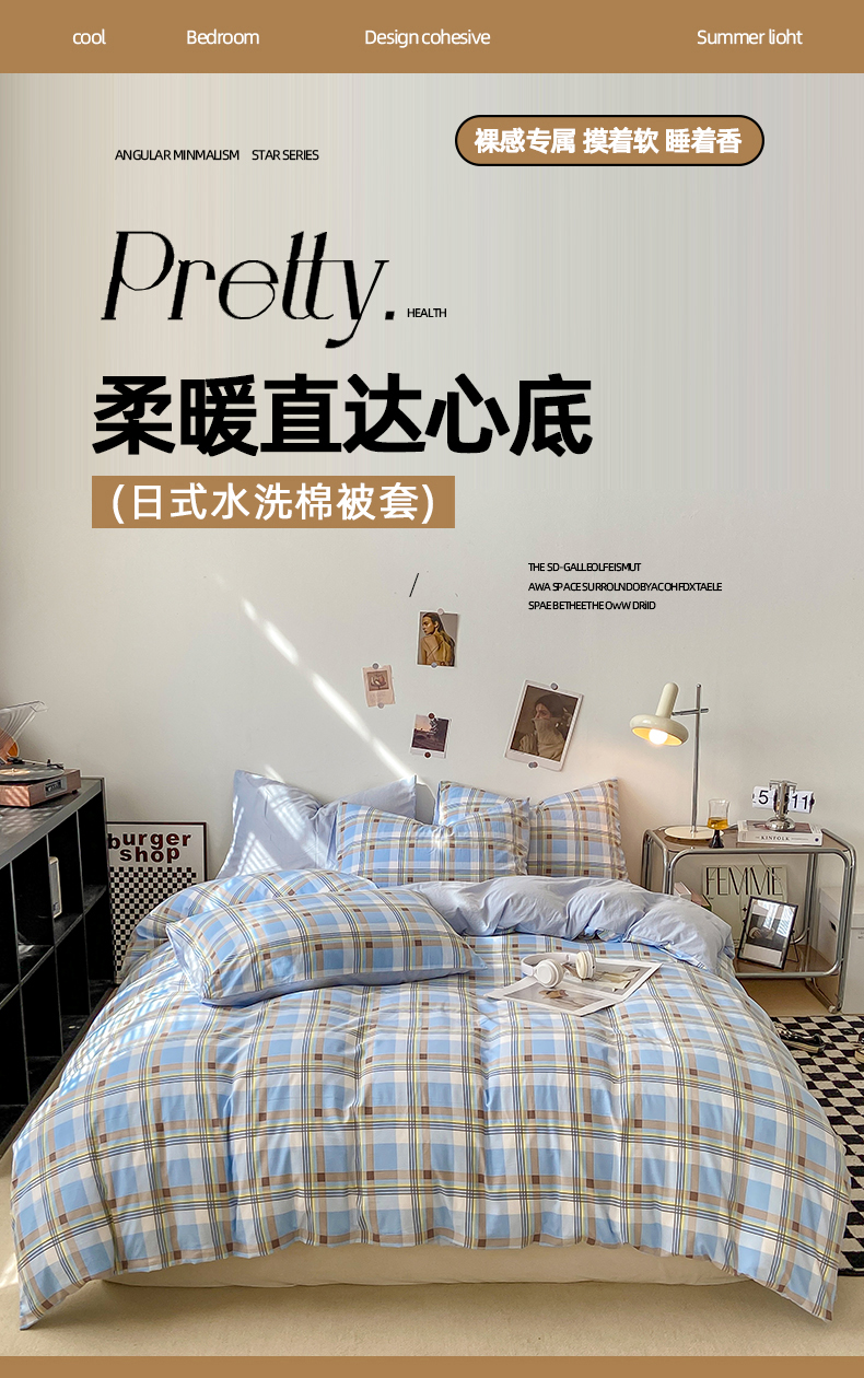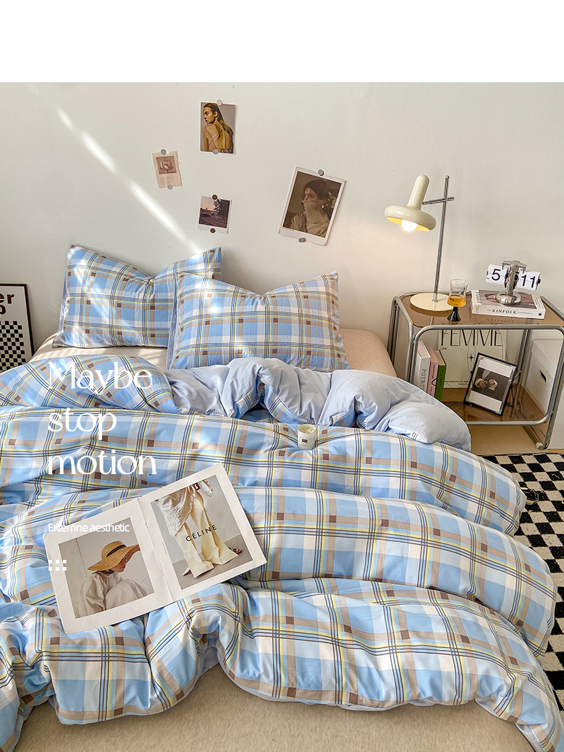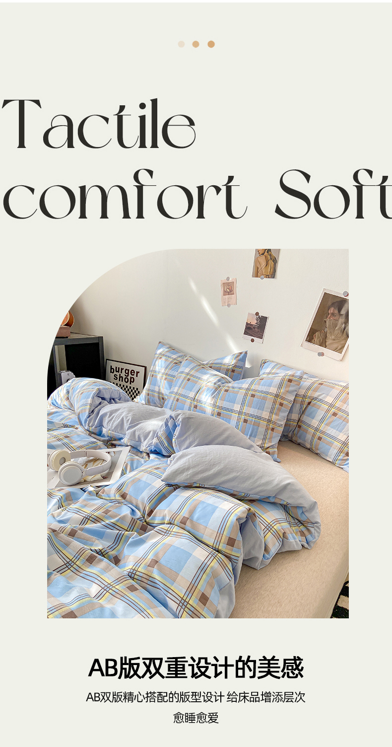 悦织湾家纺 2025新款日式简约格子水洗棉单品被套系列 莫尼蓝