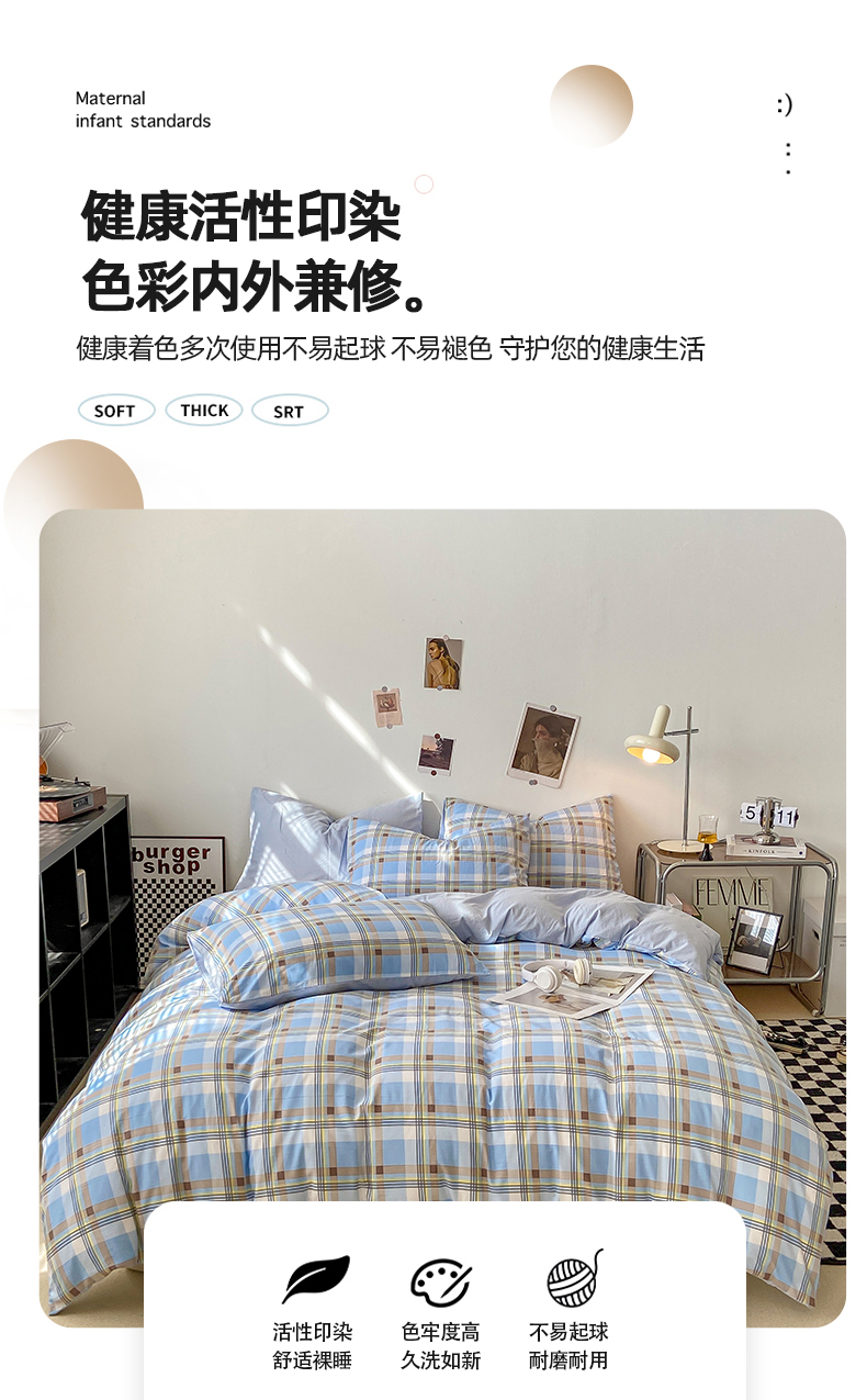 (总)悦织湾家纺 2025新款全棉100%纯棉13376高密度纯色双拼学生三件套活性环保印染宿舍,艾丽卡-冰川蓝,艾丽卡-粉,艾丽卡-灰,艾丽卡-蓝,派对熊-湖蓝,派对熊-蜜桃粉,派对熊-奶油黄,派对熊-天空蓝