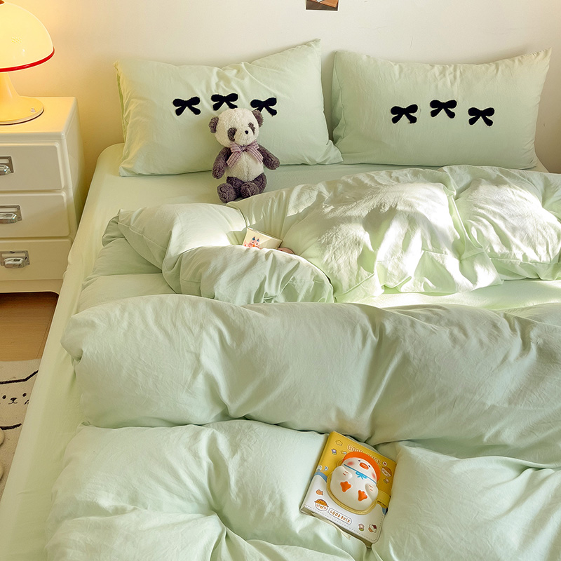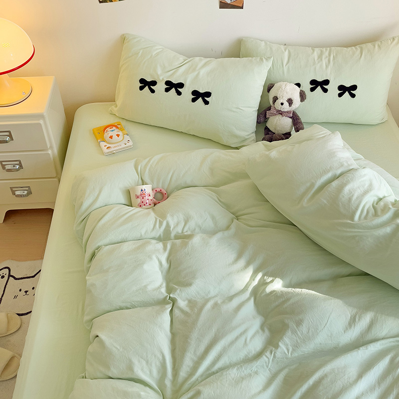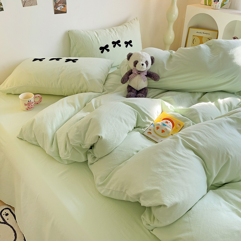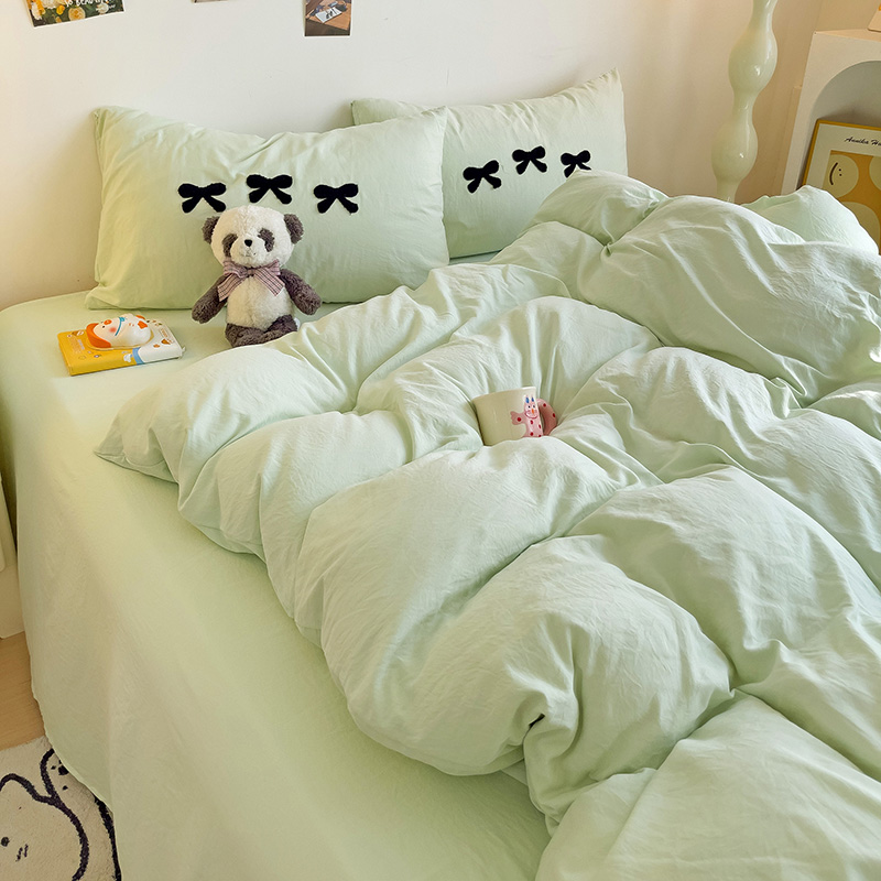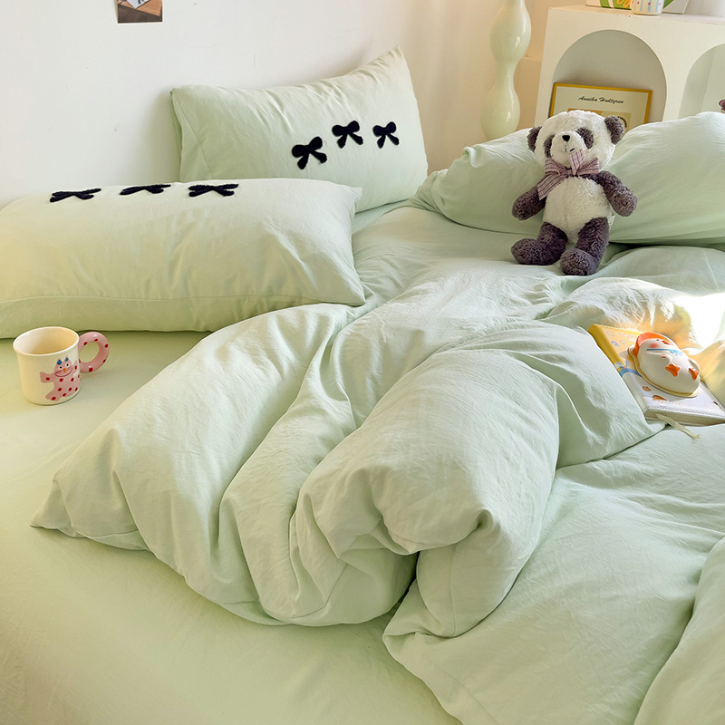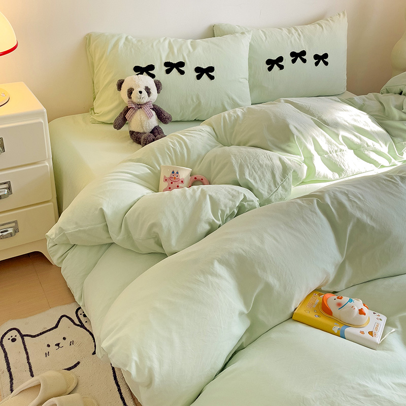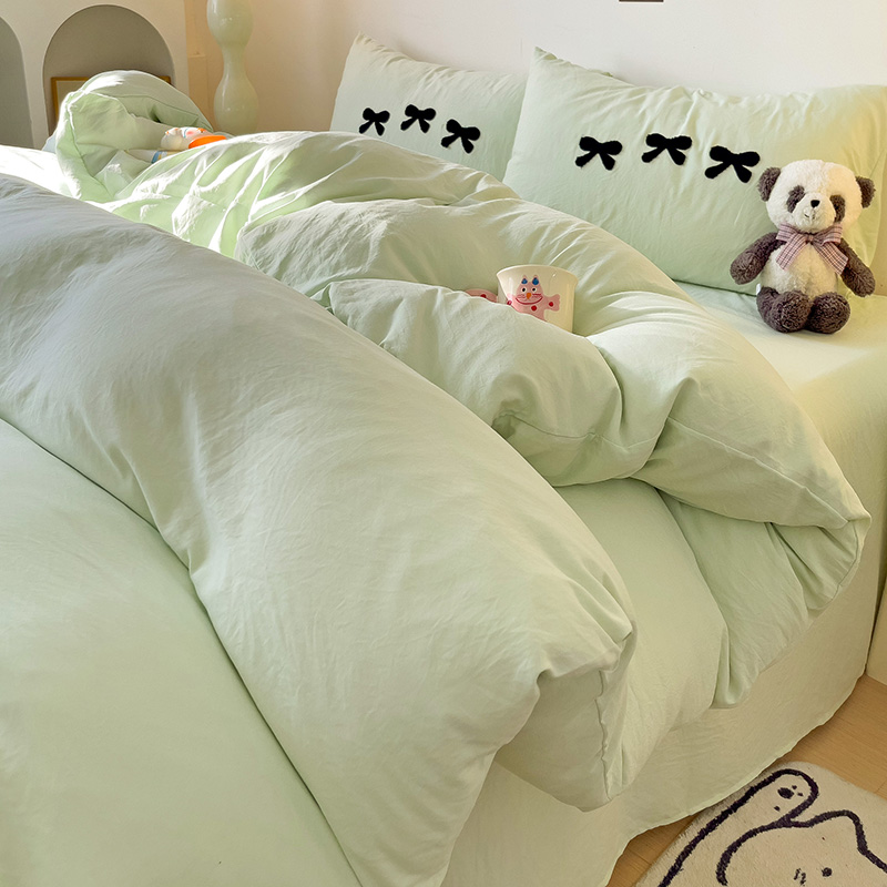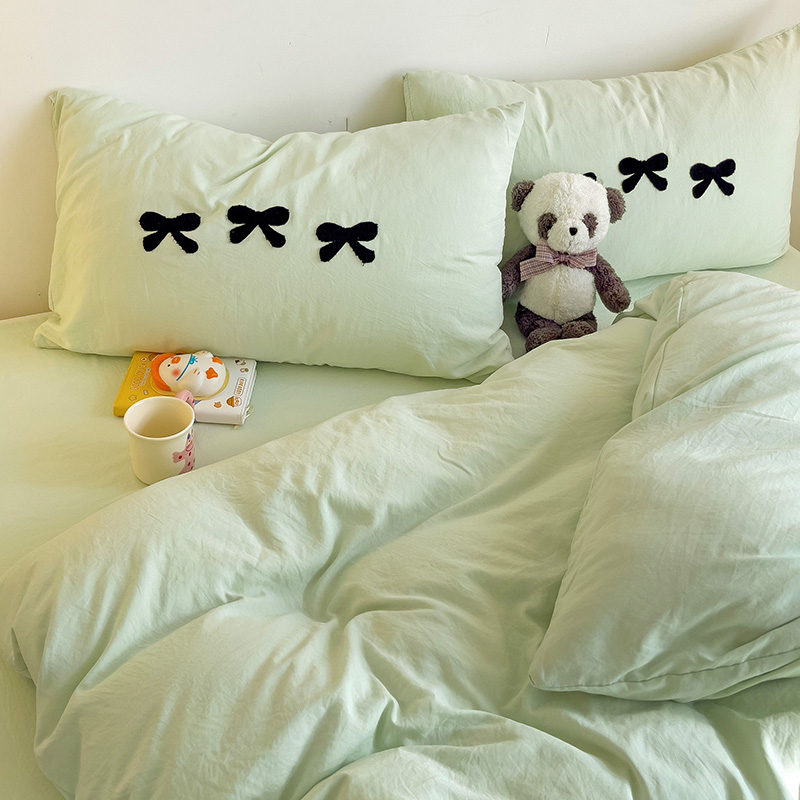 当前位置: 91家纺网 > 商品网购 > 床品套件 > 四件套 > 水洗棉四件套 > 艾特你 2024新款水洗棉蝴蝶结系列四件套 藻绿蝶儿