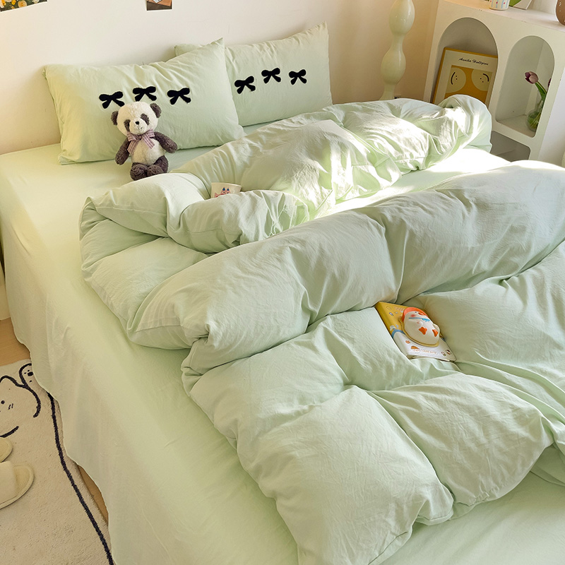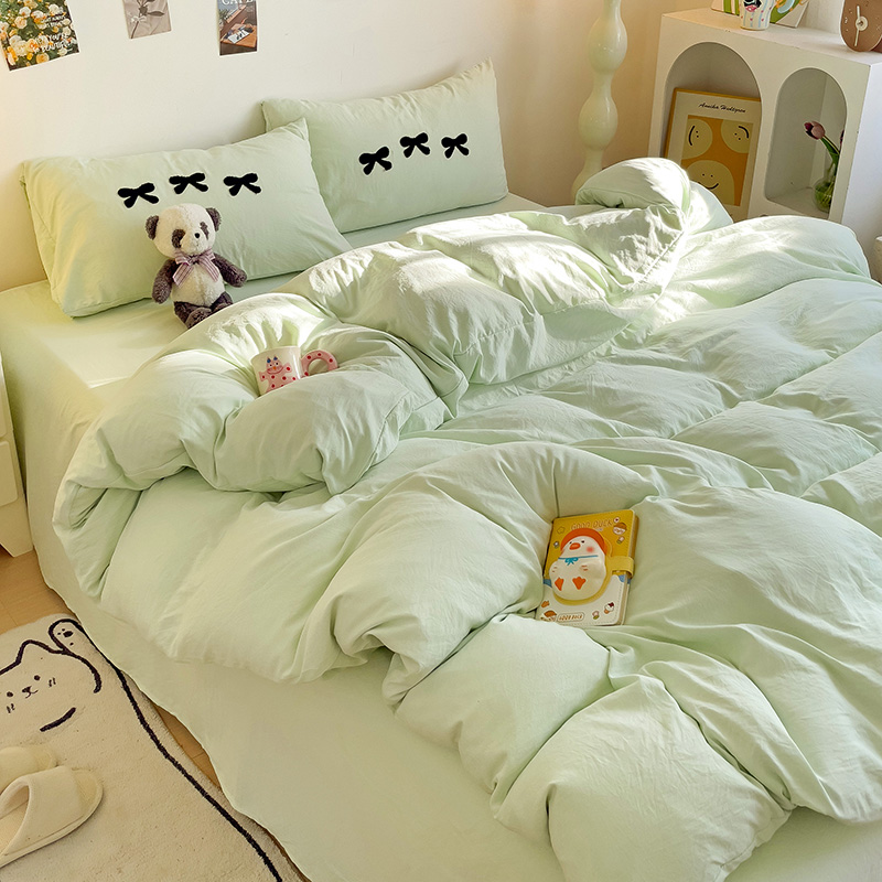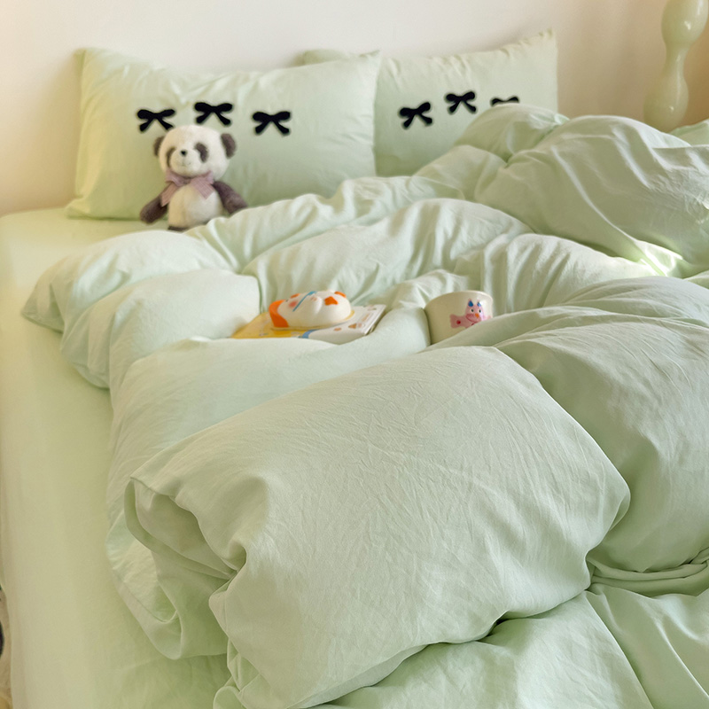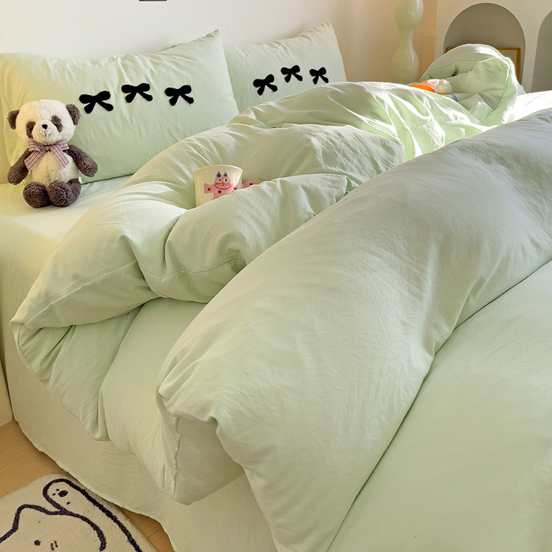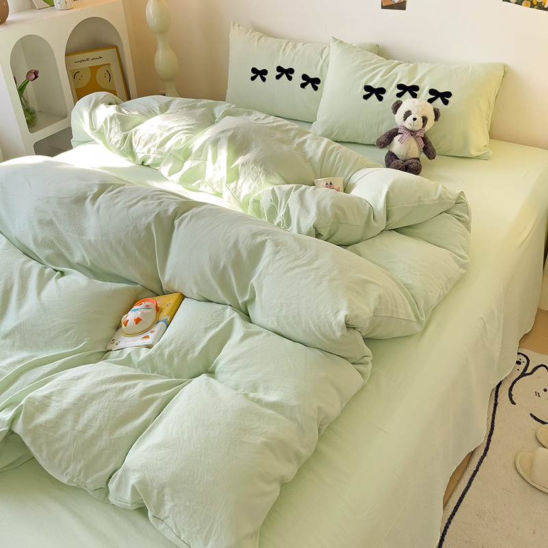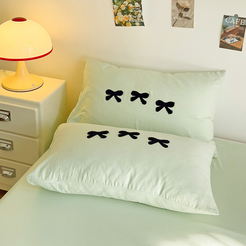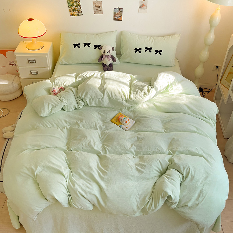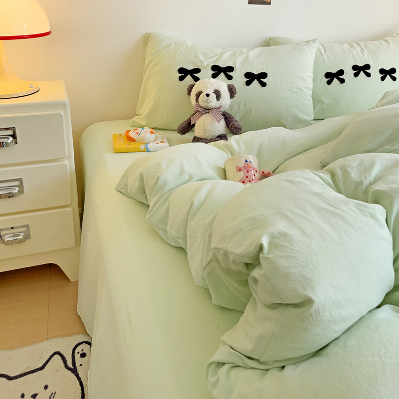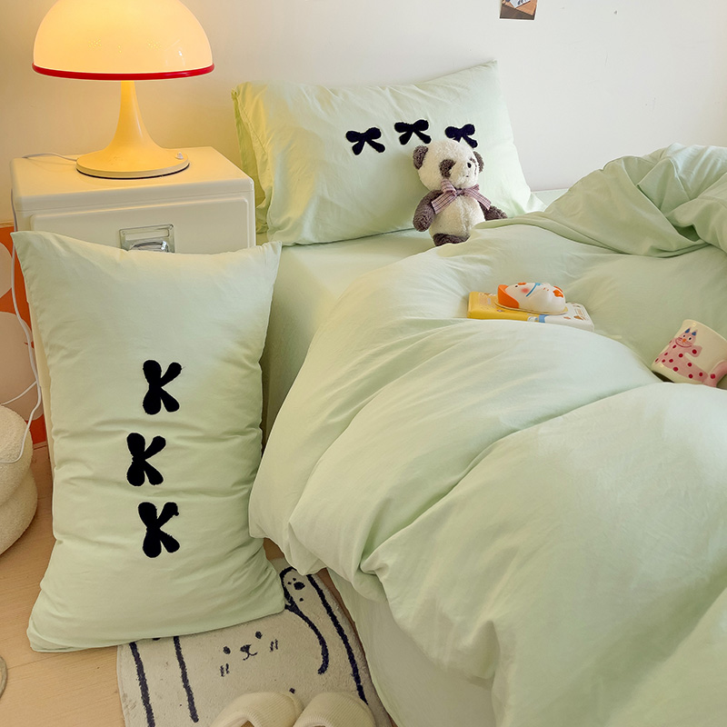 当前位置: 91家纺网 > 商品网购 > 床品套件 > 四件套 > 水洗棉四件套 > 艾特你 2024新款水洗棉蝴蝶结系列四件套 藻绿蝶儿