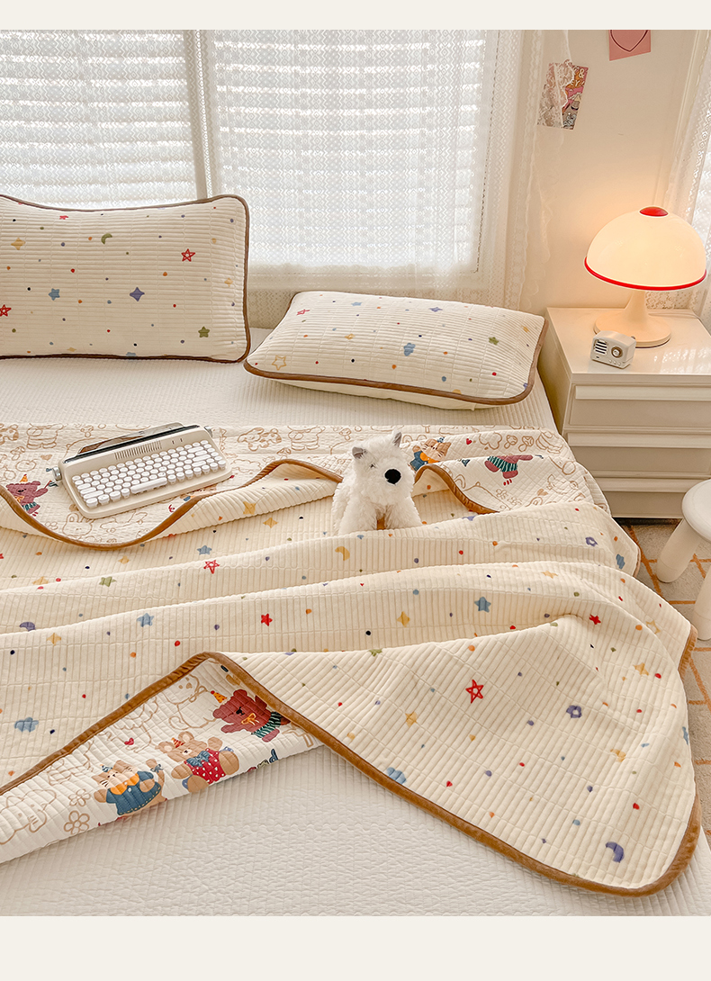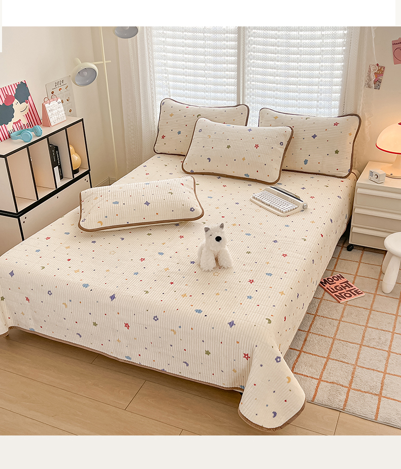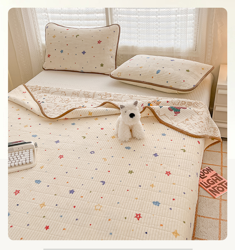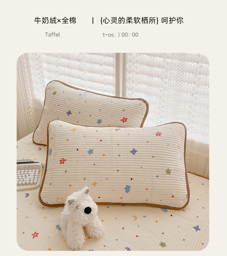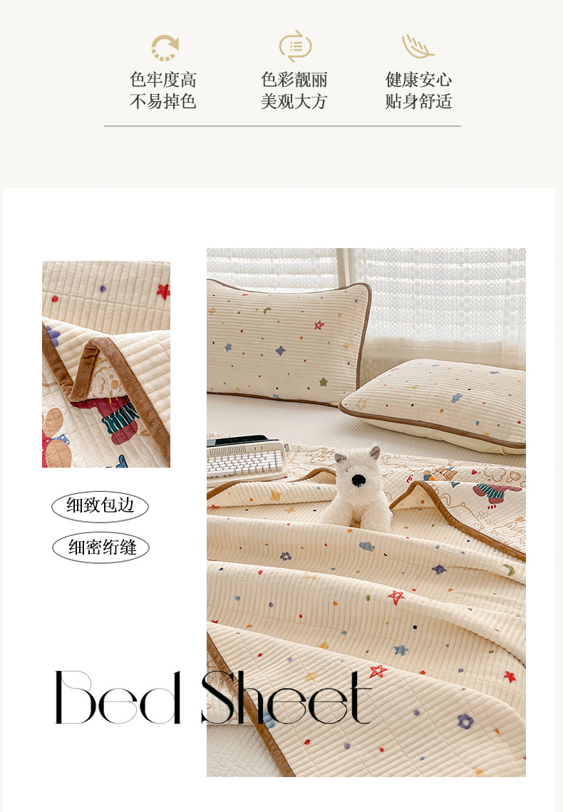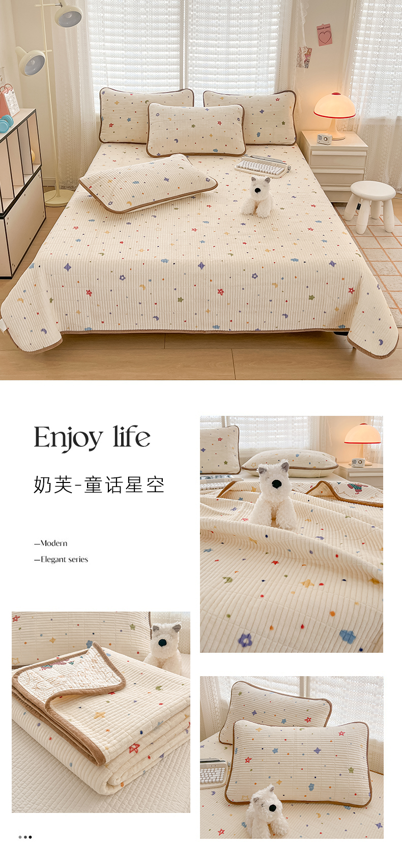 茉夕家纺 2024新款奶芙纯棉印花牛奶绒水洗床盖 奶芙-童话星空