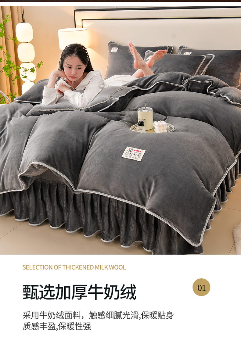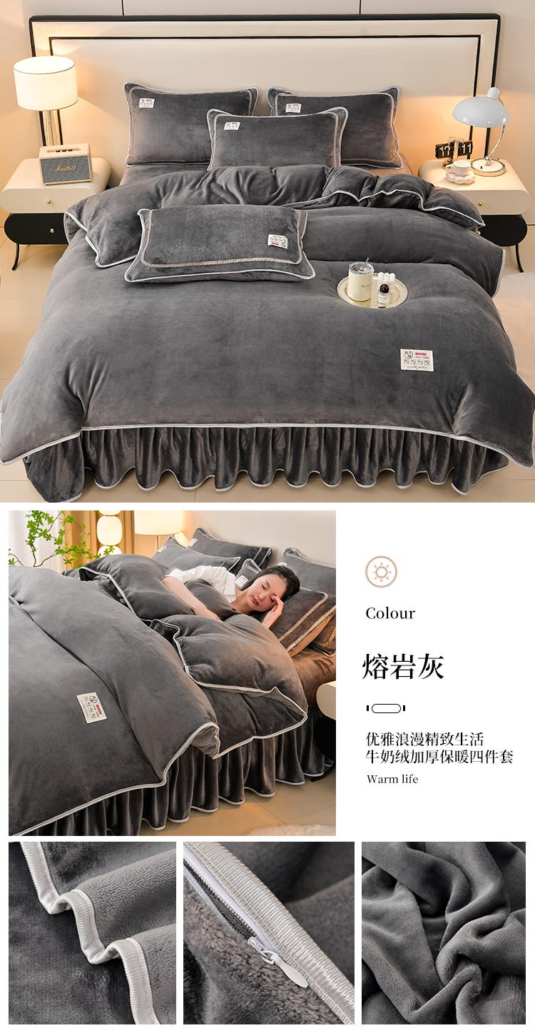 当前位置: 91家纺网 > 商品网购 > 床品套件 > 四件套 > 牛奶绒四件套 > 绒品荟家纺 2025新款直播热款高克重8.5斤牛奶绒法莱绒水晶金貂法莱绒纯色四件套 熔岩灰