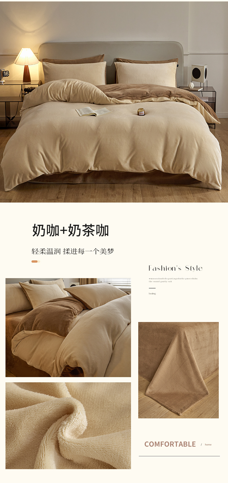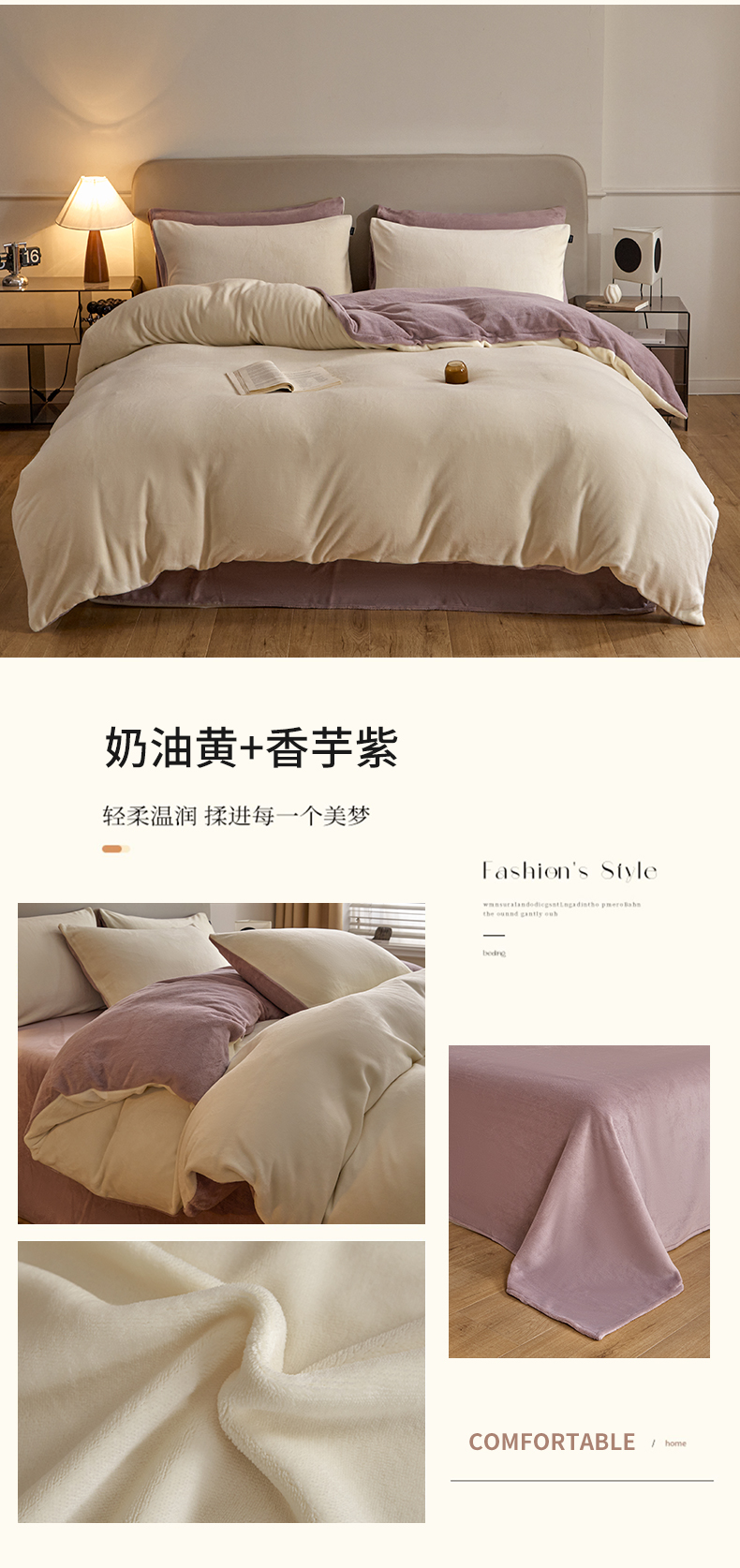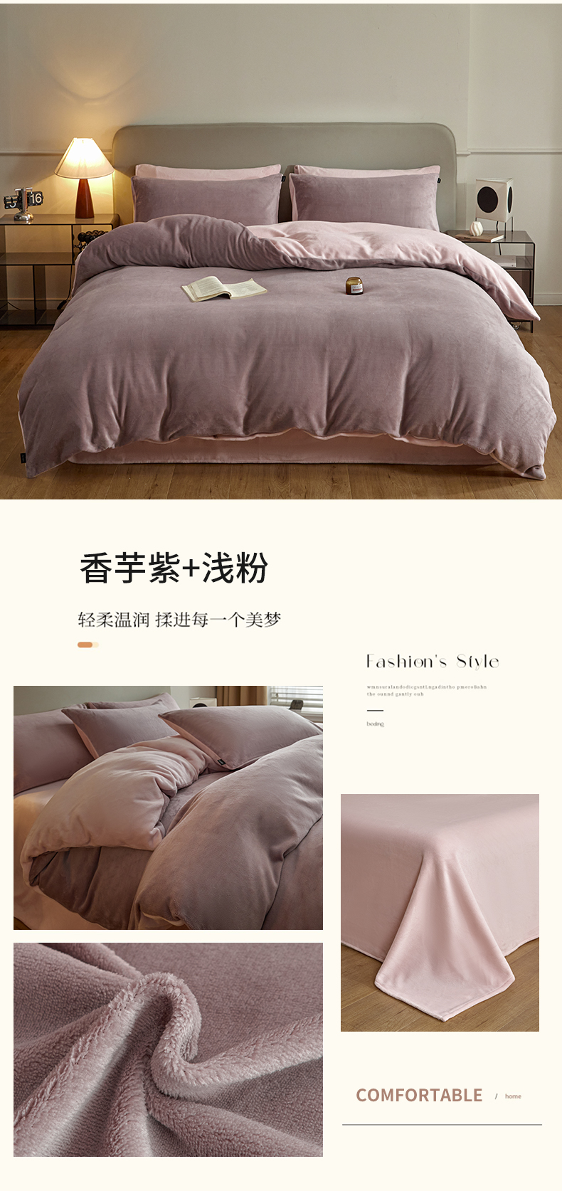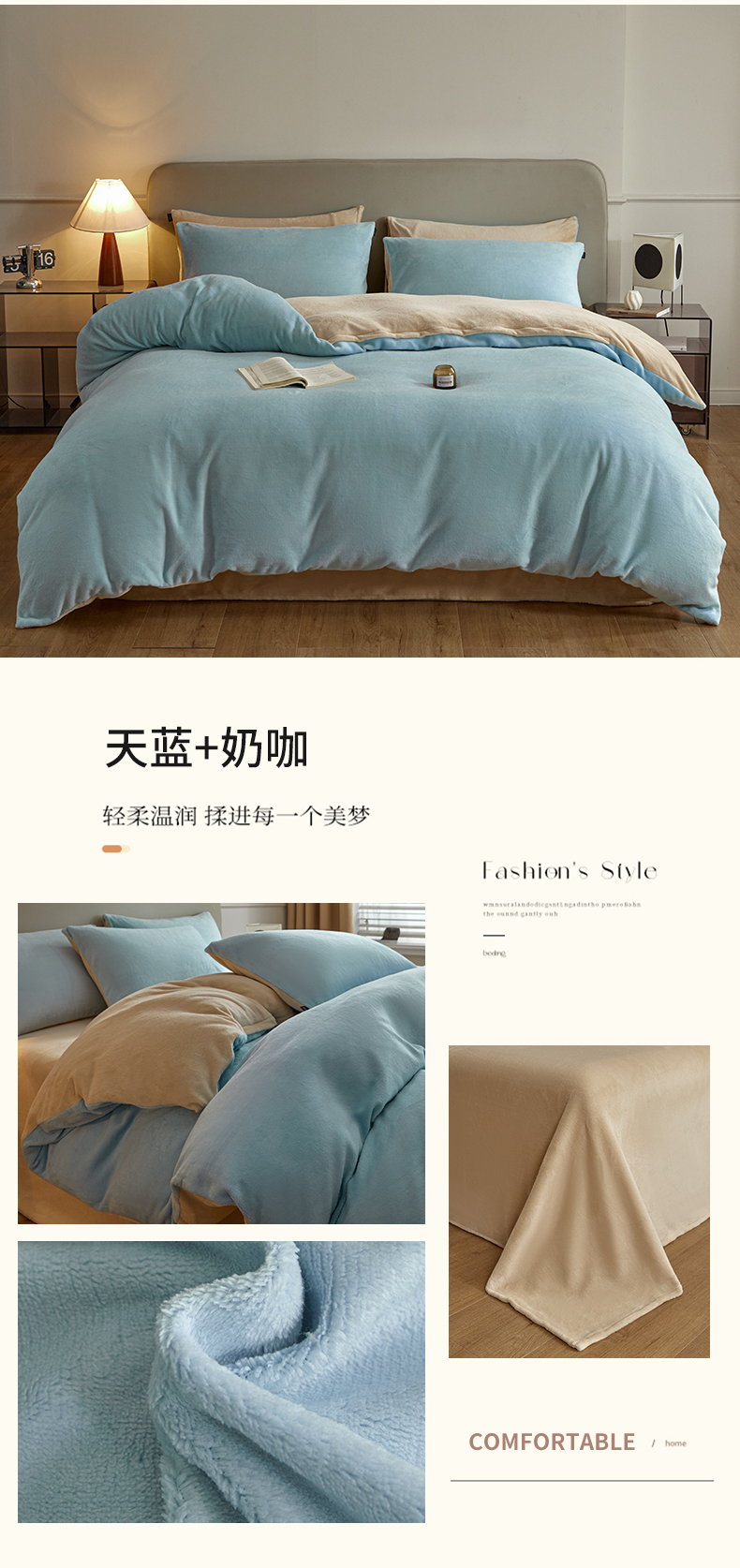 商品名称:(总)启程家纺 2024新款A类加厚230克纯色双拼牛奶绒四件套
