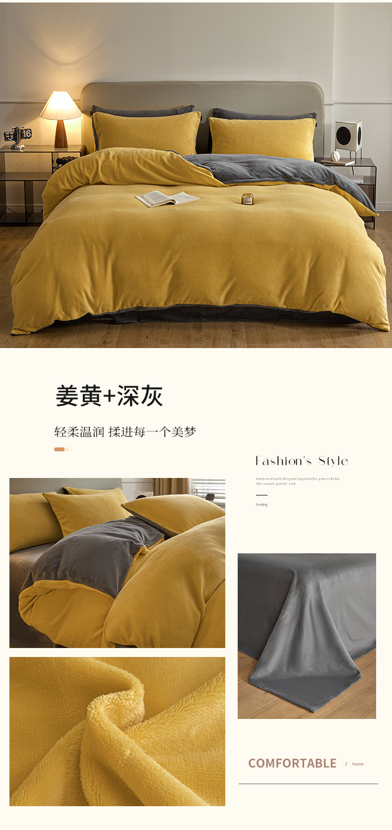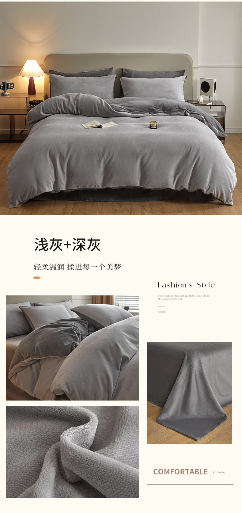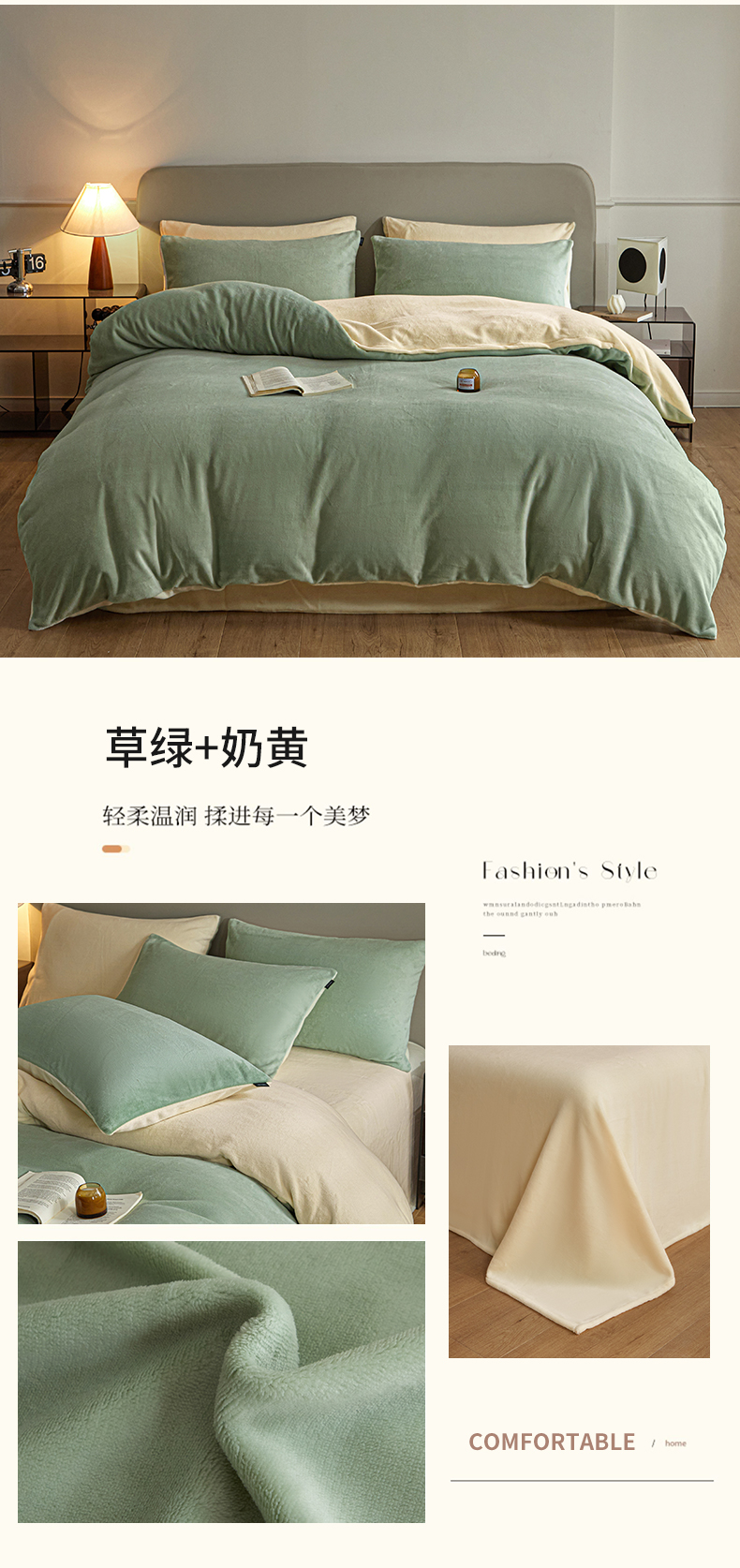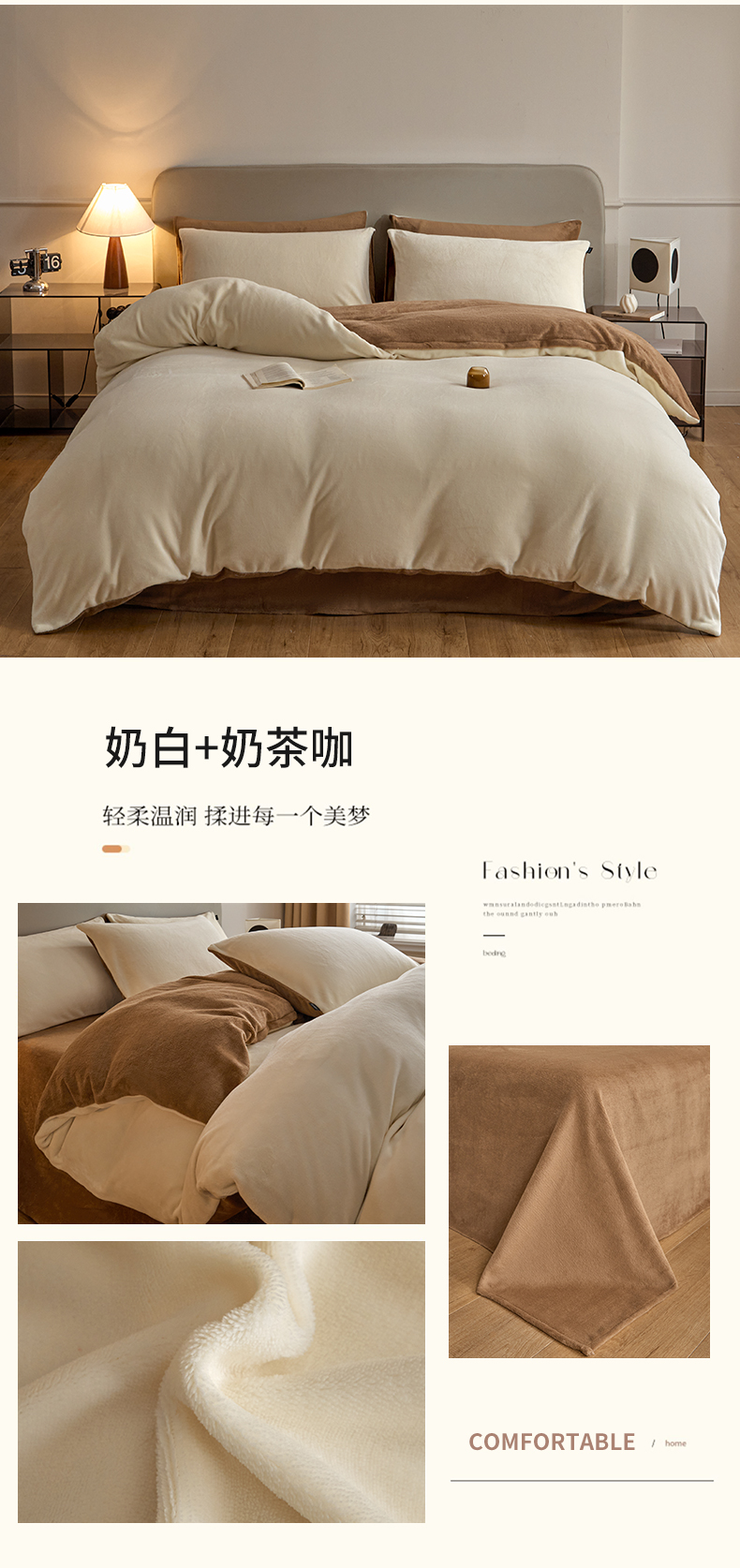 商品名称:(总)启程家纺 2024新款A类加厚230克纯色双拼牛奶绒四件套