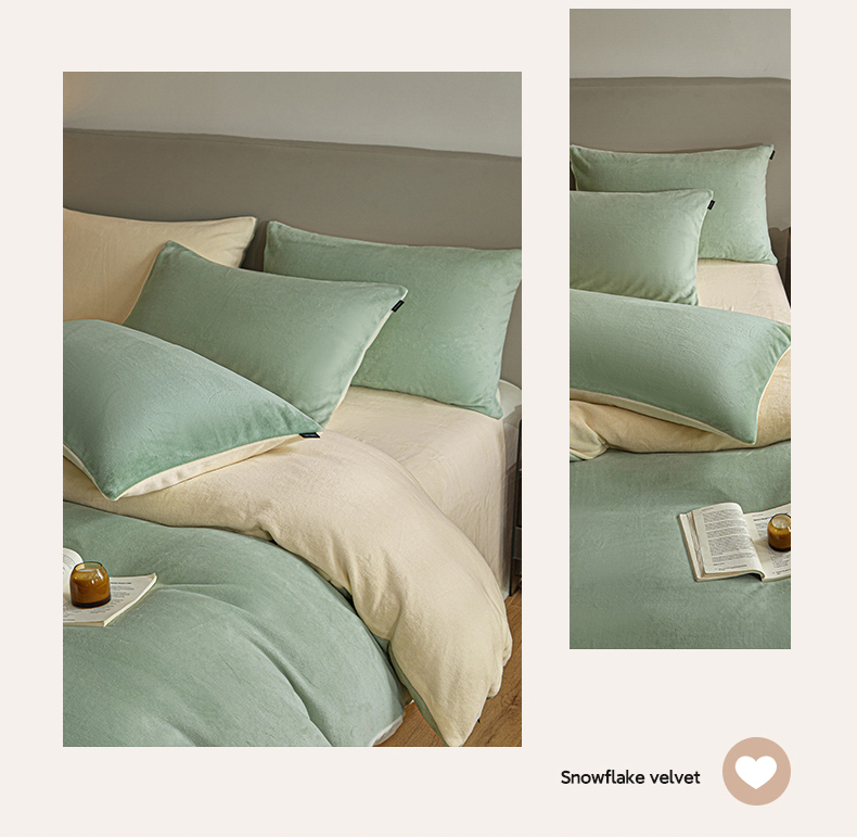 (总)启程家纺 2024新款A类加厚230克纯色双拼牛奶绒四件套