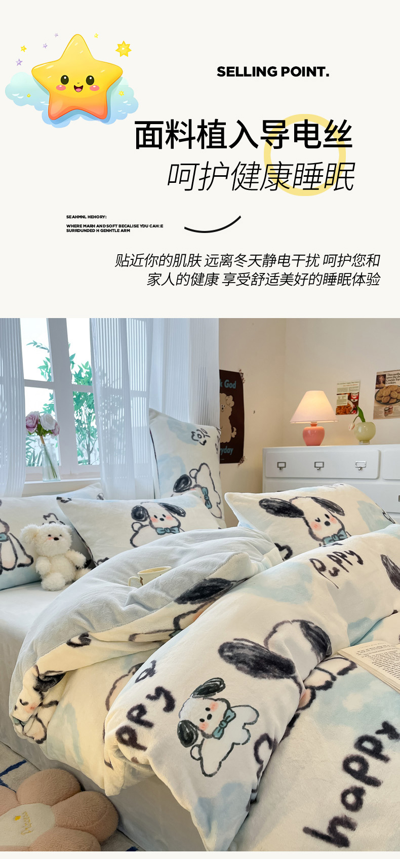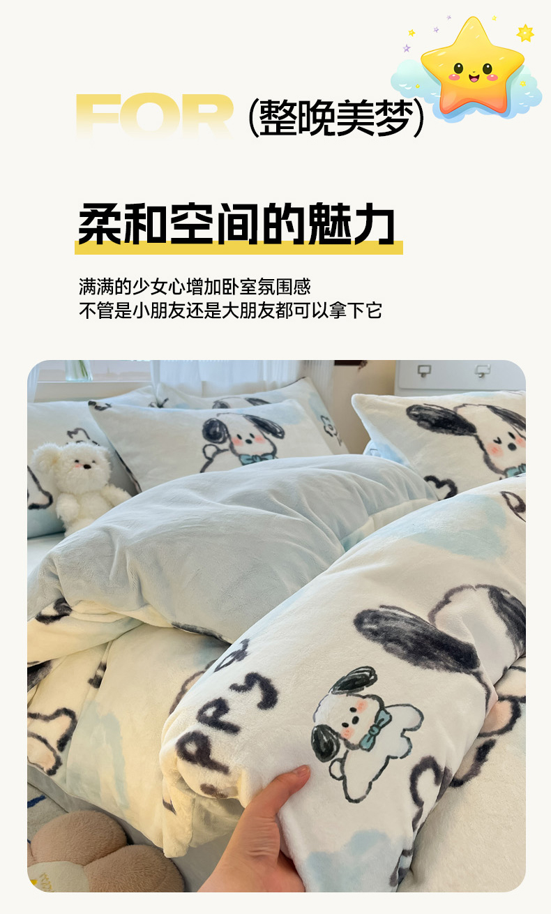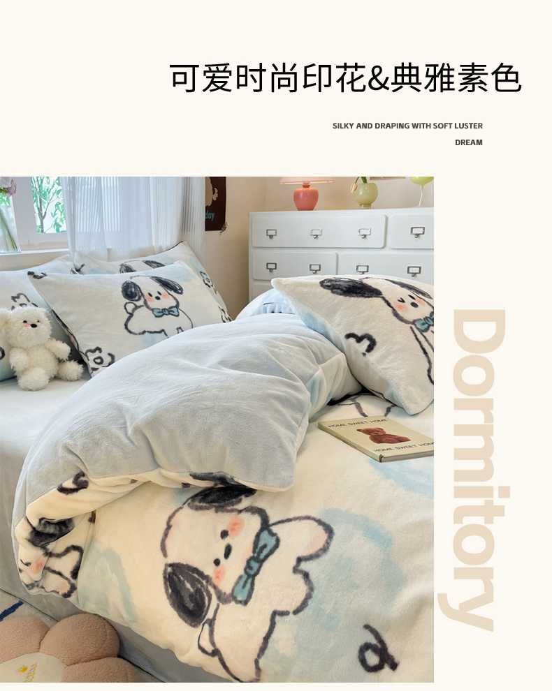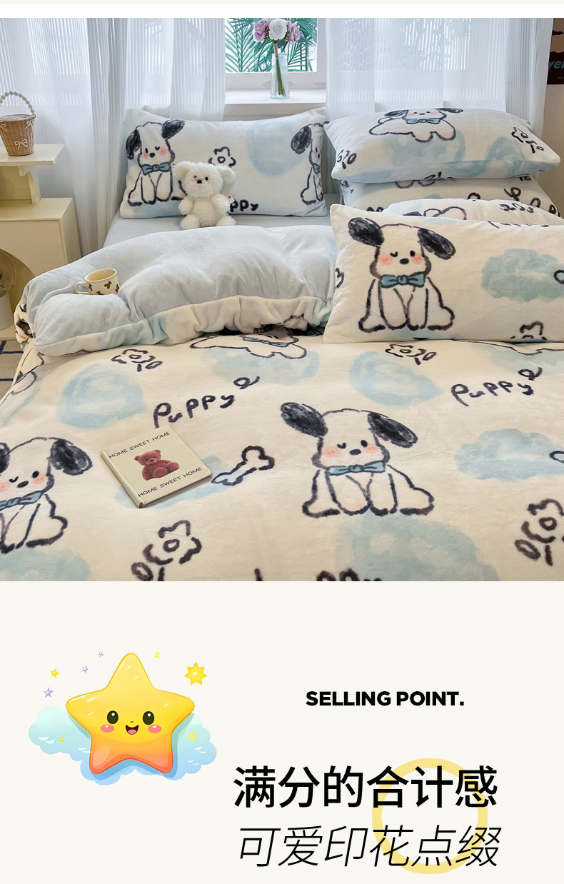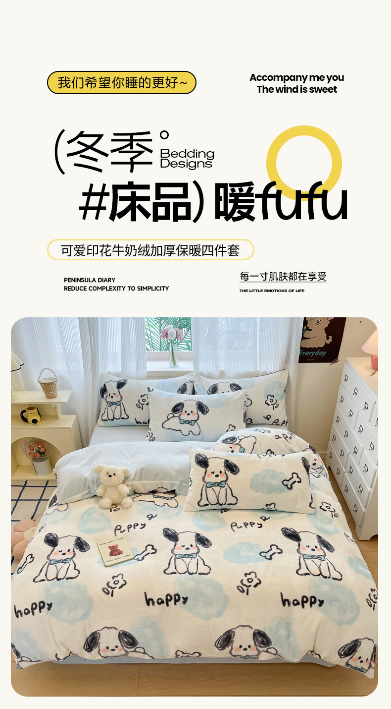 当前位置: 91家纺网 > 商品网购 > 床品套件 > 四件套 > 牛奶绒四件套 > 慕澄家纺 2024新款小清新可爱印花牛奶绒加厚保暖四件套 趣味狗
