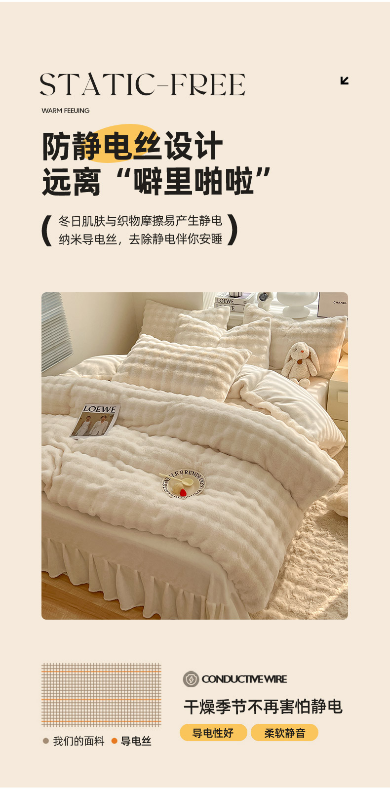 商品名称:丝印良品 2024直播秋冬高克重500克床裙款泡泡四件套纯色印花泡泡-奶白色