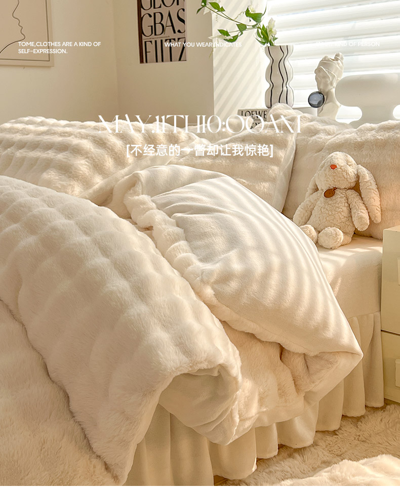 丝印良品 2024直播秋冬高克重500克床裙款泡泡四件套纯色印花泡泡-奶白色