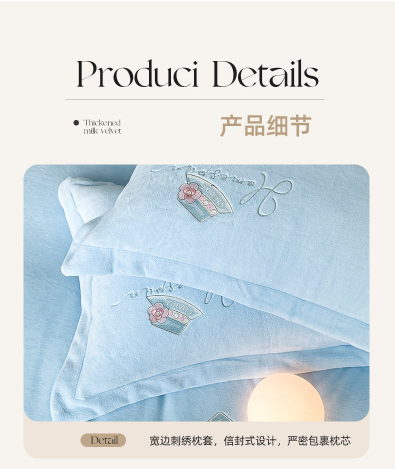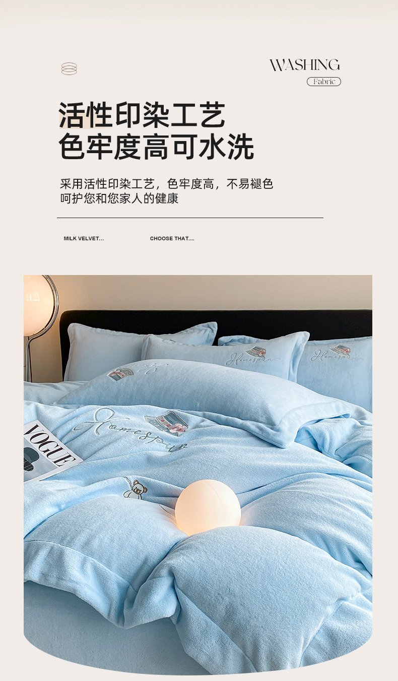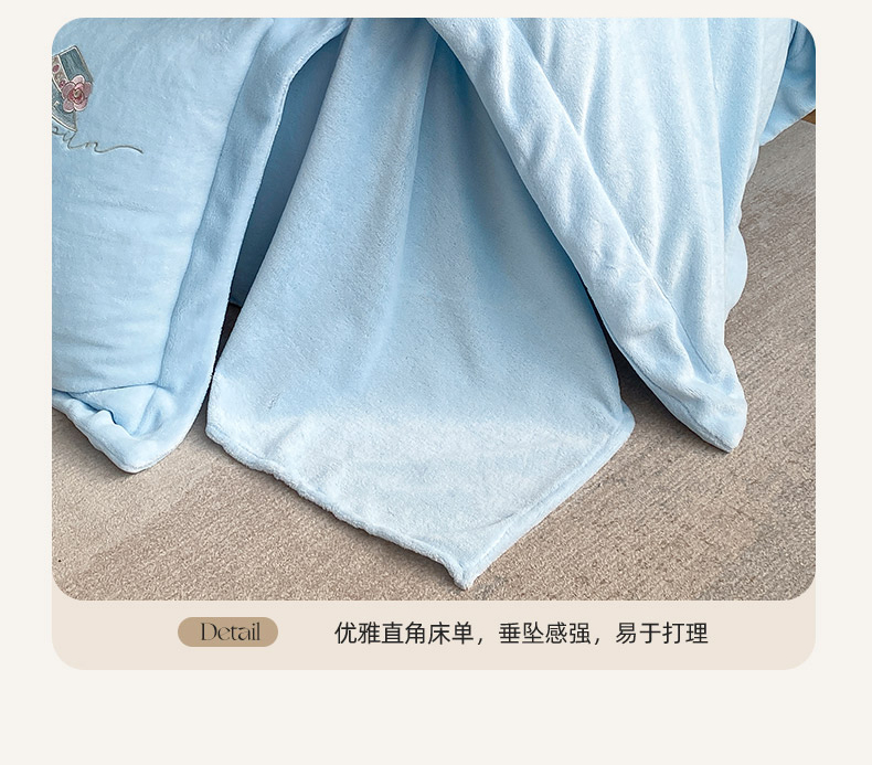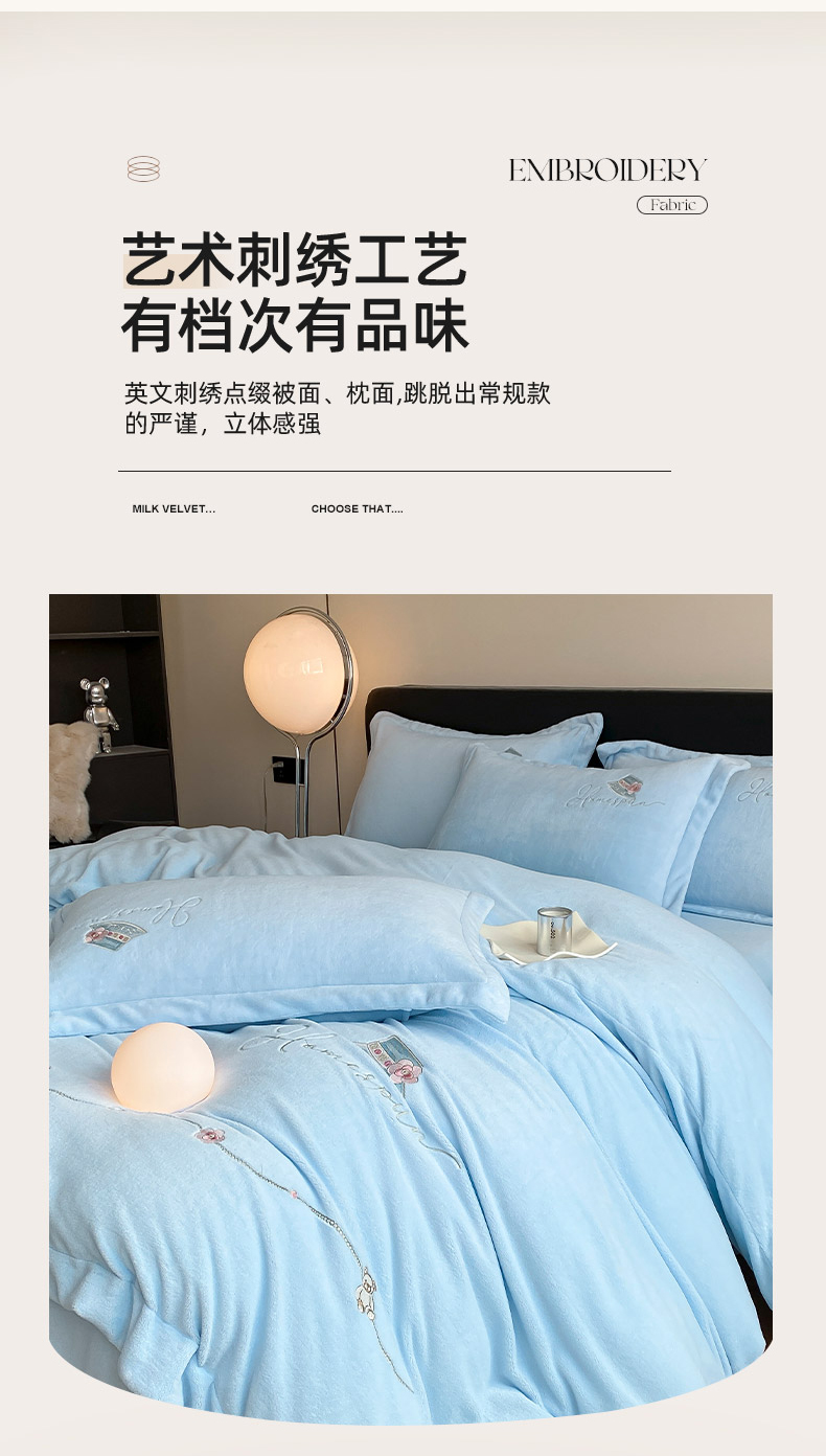 商品名称:丝印良品 2024新款秋冬加厚公主日记牛奶绒四件套宁静蓝