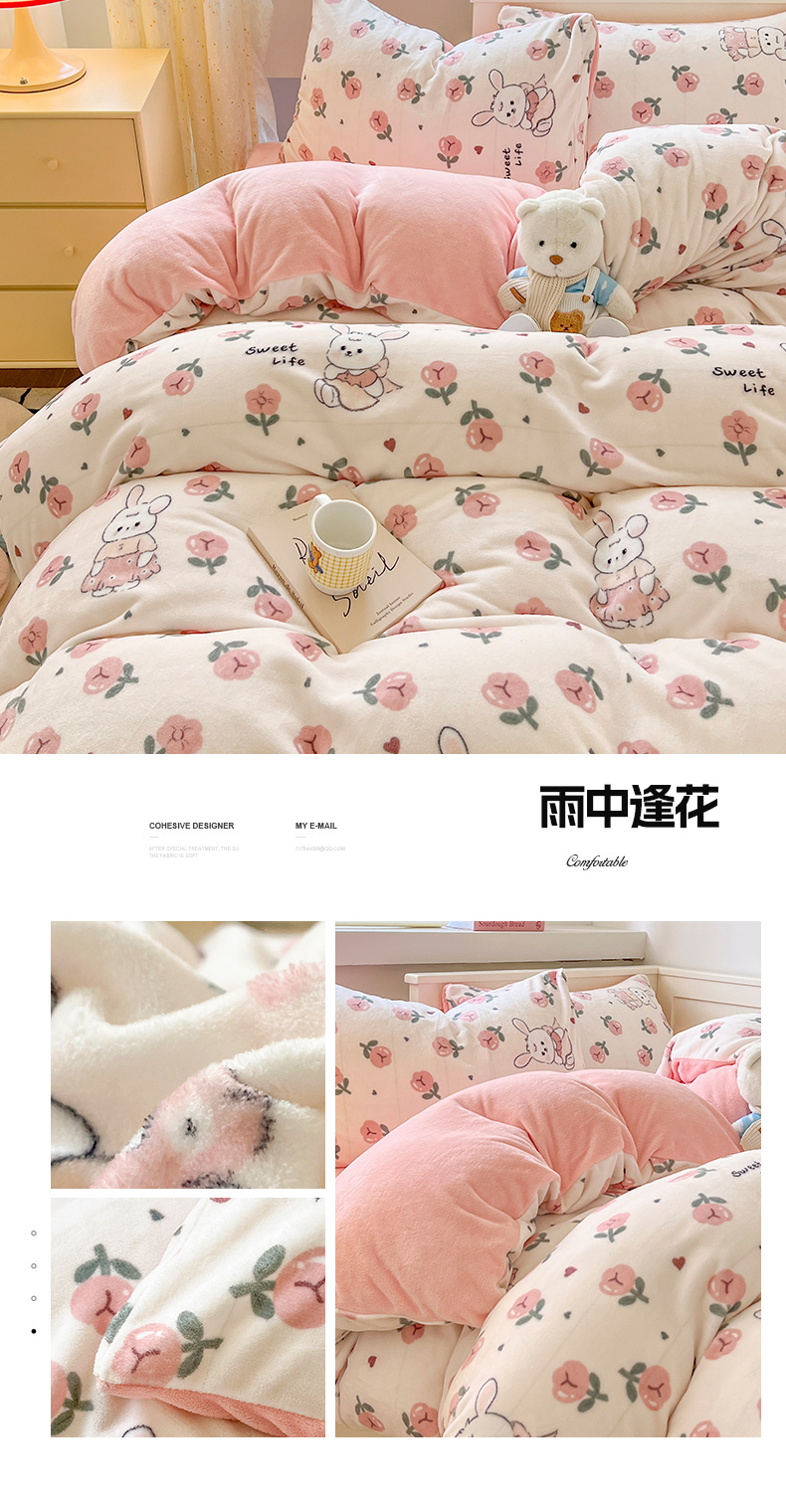 当前位置: 91家纺网 > 商品网购 > 床品套件 > 四件套 > 牛奶绒四件套 > 贝扬思家纺 新款高克重牛奶绒四件套-风格二(有买家秀) 雨中逢花