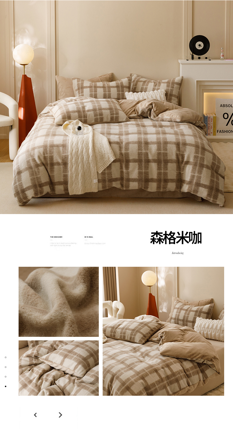 金奇达家纺 2025秋冬保暖加厚绒类四件套多莉羊绒-希尔格 森格米咖