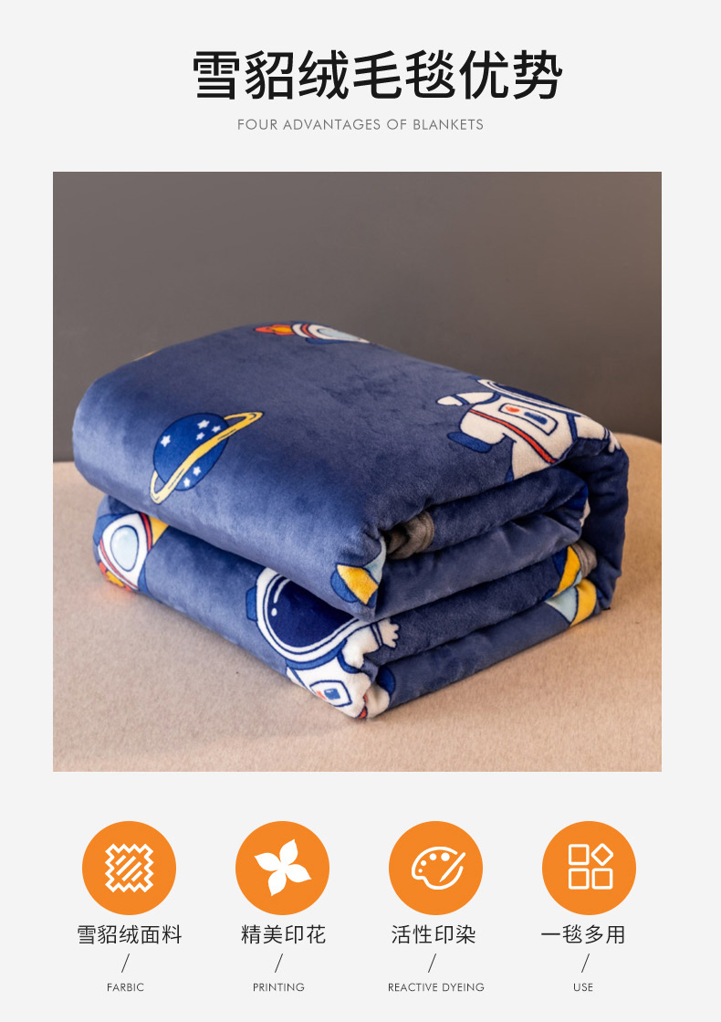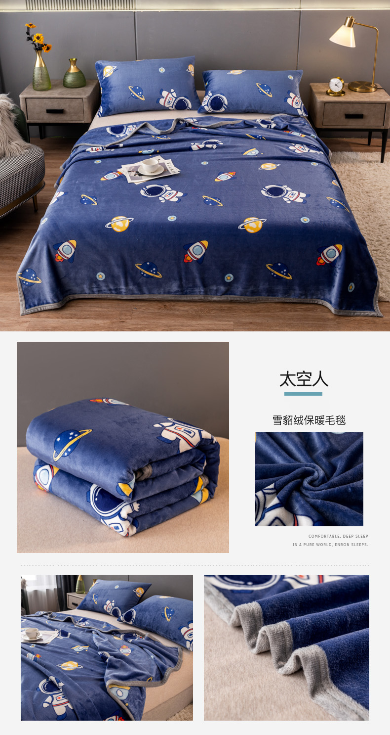 当前位置: 91家纺网 > 商品网购 > 毛毯休闲毯绒毯 > 毛毯 > 慕尚家纺 2025新款雪貂绒高克重300g毛毯家用毛毯 太空人