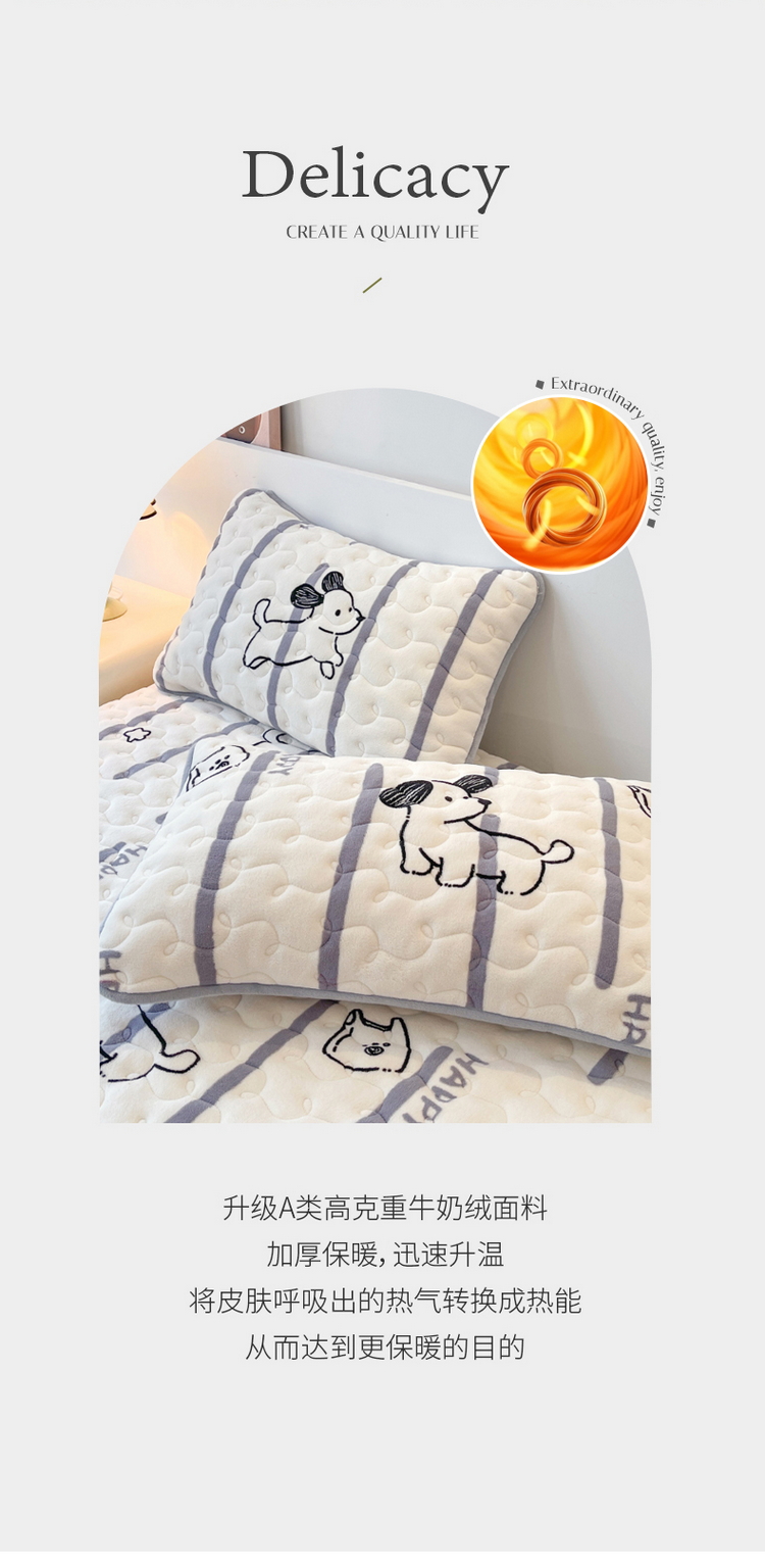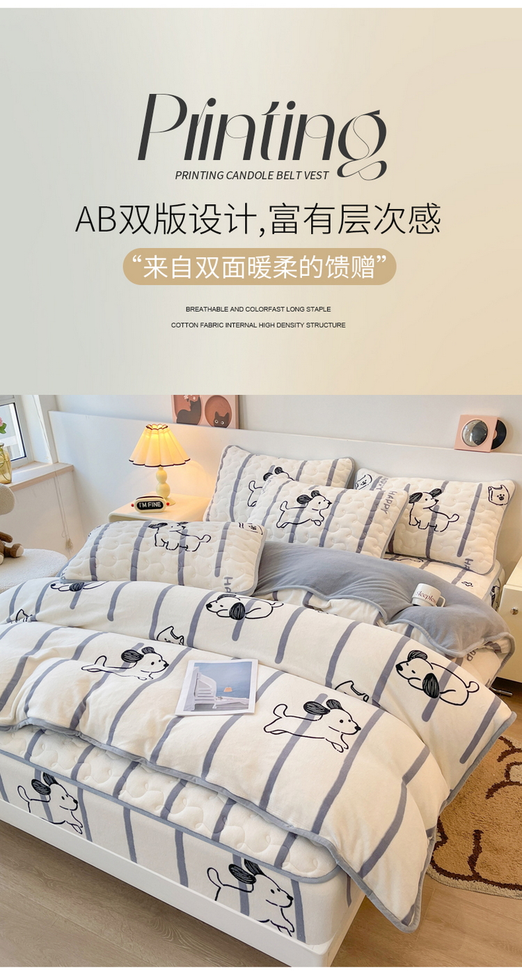2024秋冬A类牛奶绒加厚夹棉床笠+牛奶绒被套四件套午后时光