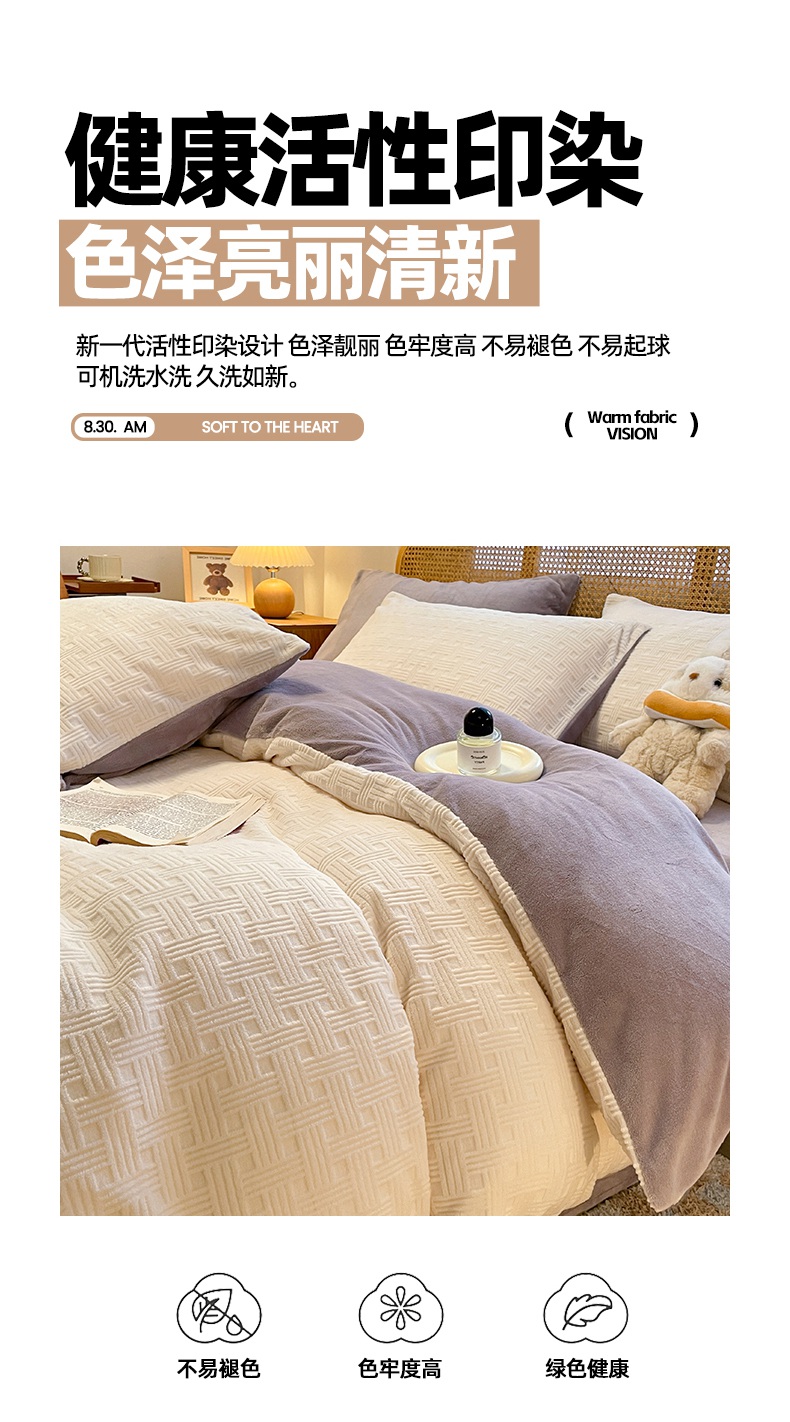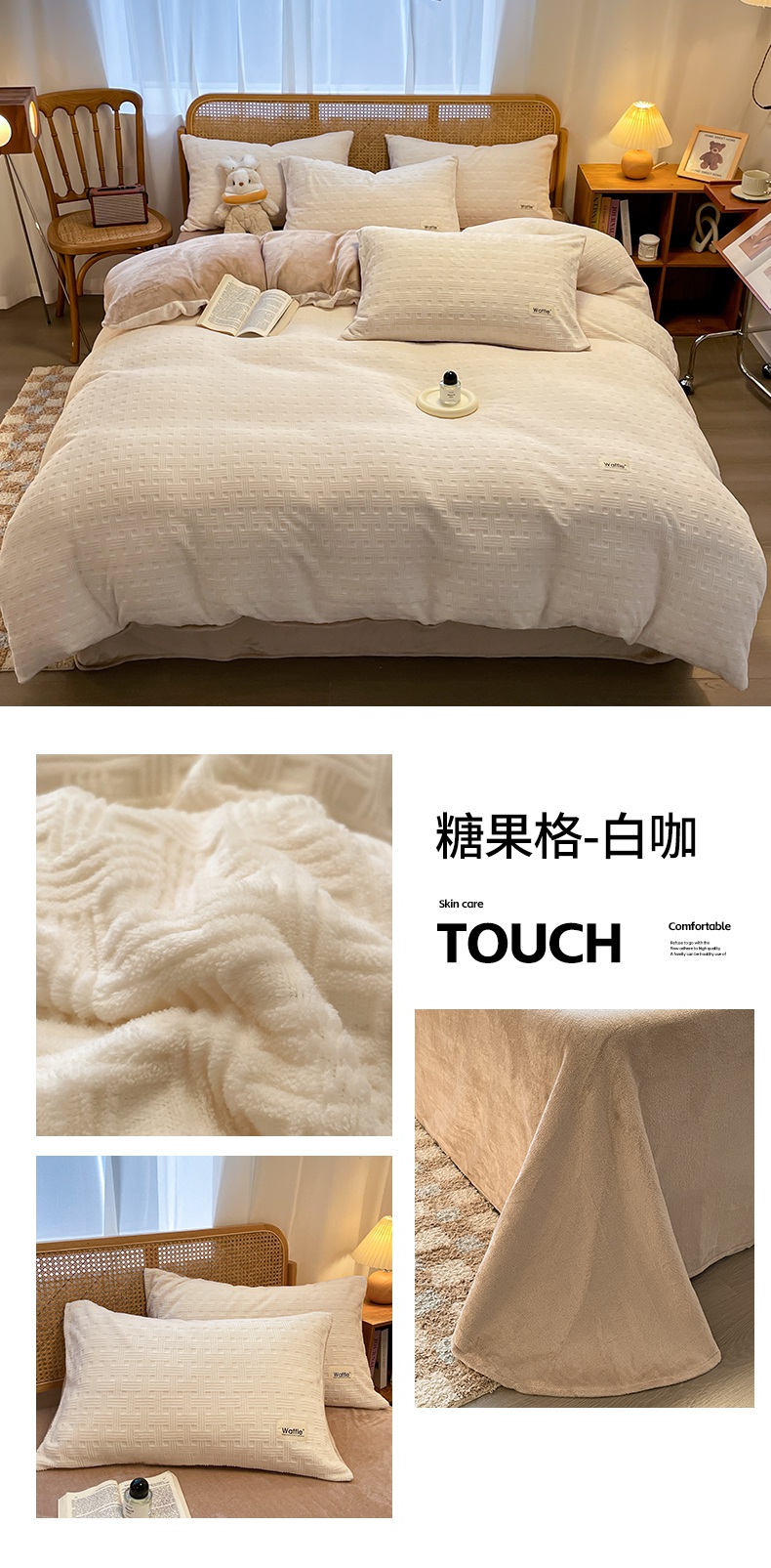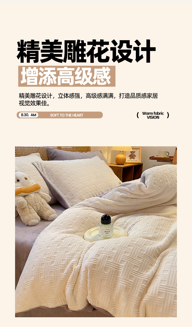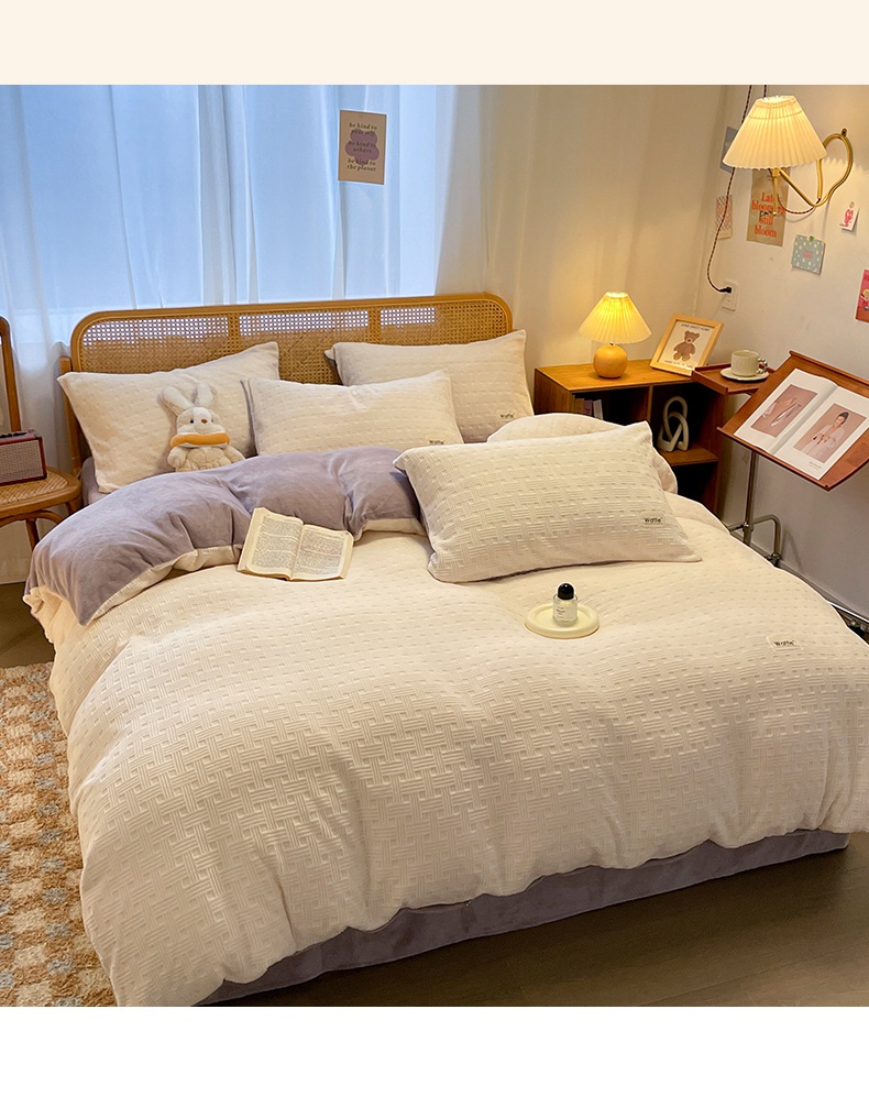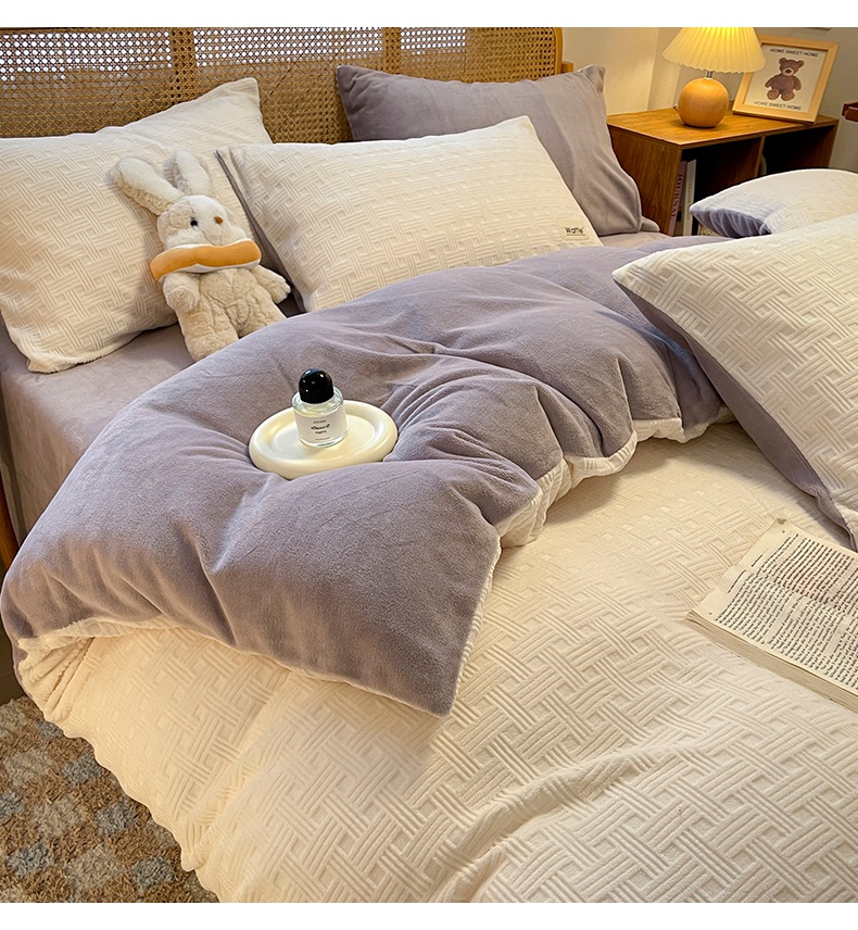 当前位置: 91家纺网 > 商品网购 > 床品套件 > 四件套 > 牛奶绒四件套 > 莱茵家居 2024新款A类高克重雕花牛奶绒四件套-糖果格 糖果格-白紫