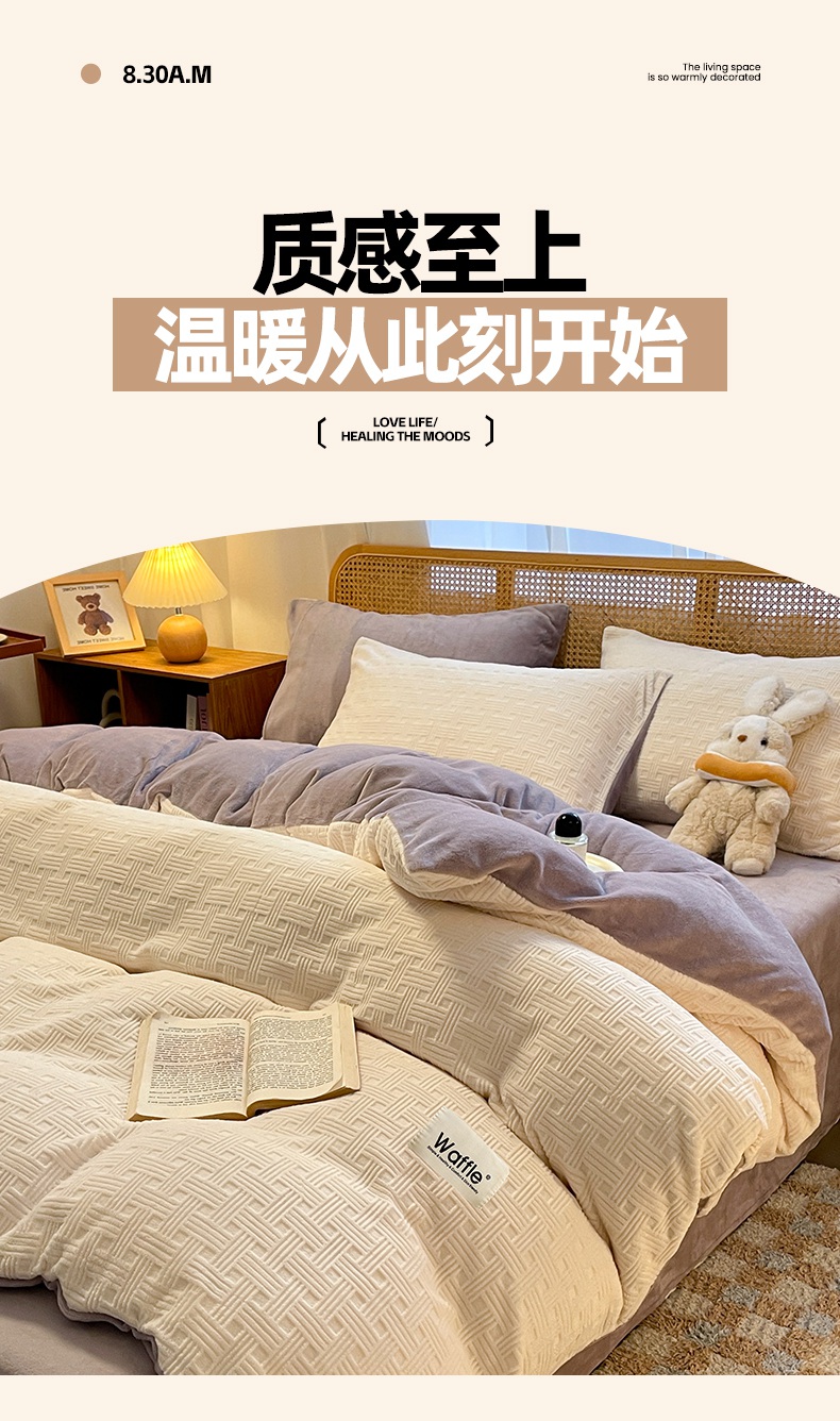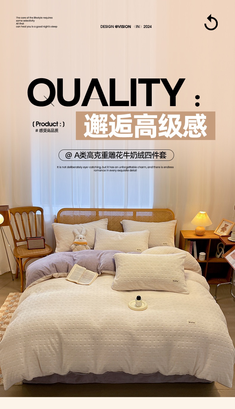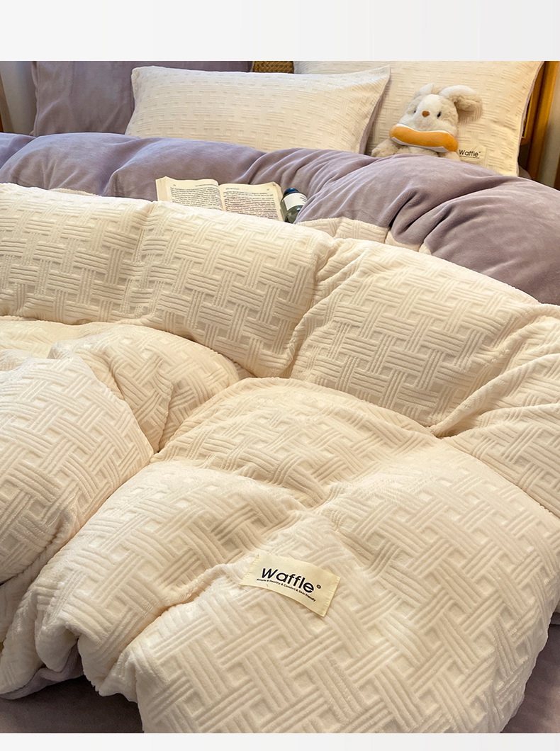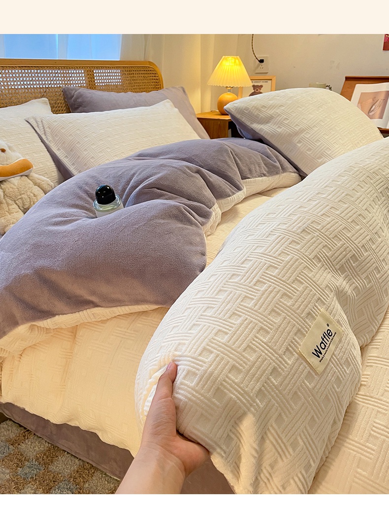 当前位置: 91家纺网 > 商品网购 > 床品套件 > 四件套 > 牛奶绒四件套 > 莱茵家居 2024新款A类高克重雕花牛奶绒四件套-糖果格 糖果格-白紫