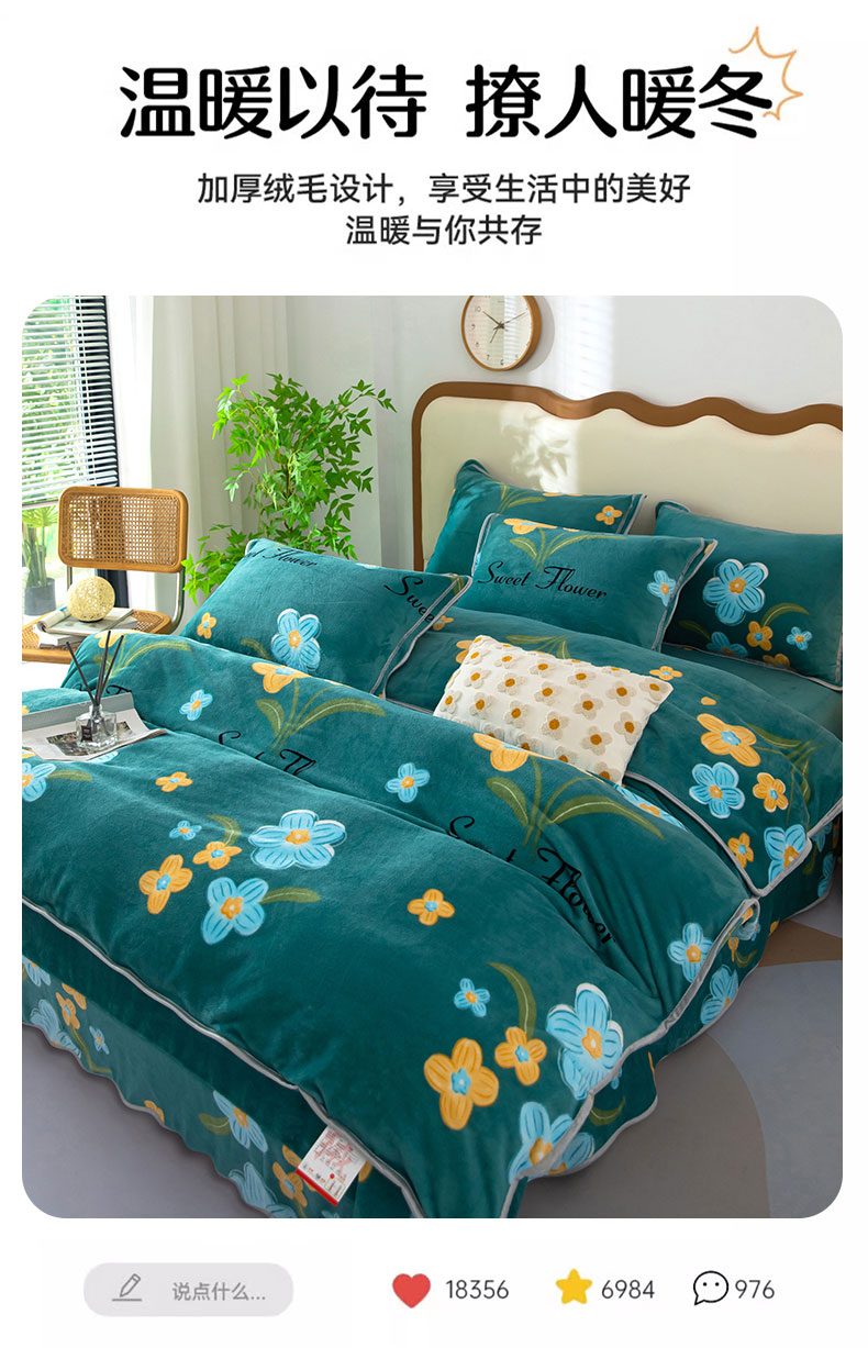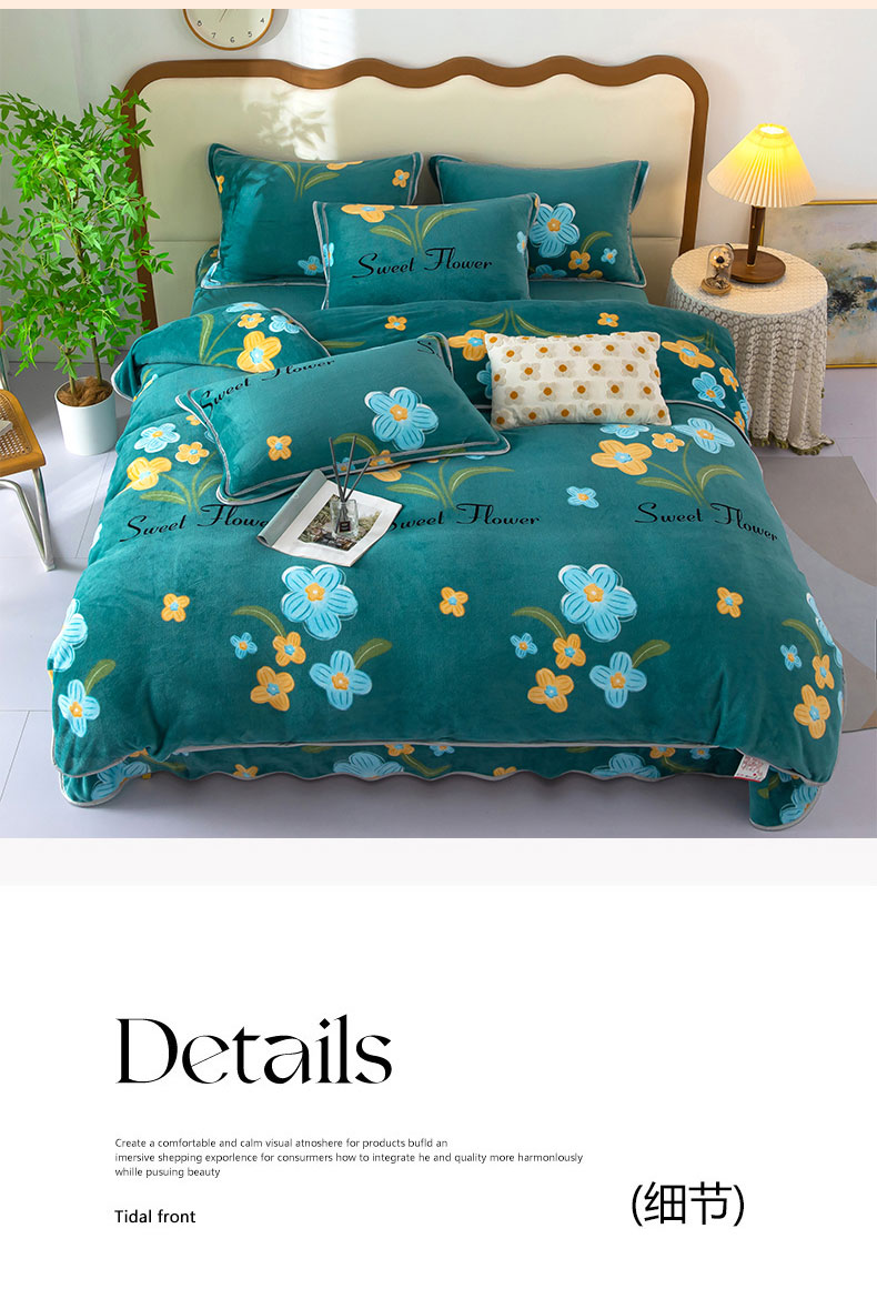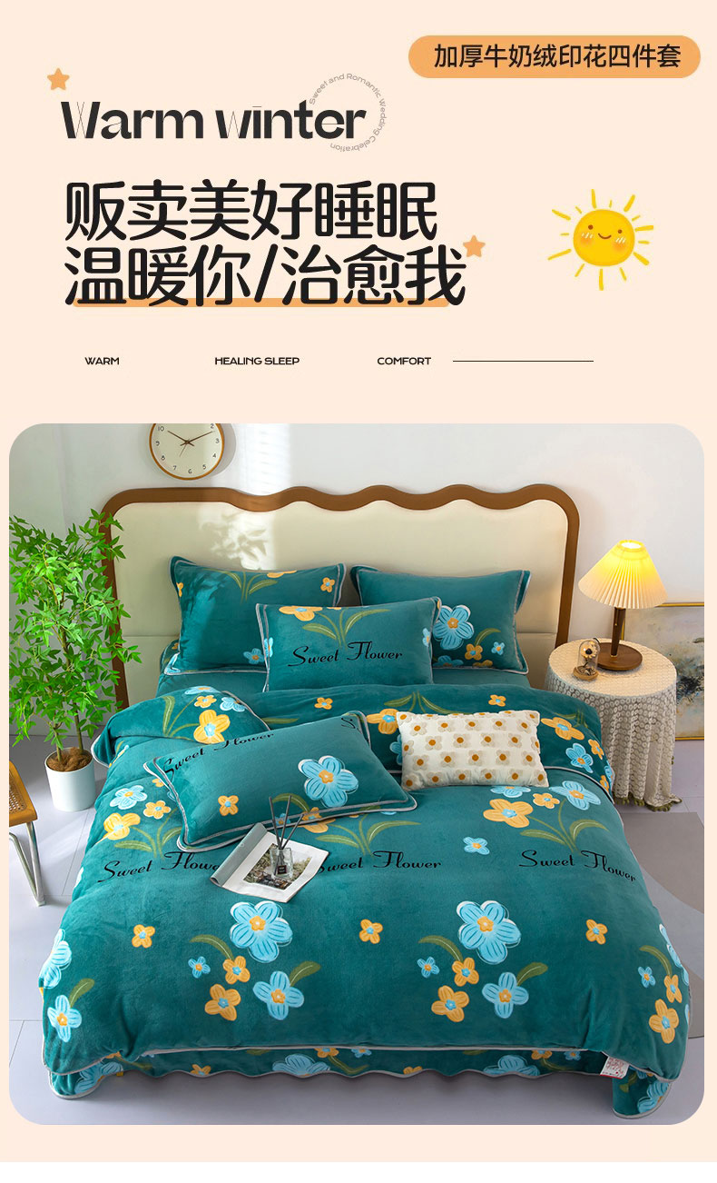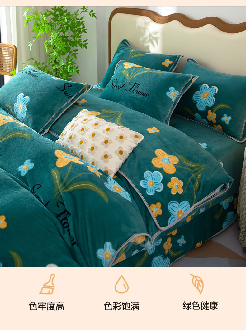 商品名称:雨萝家纺 2024新款亲肤舒适牛奶绒四件套 花千朵