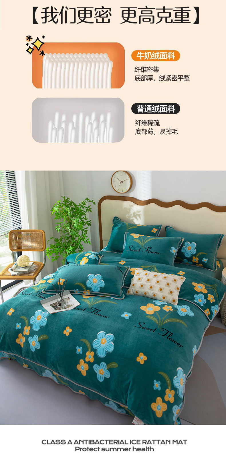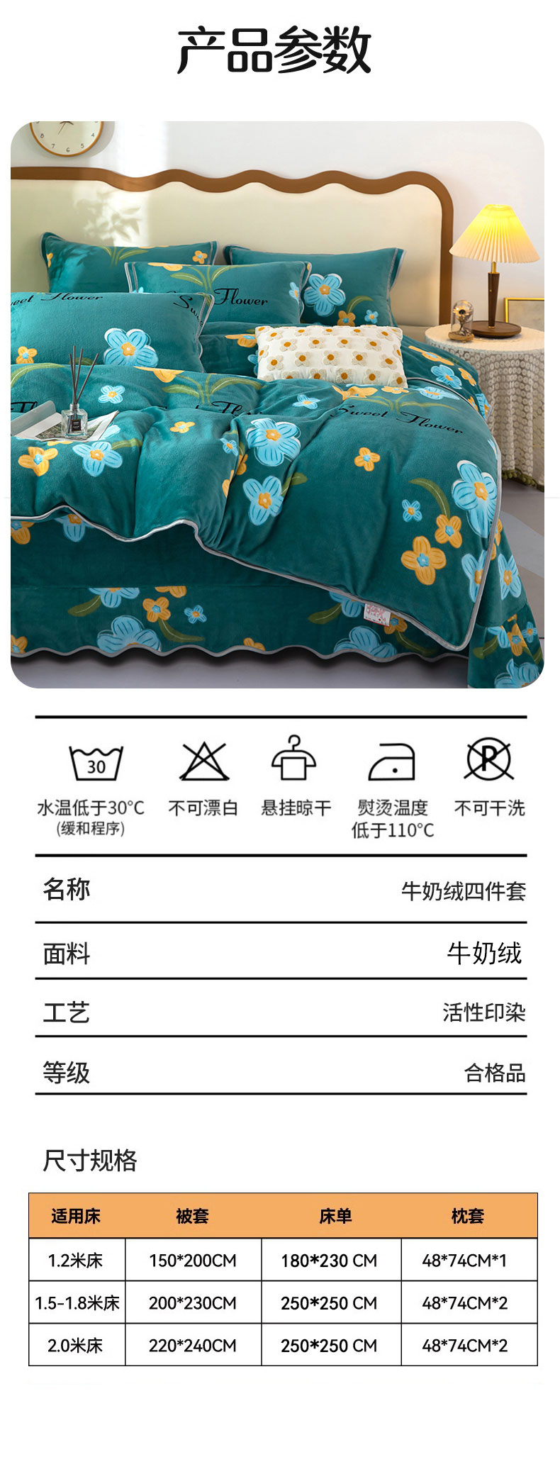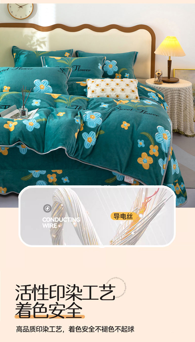 商品名称:雨萝家纺 2024新款亲肤舒适牛奶绒四件套 花千朵