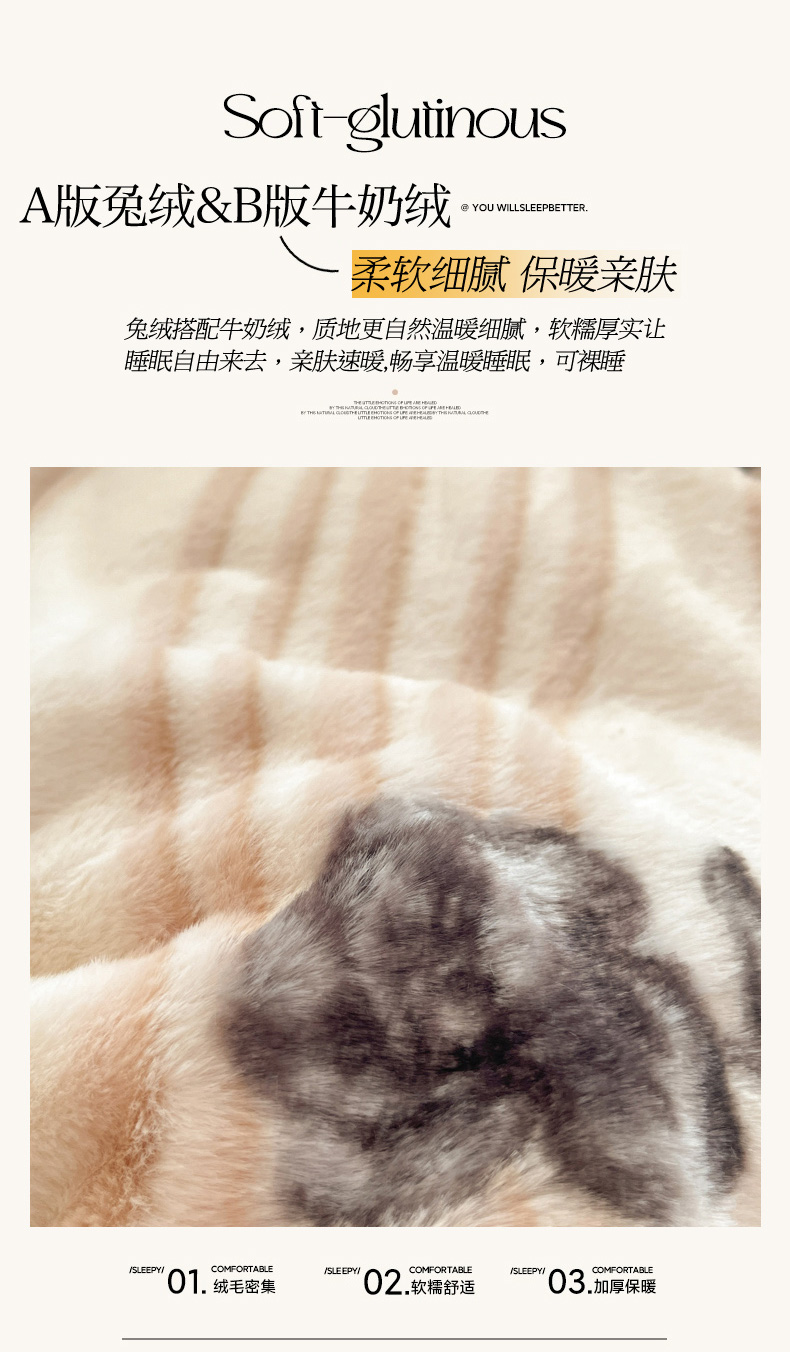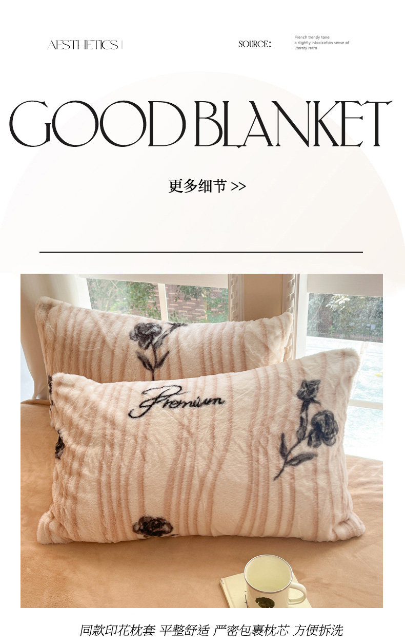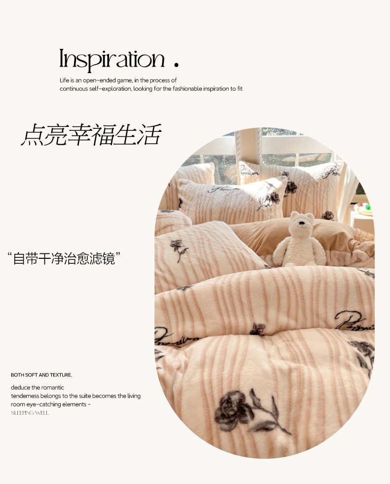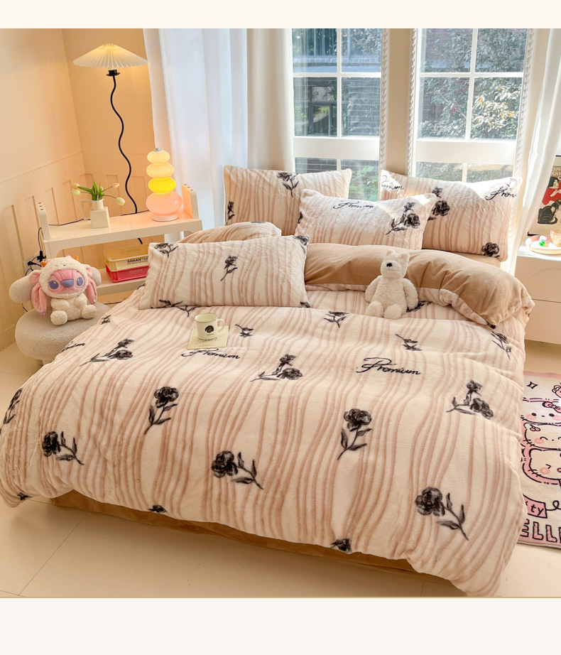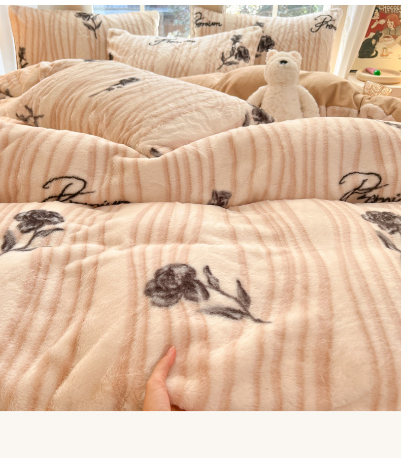 慕澄家纺 2024新款兔绒牛奶绒加厚保暖印花四件套 线条玫瑰