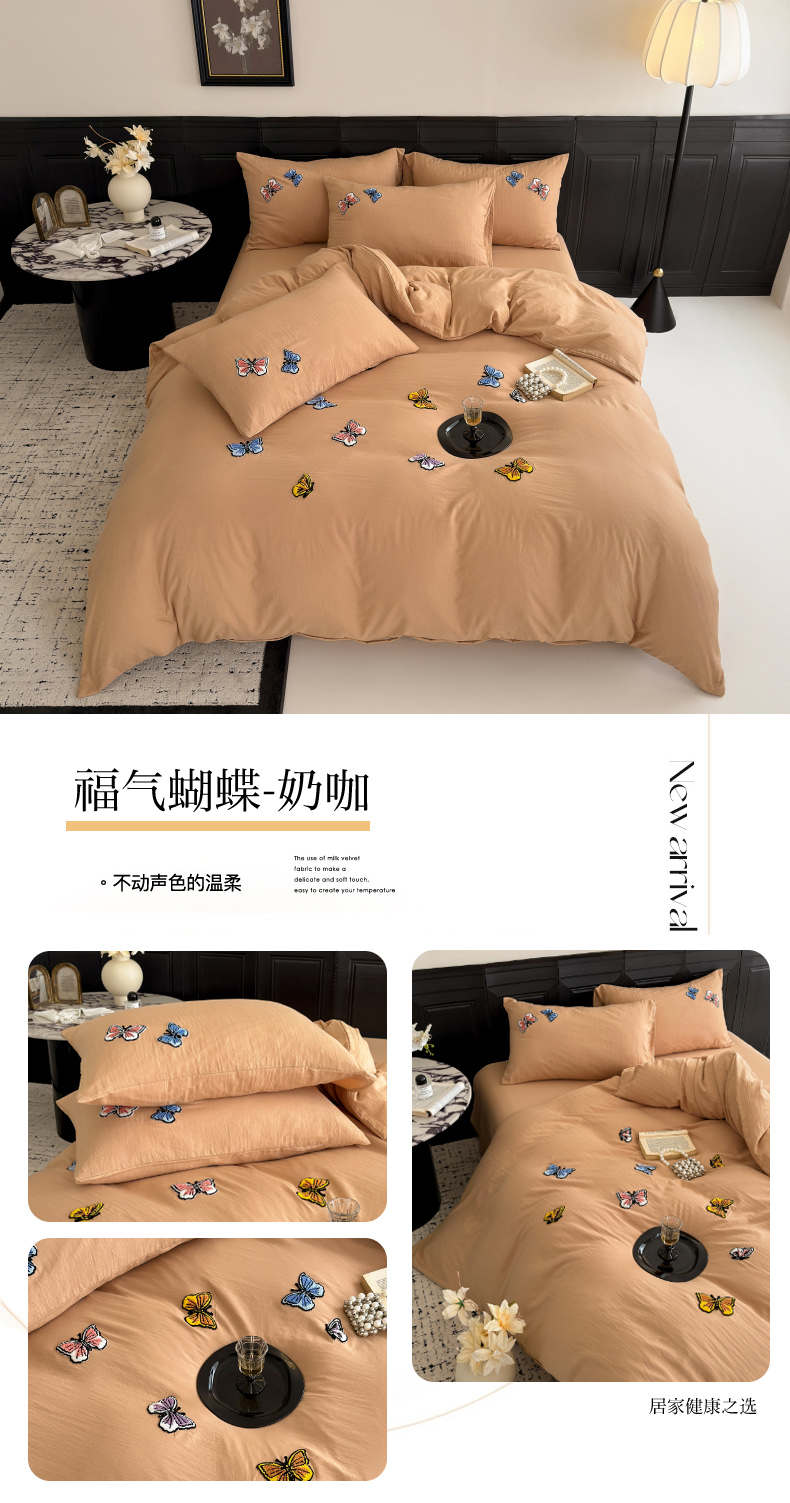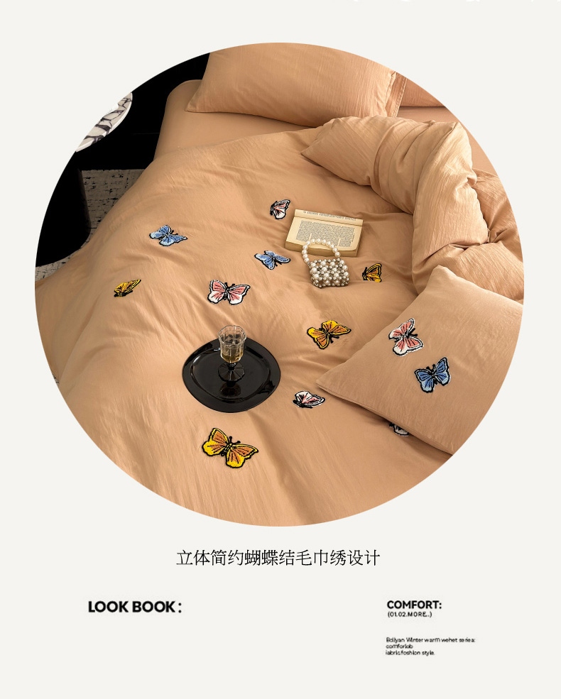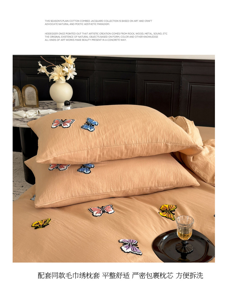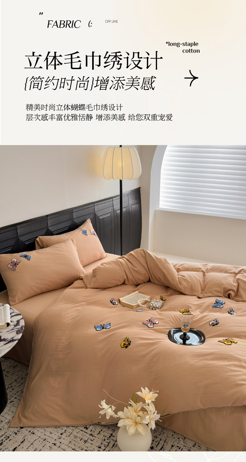 当前位置: 91家纺网 > 商品网购 > 床品套件 > 四件套 > 水洗棉四件套 > 花伞家居 2024新款毛巾绣蝴蝶福气自来水洗棉加厚四件套 福气蝴蝶-奶咖
