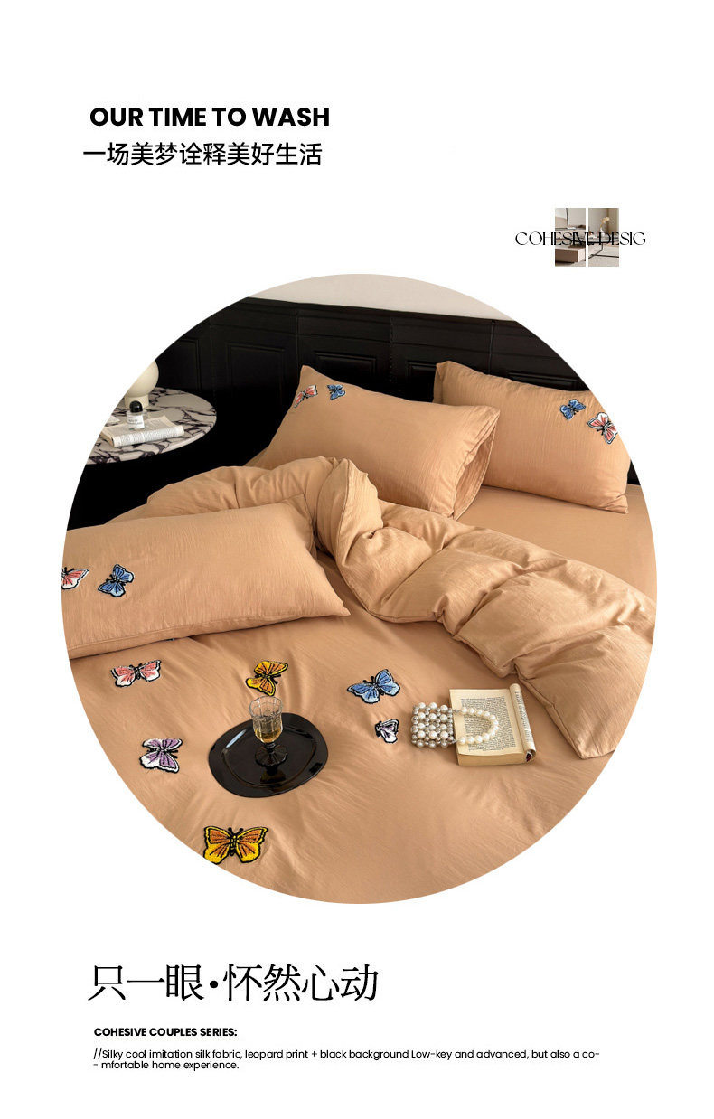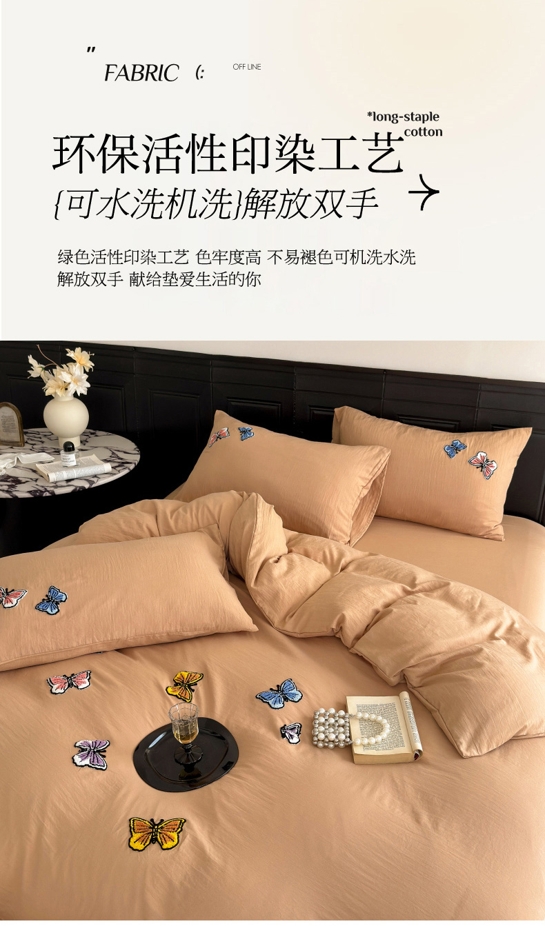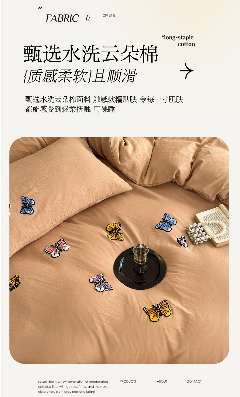 当前位置: 91家纺网 > 商品网购 > 床品套件 > 四件套 > 水洗棉四件套 > 花伞家居 2024新款毛巾绣蝴蝶福气自来水洗棉加厚四件套 福气蝴蝶-奶咖