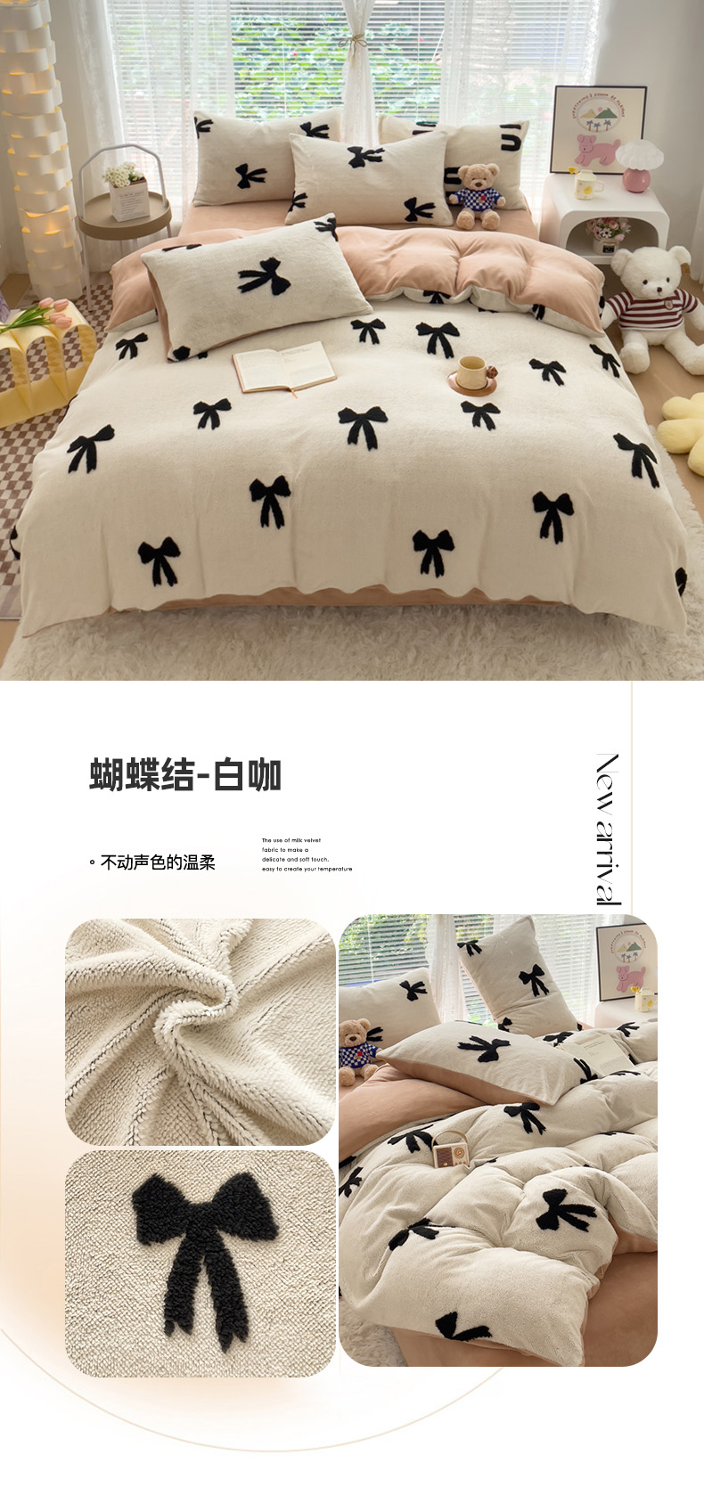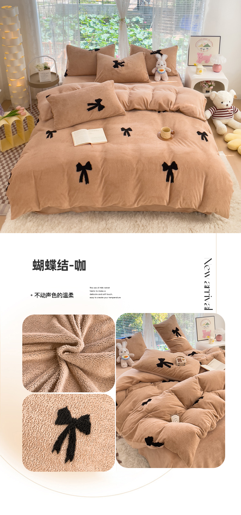 (总)蝶帕家纺 2024新款阳离子提花舒棉绒四件套,蝴蝶结-白咖,蝴蝶结-粉,蝴蝶结-灰,蝴蝶结-咖,蝴蝶结-紫,心动-粉,心动-咖,字母-白咖,字母-玫红