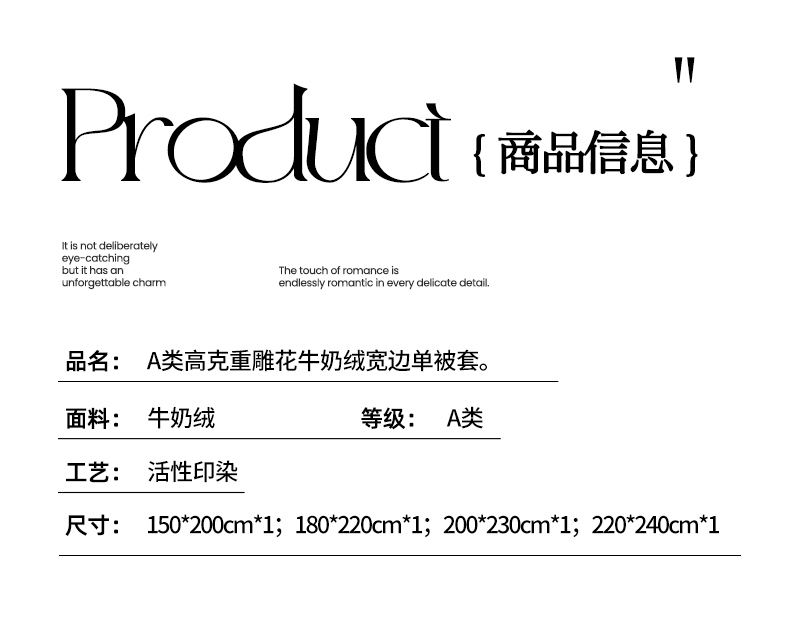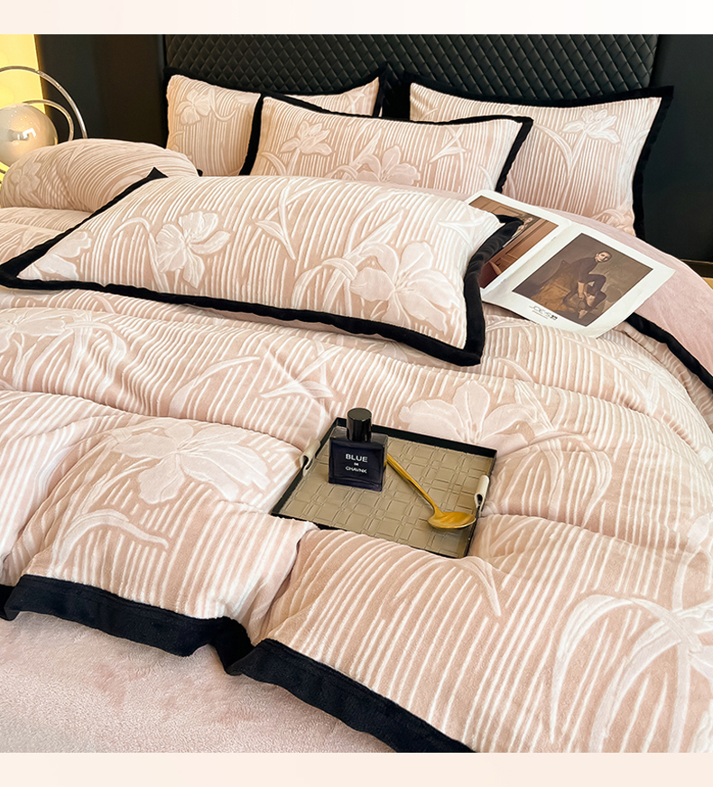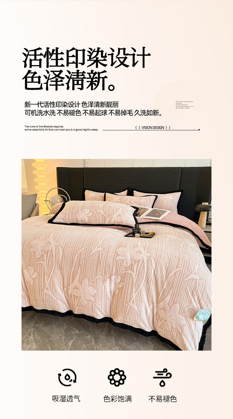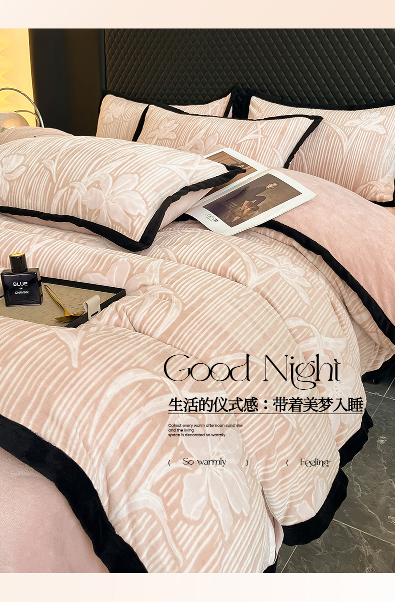 商品名称:多乐家纺 2024新款高克重加厚保暖立体雕花牛奶绒宽包边被套 蔓朵-玉