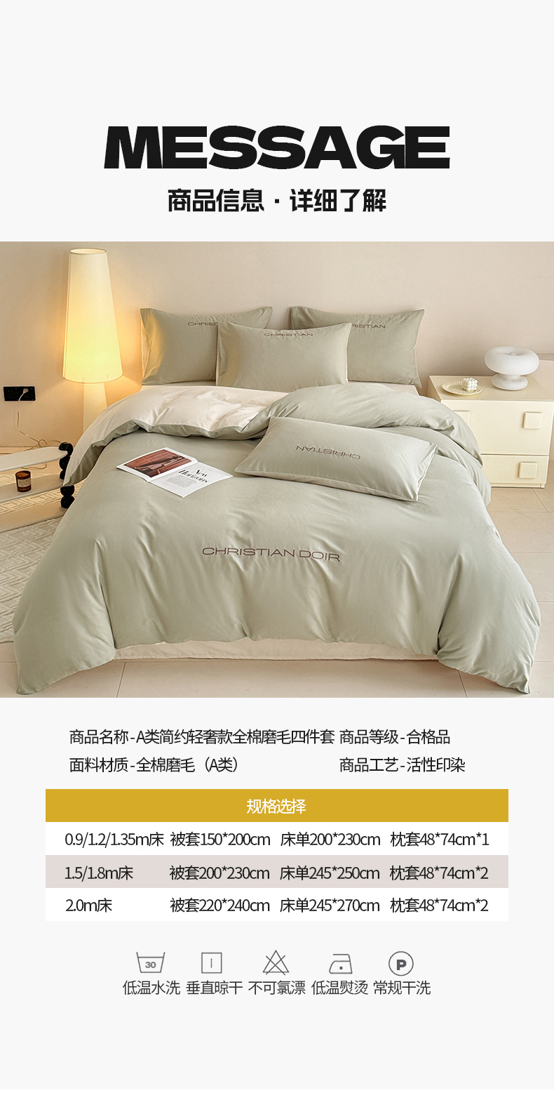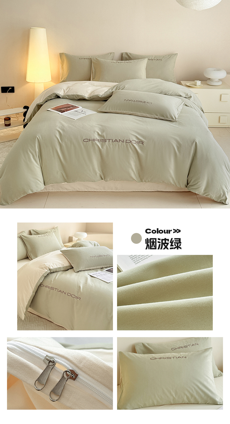 当前位置: 91家纺网 > 商品网购 > 床品套件 > 四件套 > 普通磨毛四件套 > 典曼家纺 2024新款A类简约轻奢款磨毛绣花四件套 烟波绿