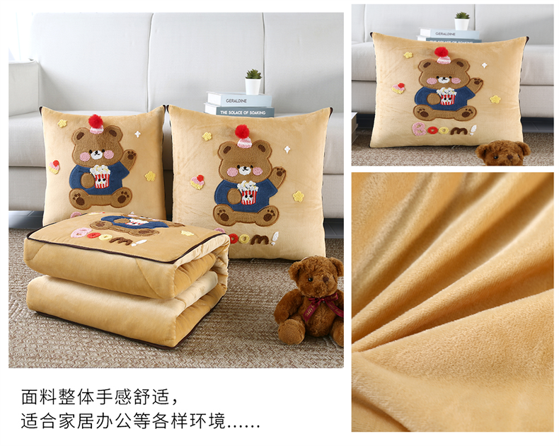 商品名称:素玖抱枕被 2024新款牛奶绒亲肤刺绣抱枕被-抱抱熊 抱抱熊-黄色