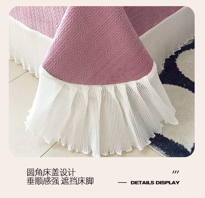 冬然 2022新款床盖牛奶绒夹棉床裙四件套单床裙单被套爱心格,爱心格