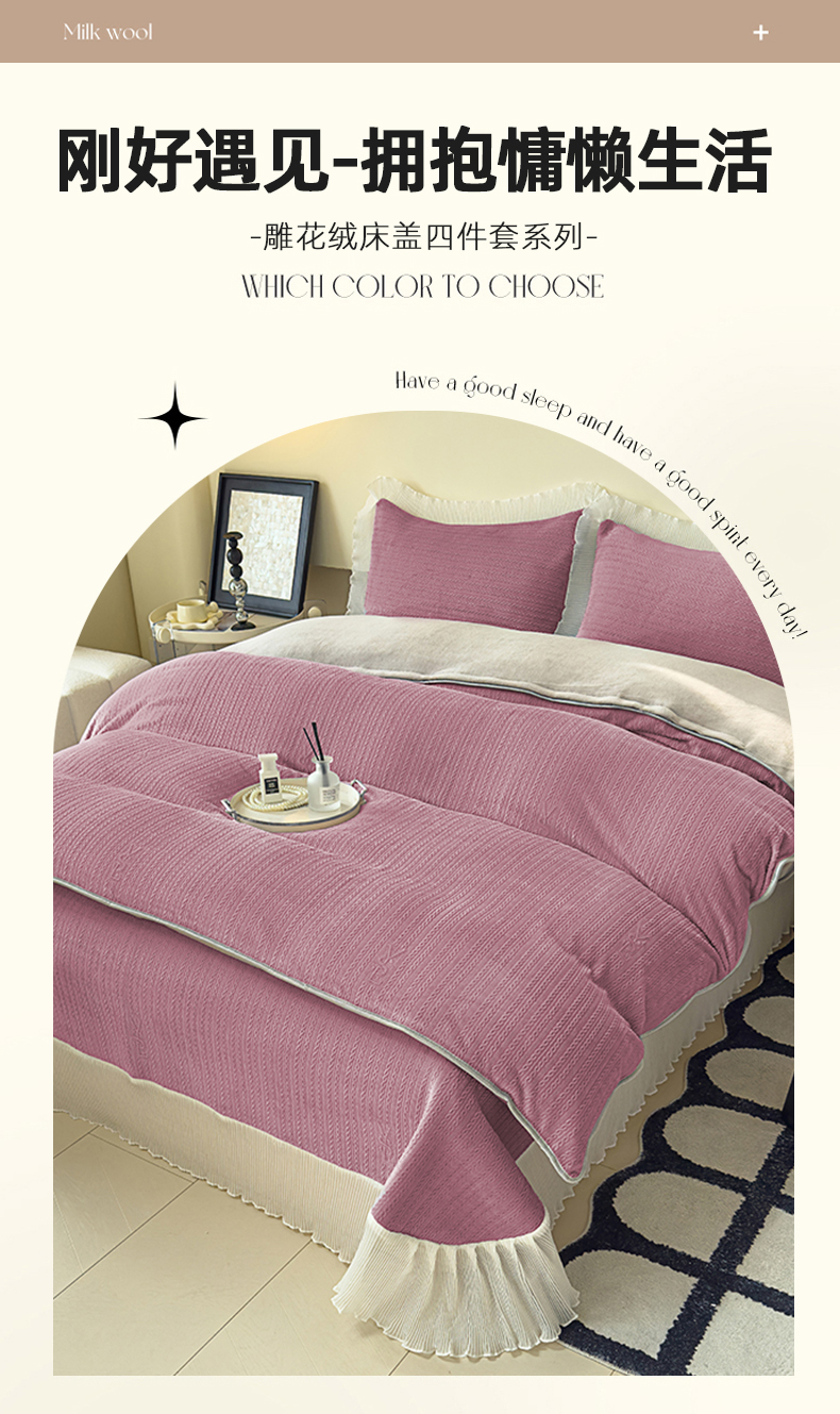 (总)冬然家纺 2025新款高克重牛奶绒蕾丝花边床盖系列,水墨茶花,朵朵花香,肌理纹-灰,肌理纹-咖,经典条纹,卡皮巴拉,可可西里,楼兰花海,奶油布丁,幸运点点