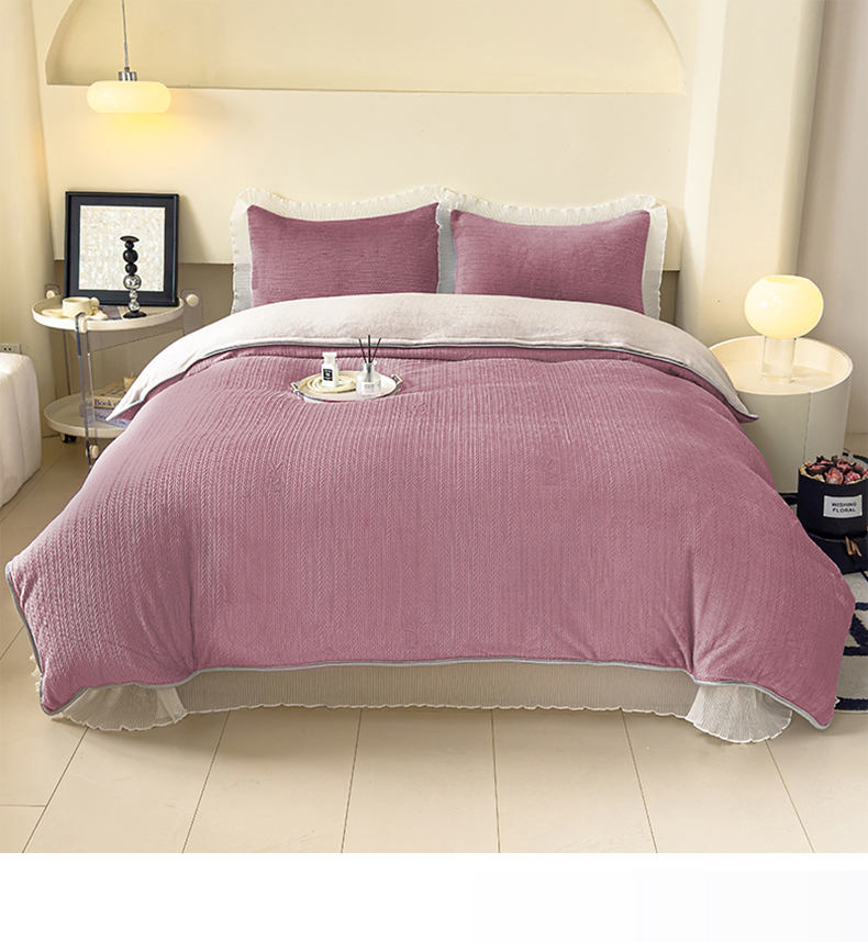 冬然家纺 2024新款雕花绒床盖系列 小麦穗-豆沙粉