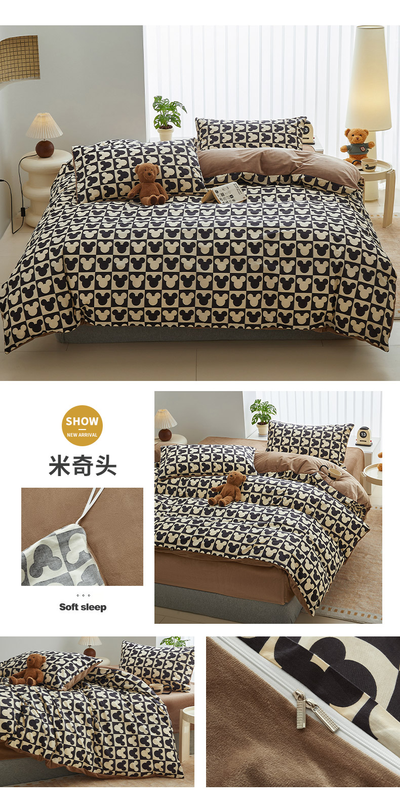 怡家居 2024秋冬新品AB版加厚保暖全棉加绒四件套 米奇头
