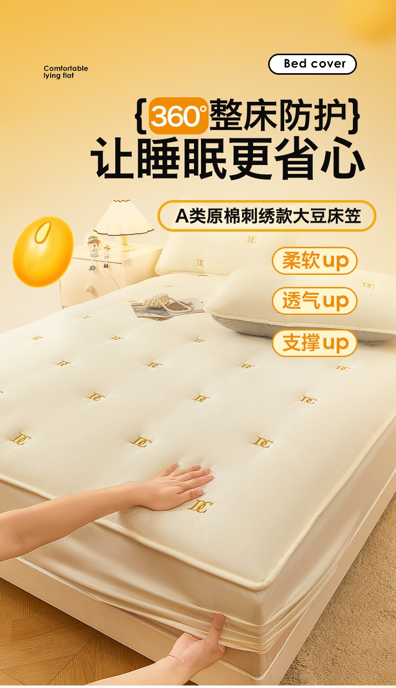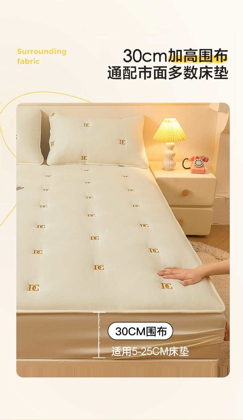 商品名称:2025新款A类水洗棉大豆刺绣床笠 DC-简约白