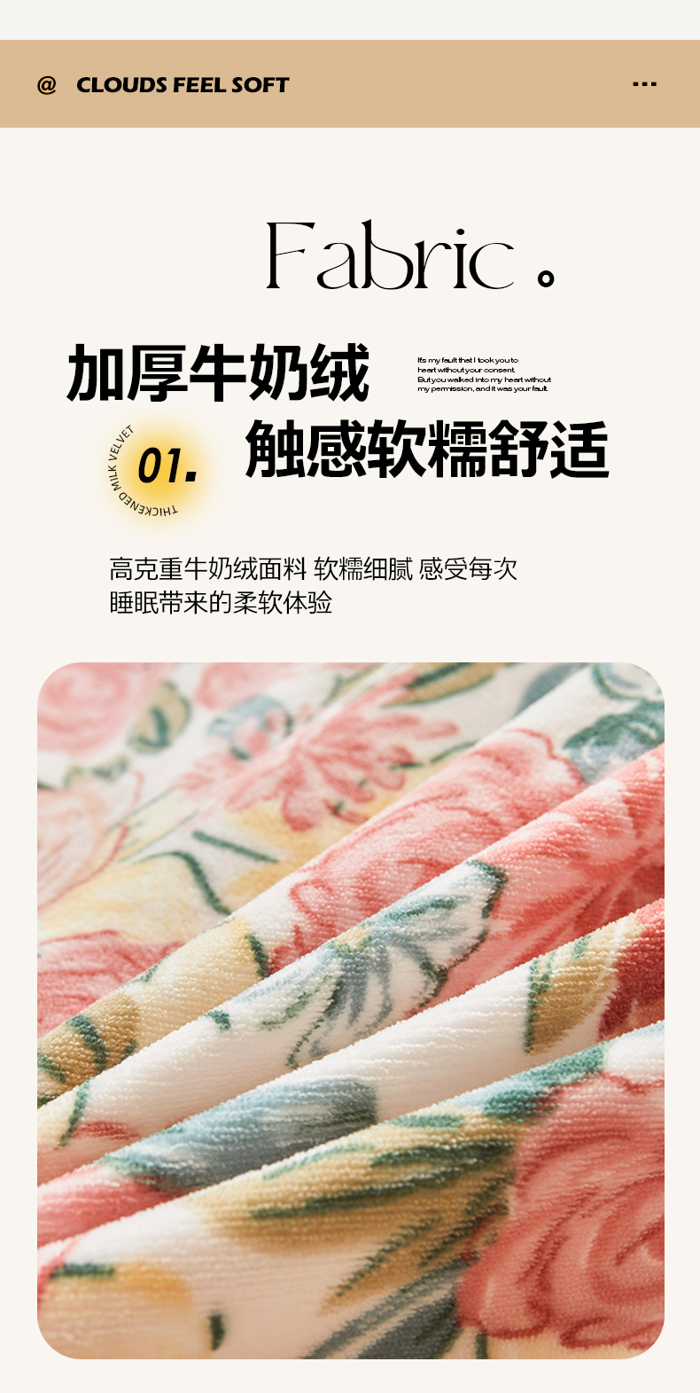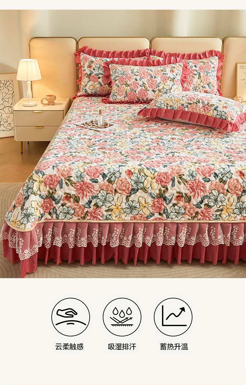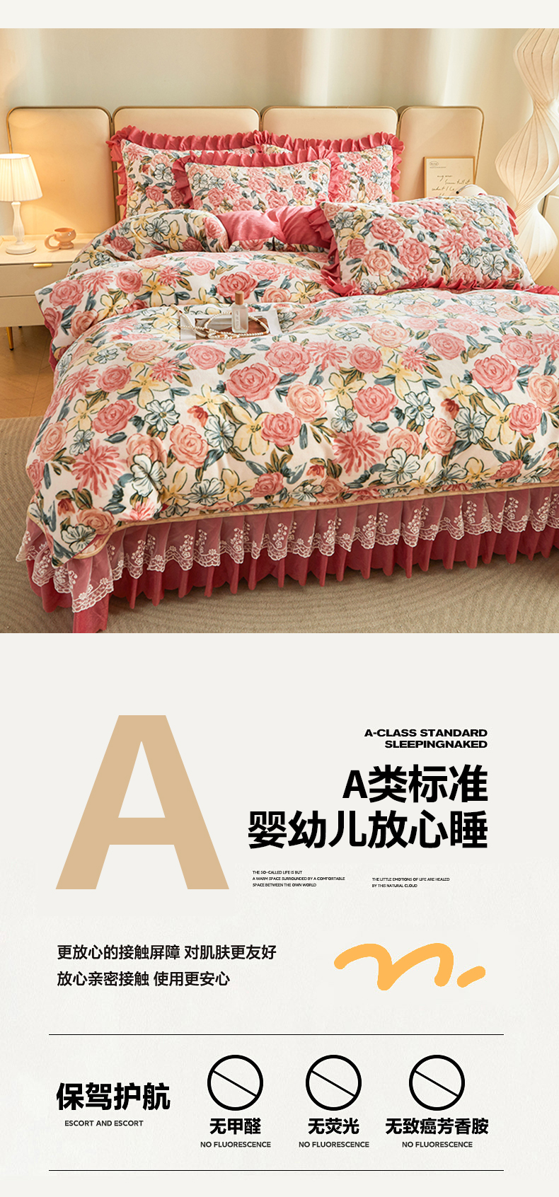 当前位置: 91家纺网 > 商品网购 > 床上用品 > 床盖 > 艾裙海 2025新款高克重加厚保暖A类牛奶绒夹棉床盖系列四件套 爱的花海