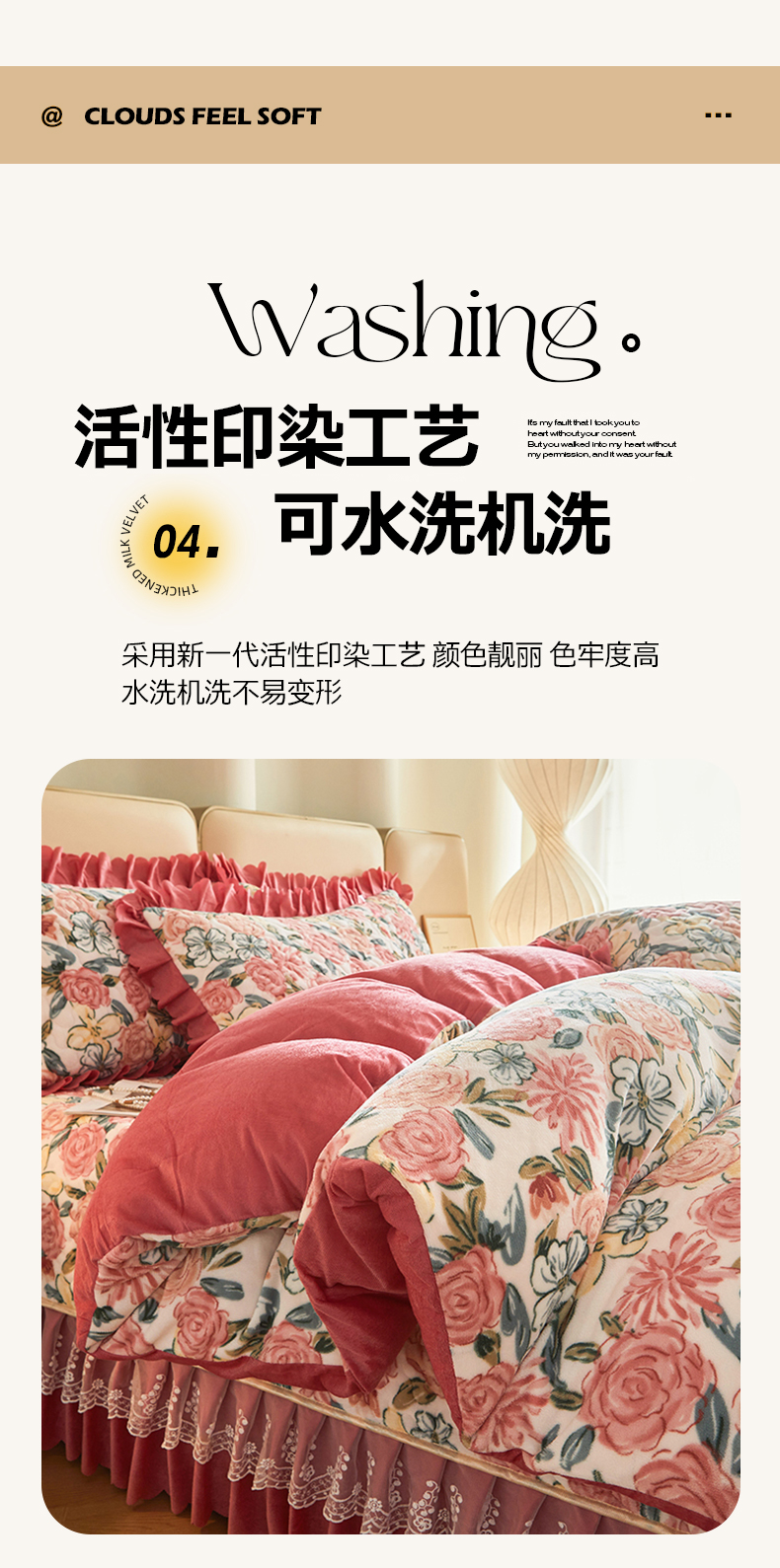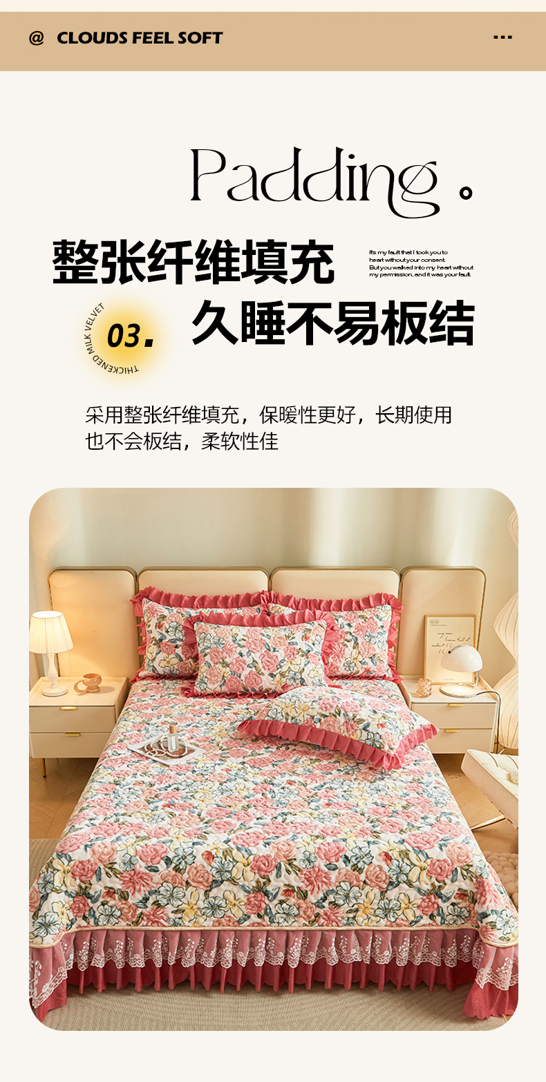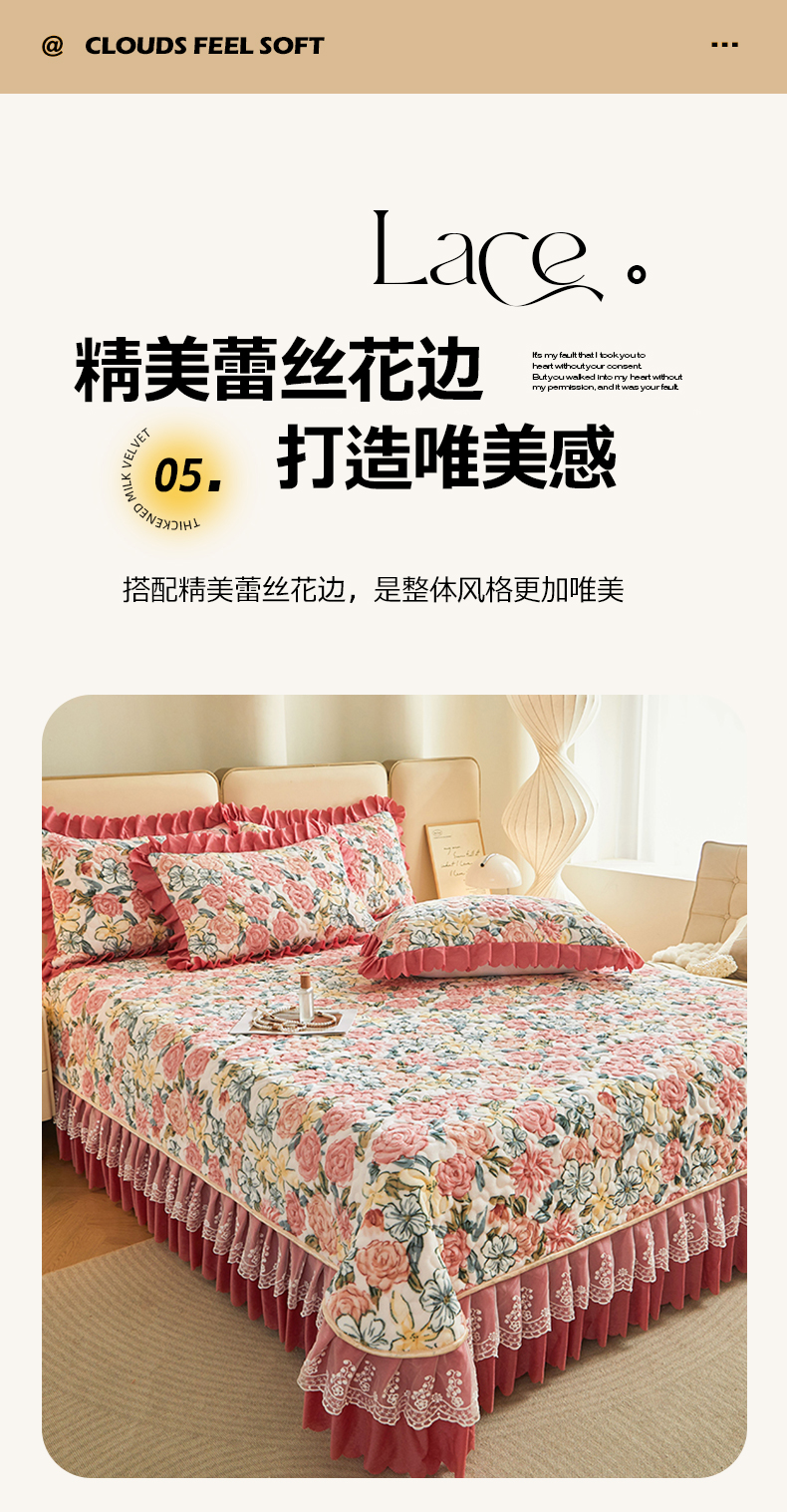 当前位置: 91家纺网 > 商品网购 > 床上用品 > 床盖 > 艾裙海 2025新款高克重加厚保暖A类牛奶绒夹棉床盖系列四件套 爱的花海