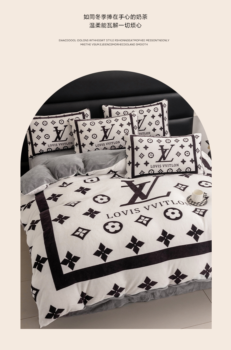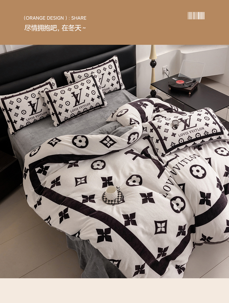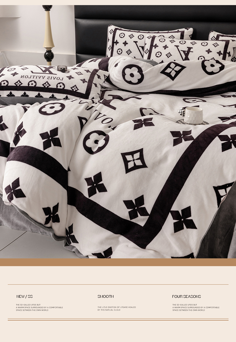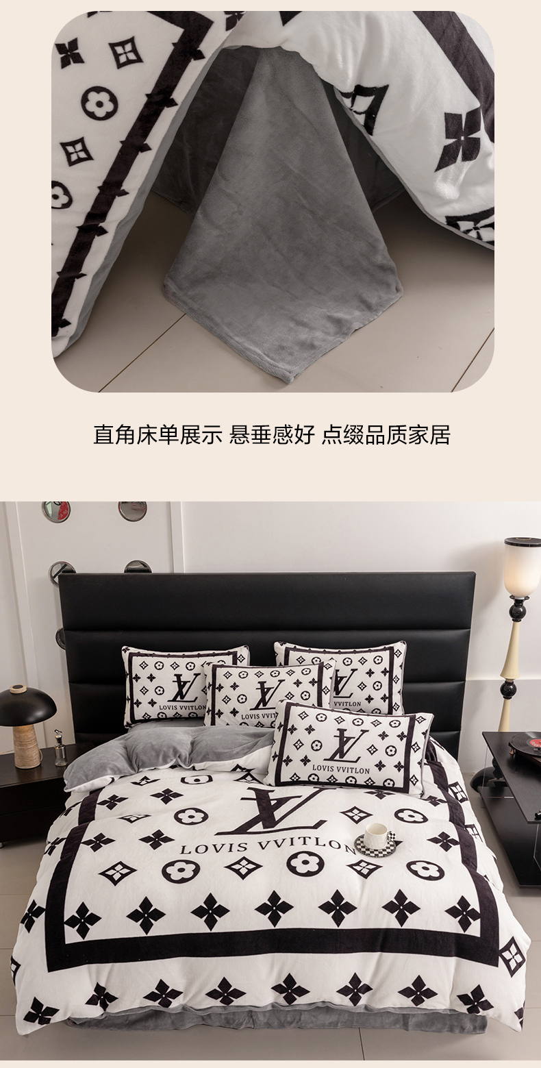 色鬼布艺 2024新款高克重牛奶绒大版印花四件套 黑白v