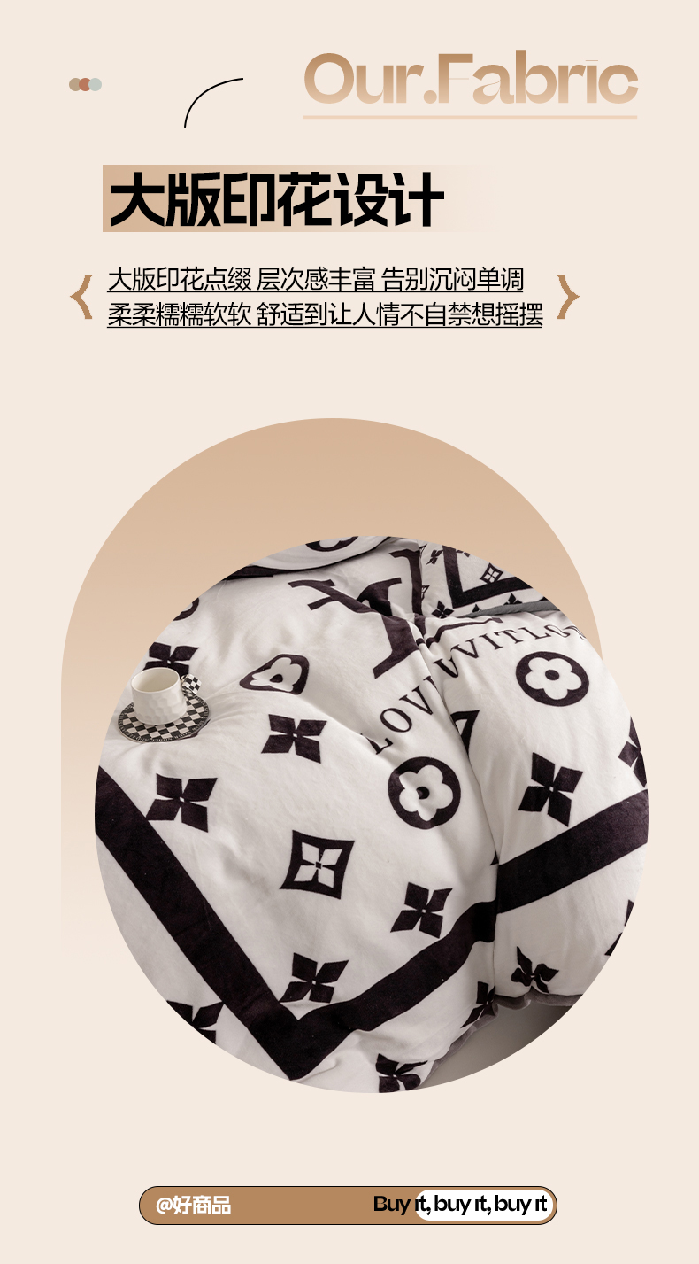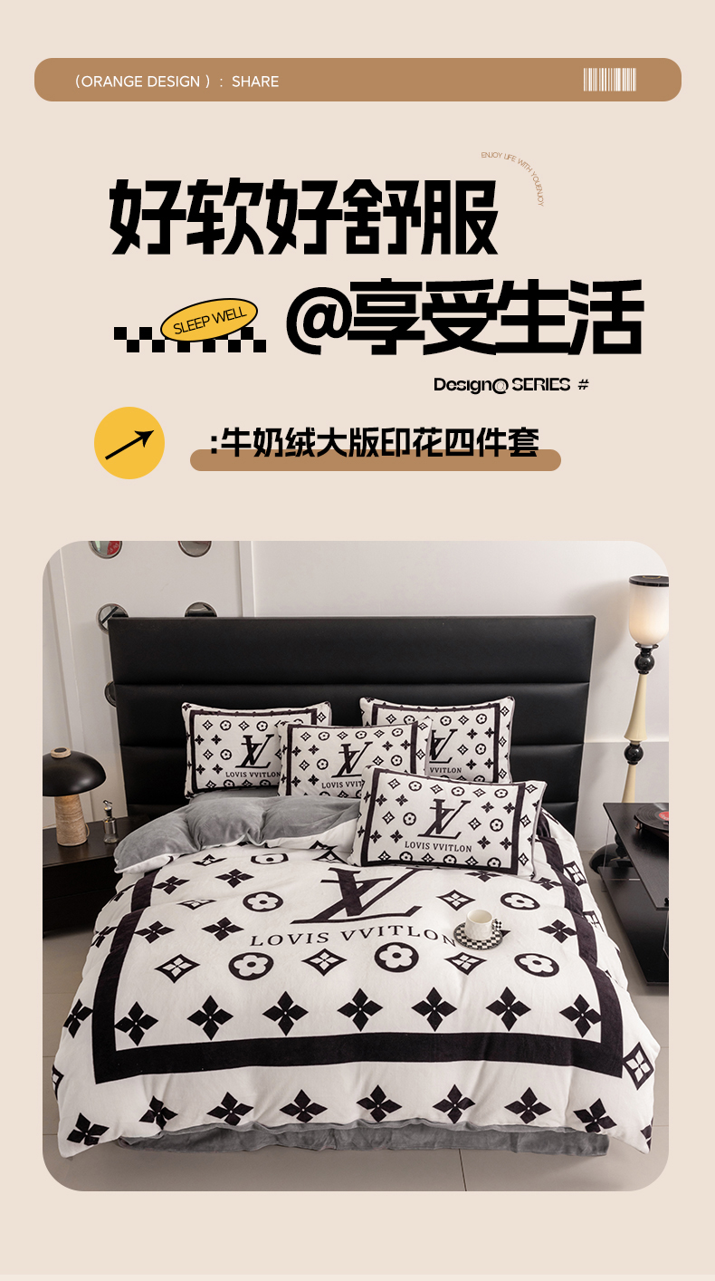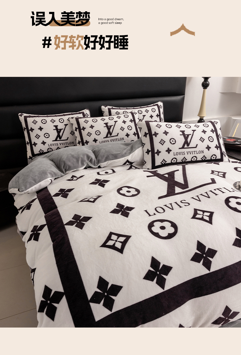 色鬼布艺 2024新款高克重牛奶绒大版印花四件套 黑白v