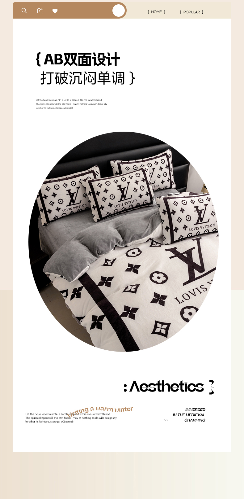(总)色鬼布艺高端家居主号 2025新款轻奢亲肤纯棉数码印花网红热款四件套,豹纹香,白金V,白香花,大H,黑白迪,黑白V,灰迪,咖古,克莱因,慕斯小姐,山茶花,星空