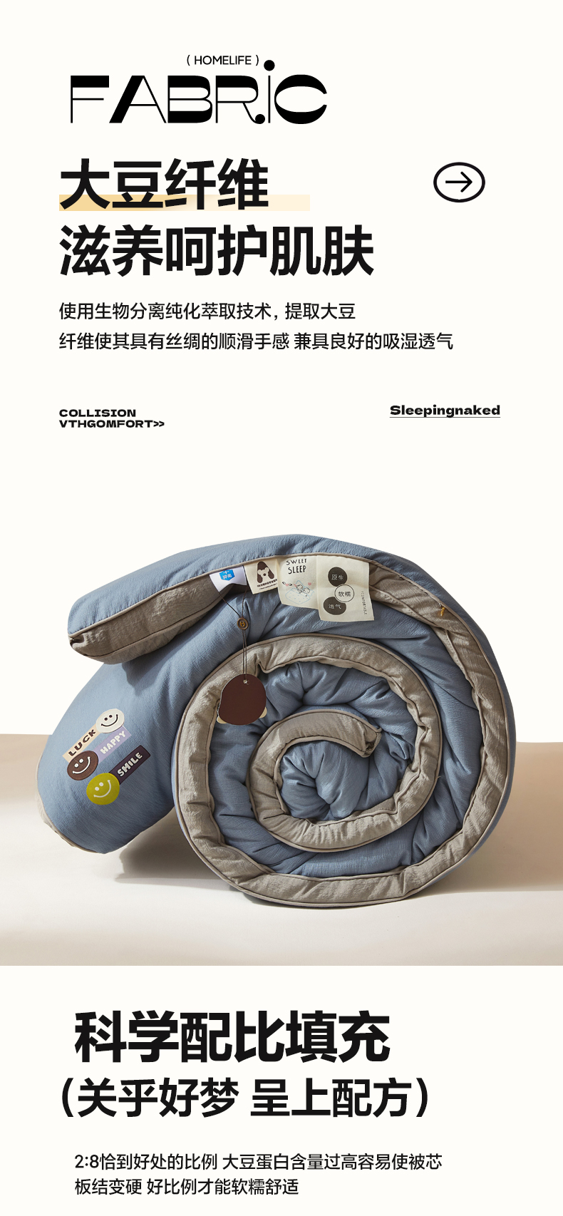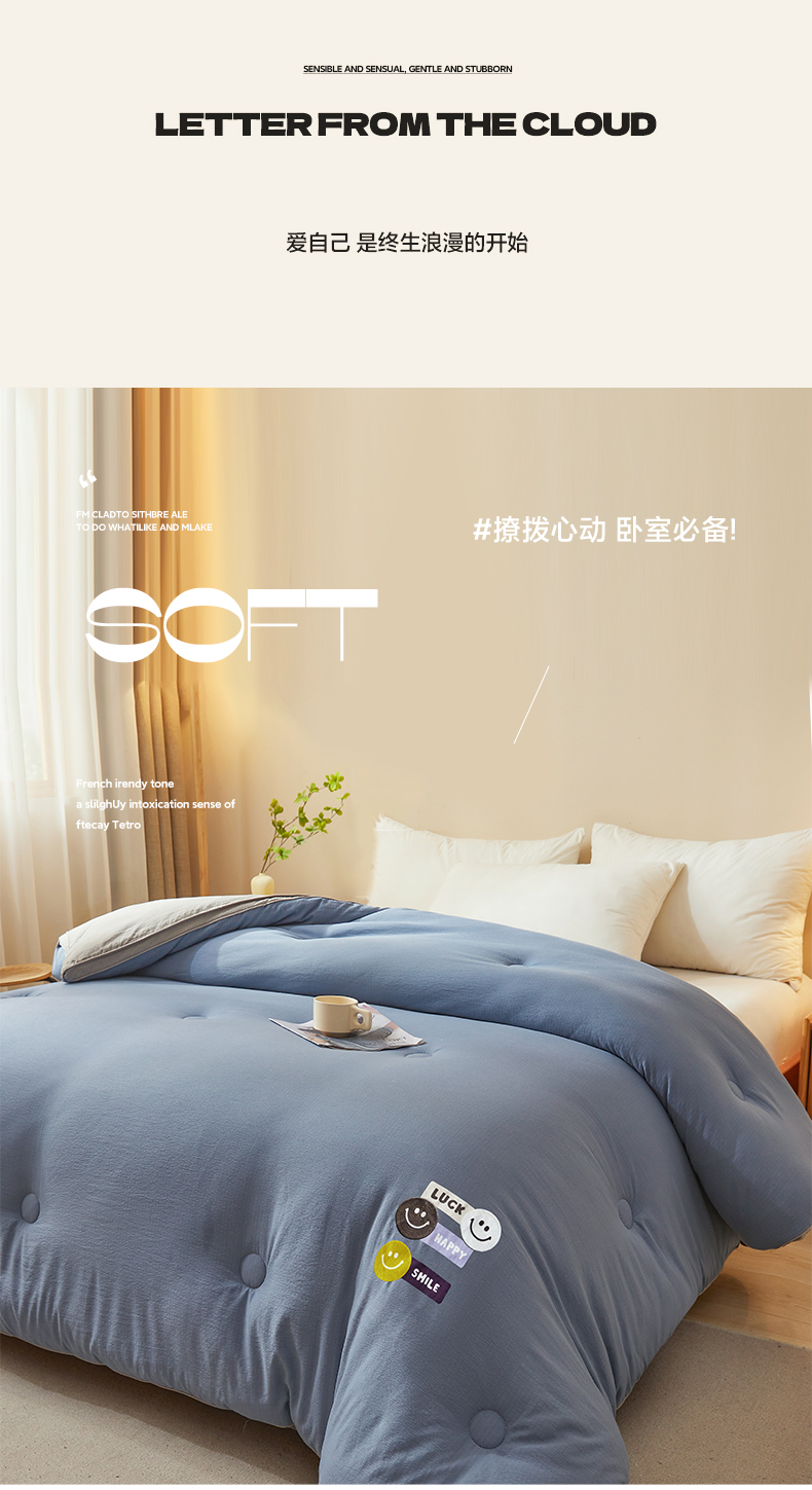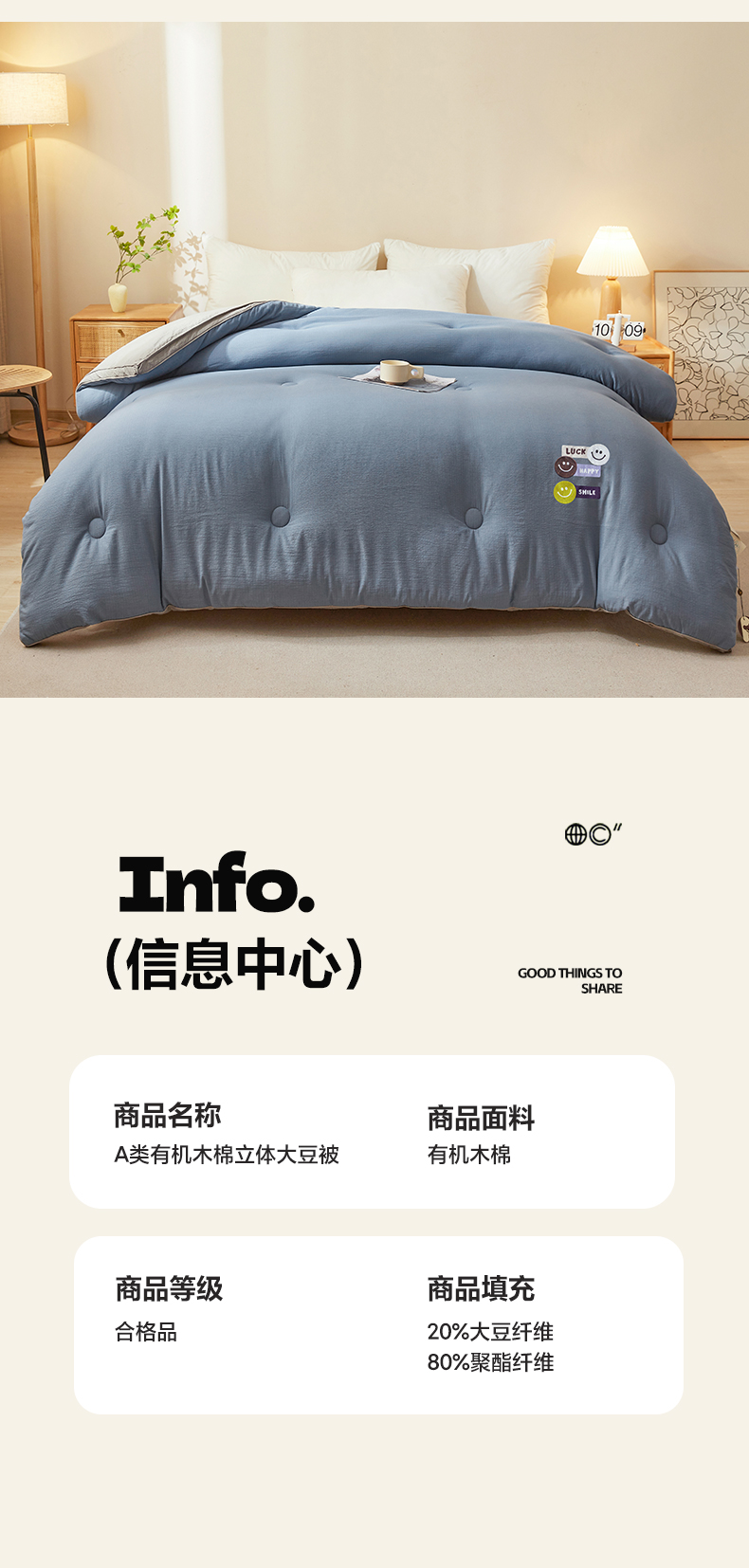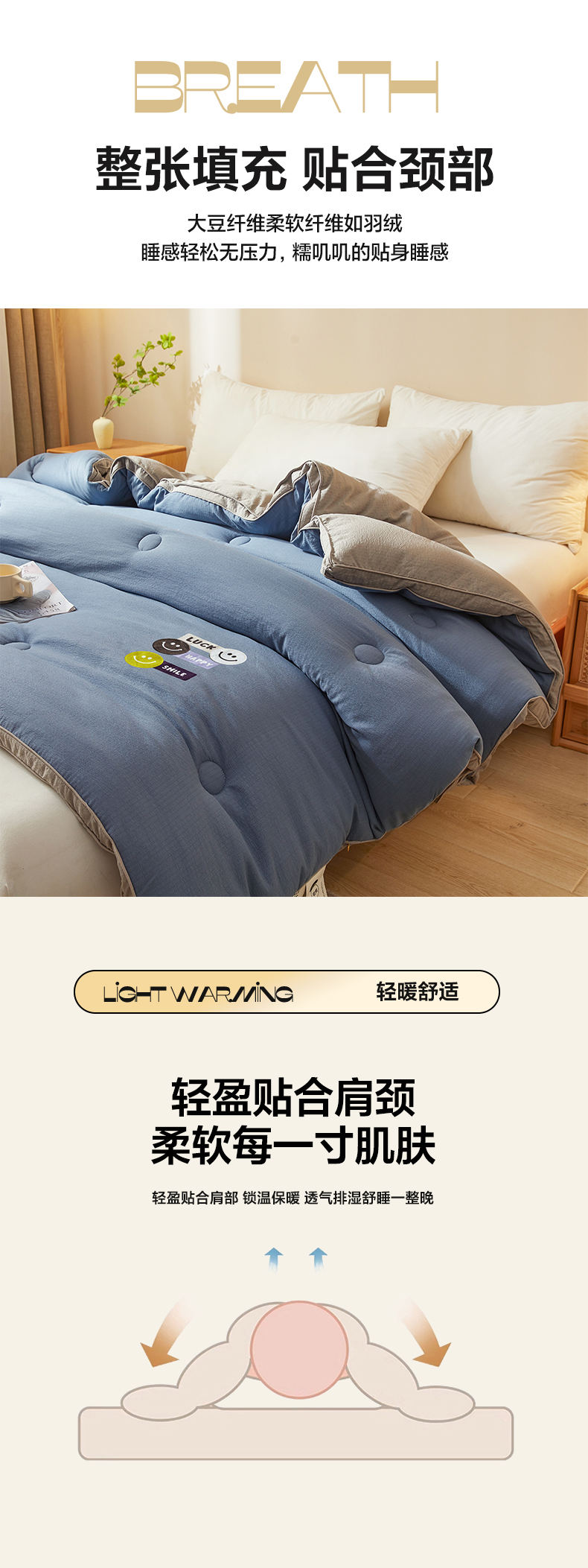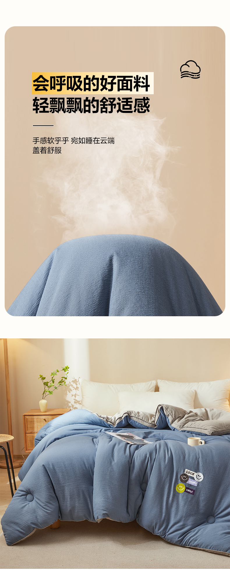 • 91家纺网 家纺一手货源 找家纺 典冠 2024新款A类有机木棉立体大豆被冬被春秋被 素雅蓝