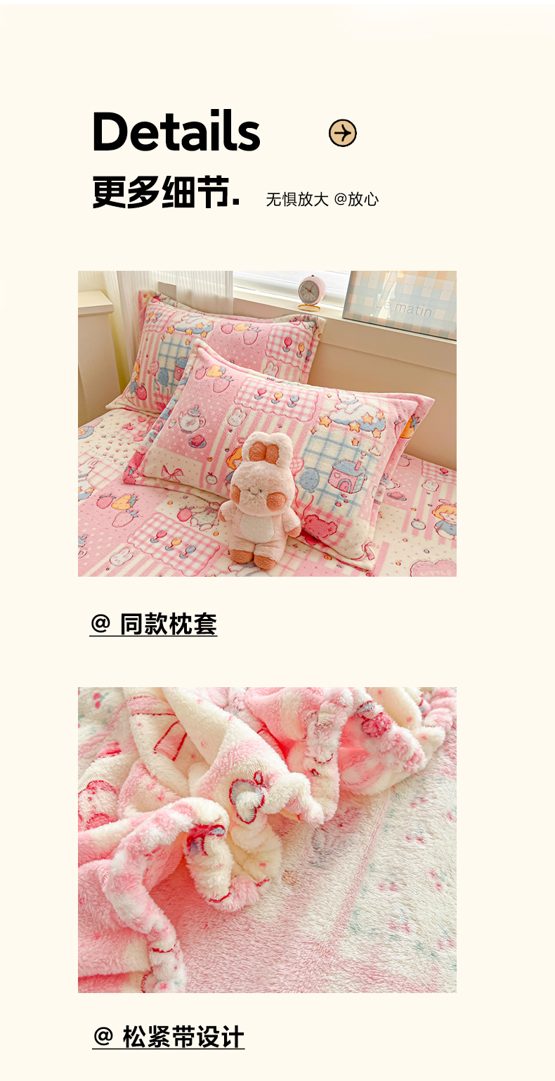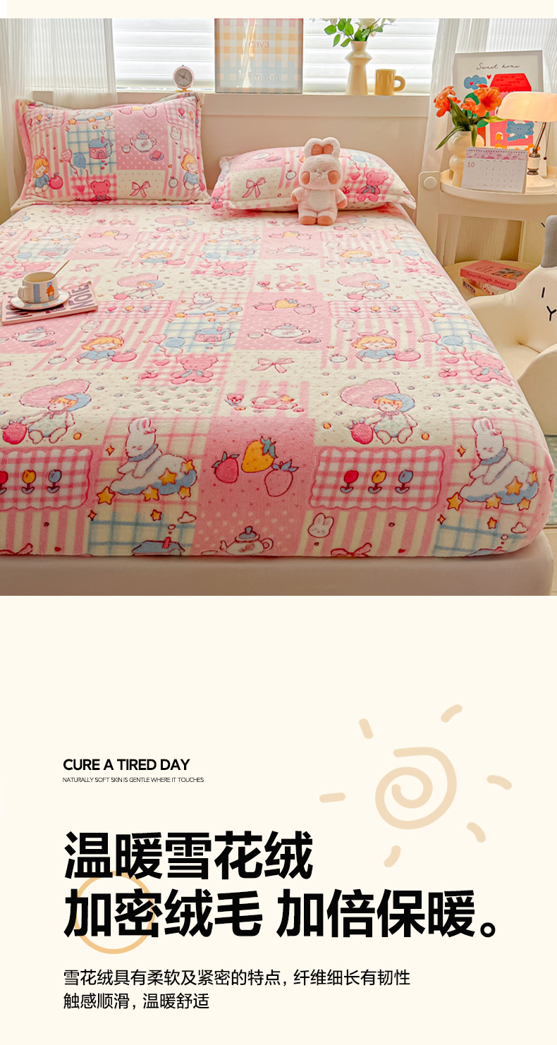 韩巢家纺 2024新款加厚雪花绒卡通印花保暖牛奶绒珊瑚绒床笠三件套 天使女孩