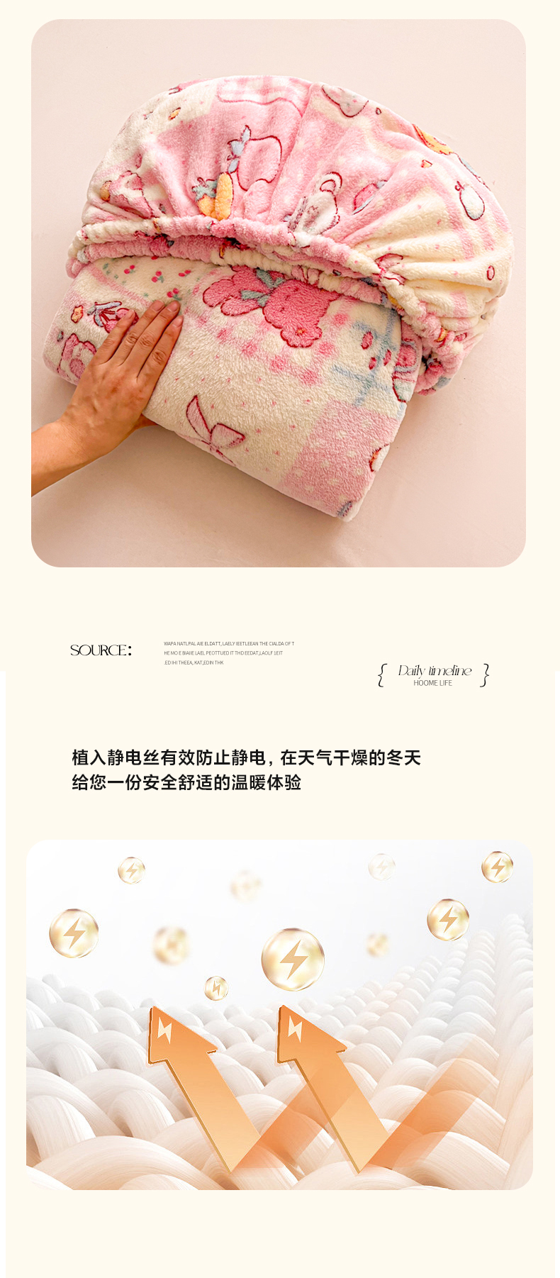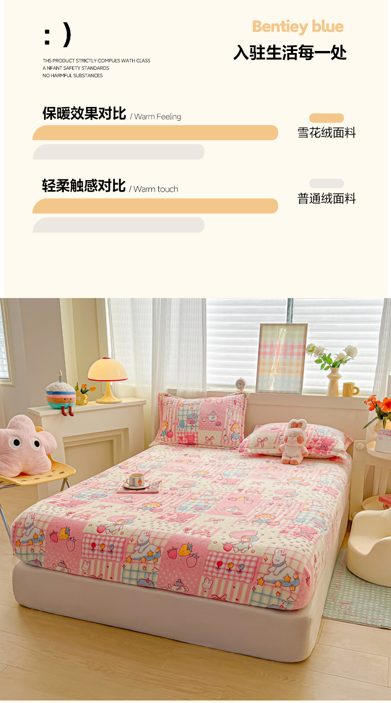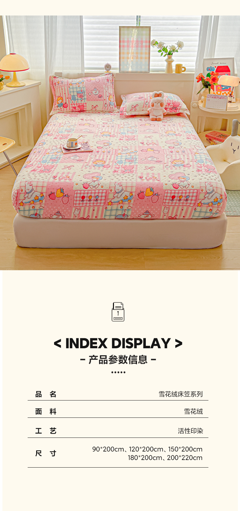 • 91家纺网 家纺一手货源 找家纺 韩巢家纺 2024新款加厚雪花绒卡通印花保暖牛奶绒珊瑚绒床笠三件套 天使女孩