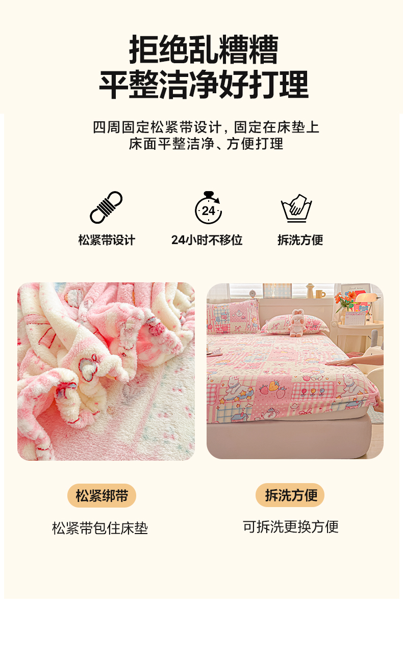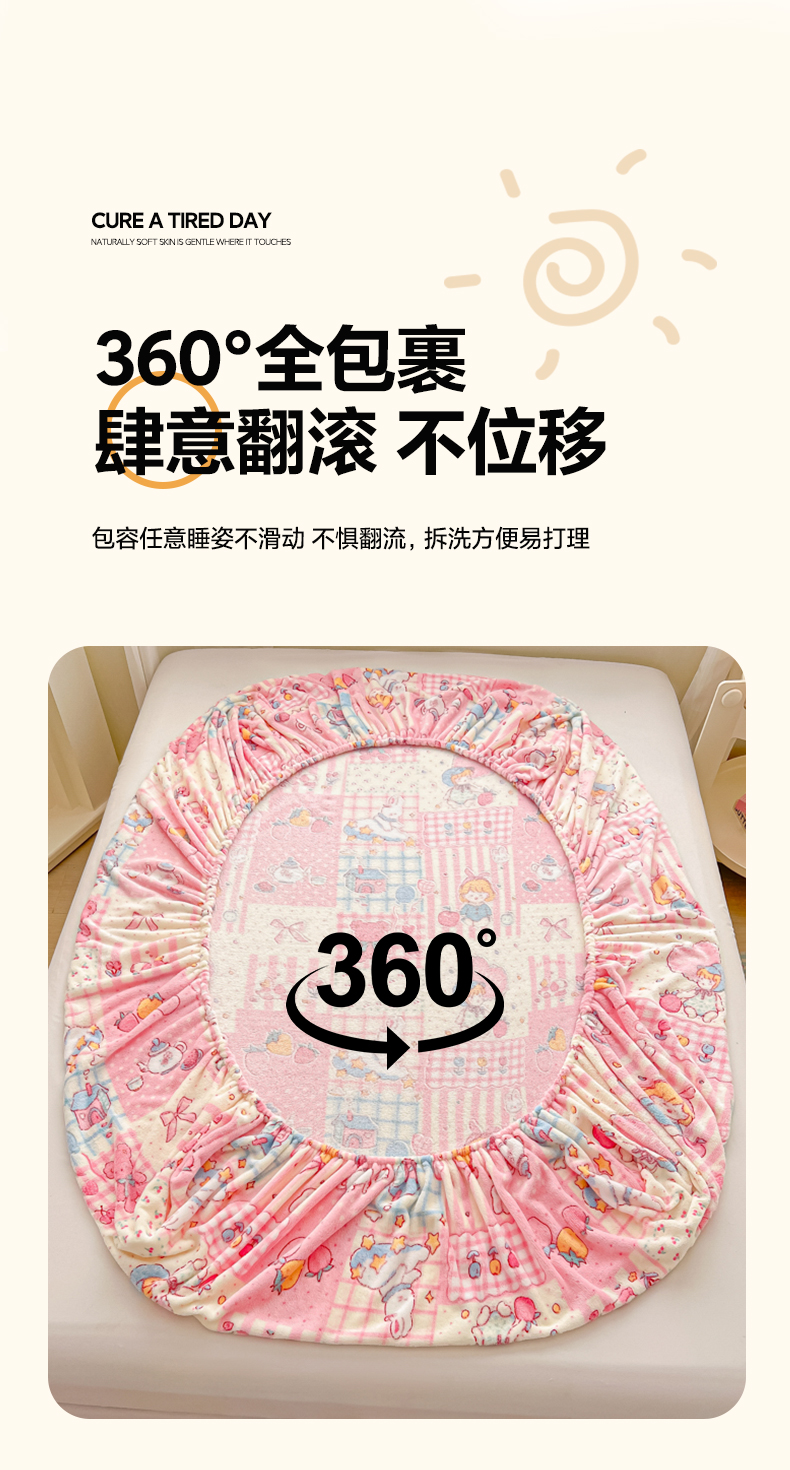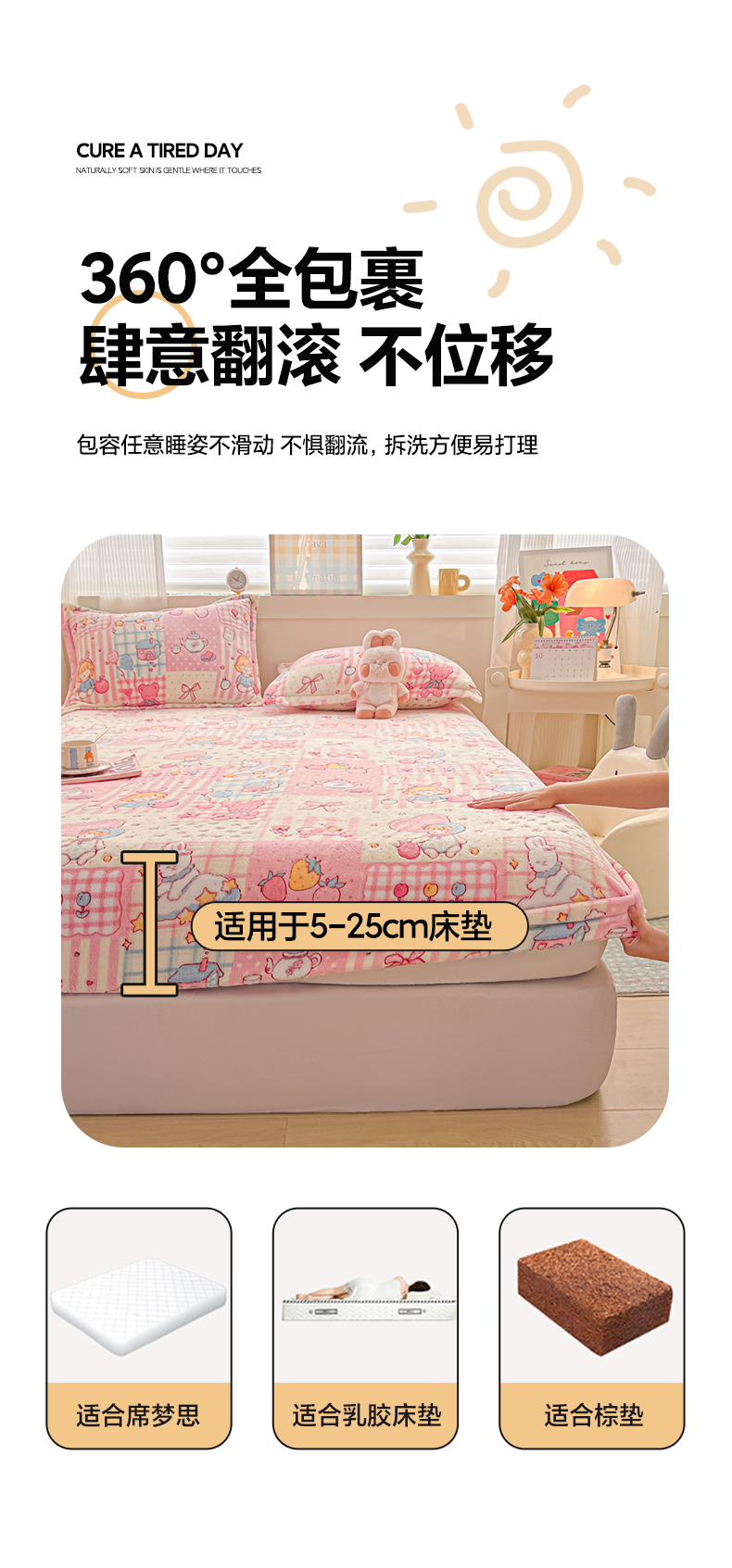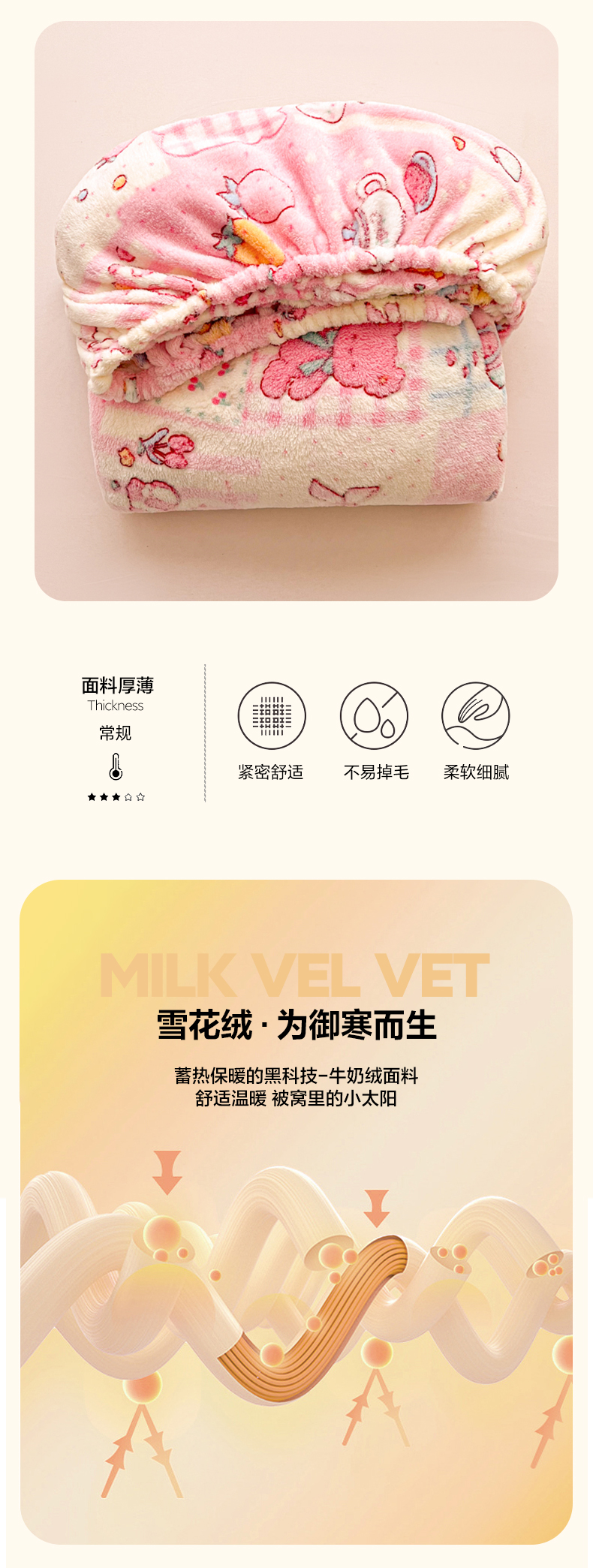 • 91家纺网 家纺一手货源 找家纺 韩巢家纺 2024新款加厚雪花绒卡通印花保暖牛奶绒珊瑚绒床笠三件套 天使女孩