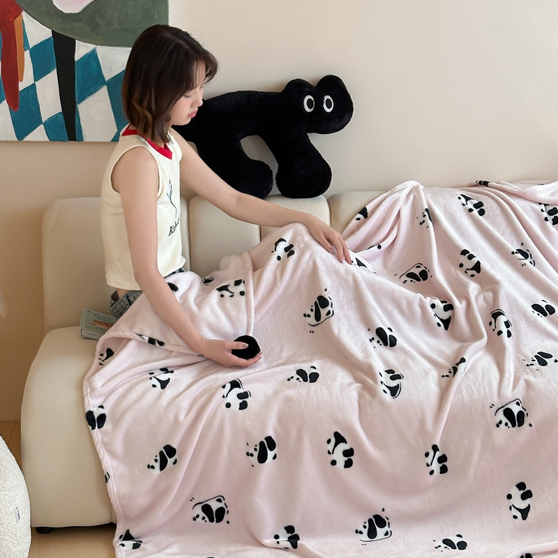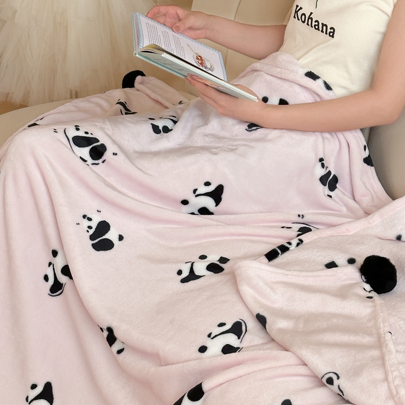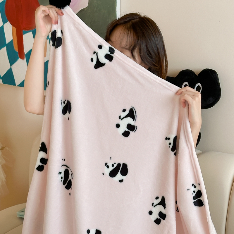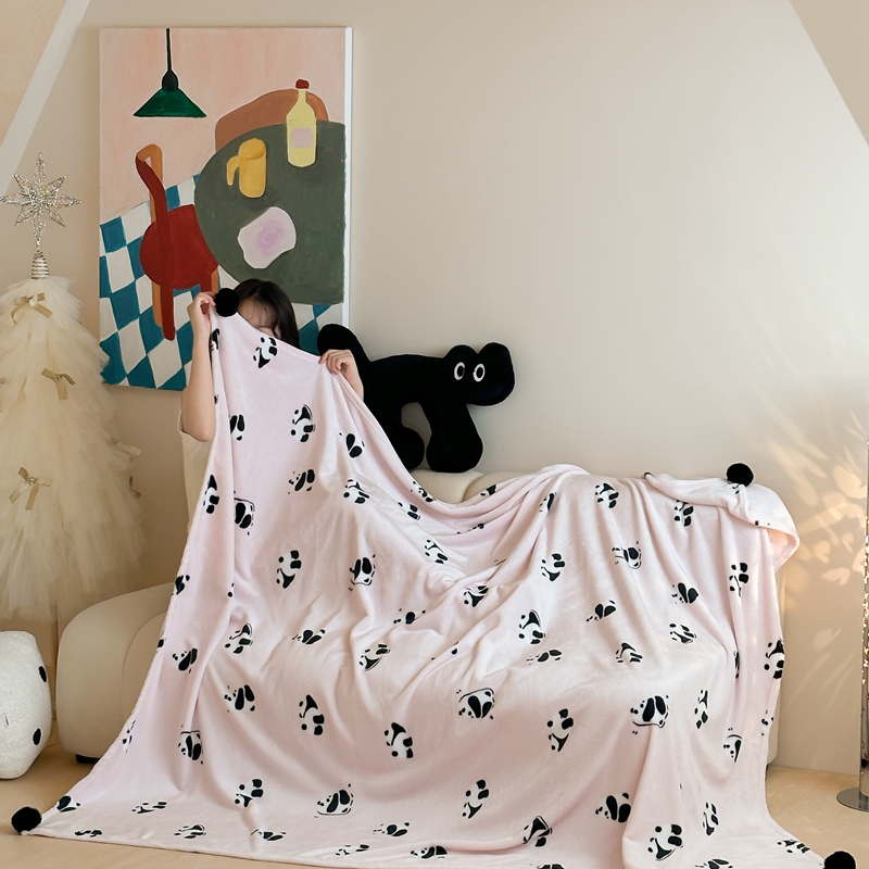 商品名称:觅糖家纺 2024新款双面法兰绒毛球毛毯系列 胖达-粉