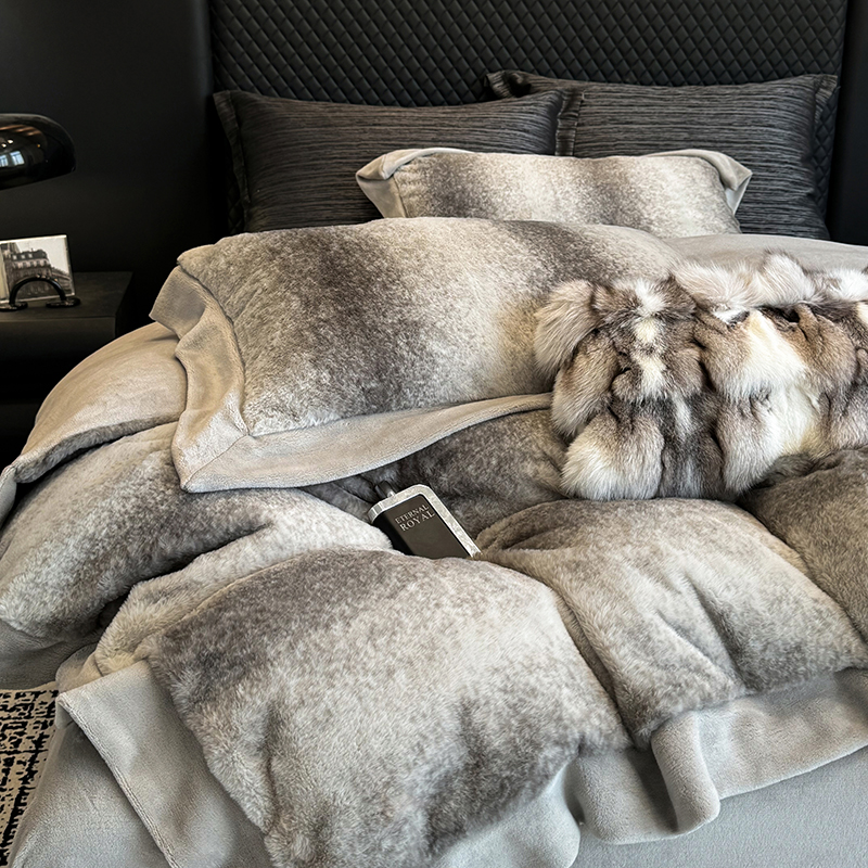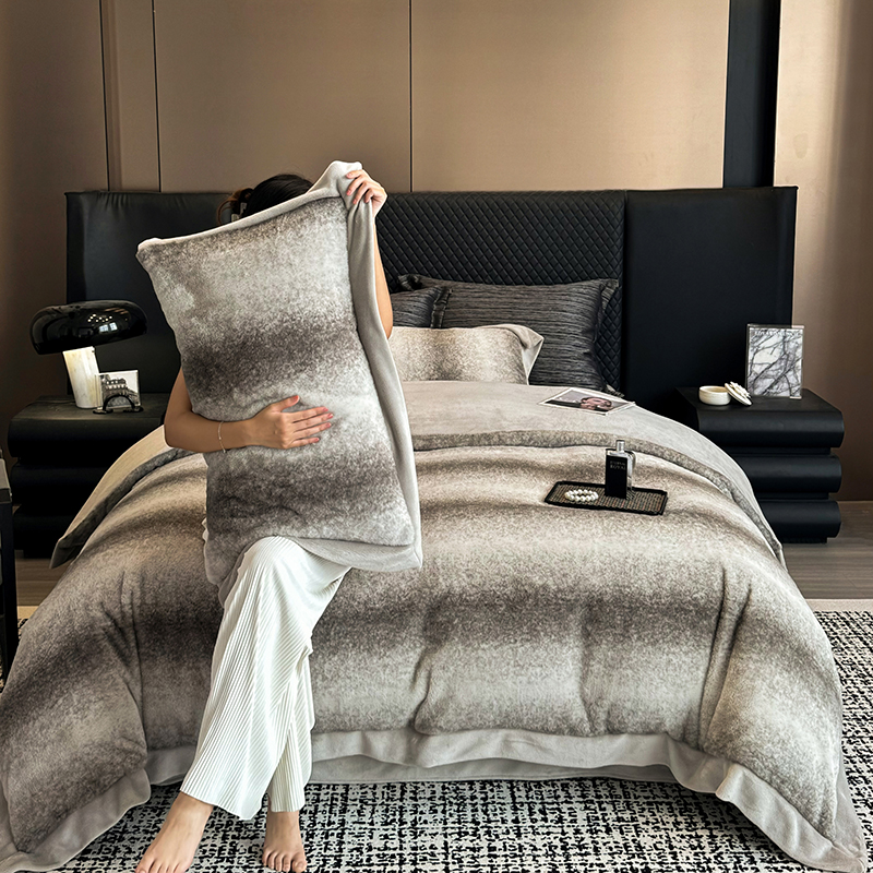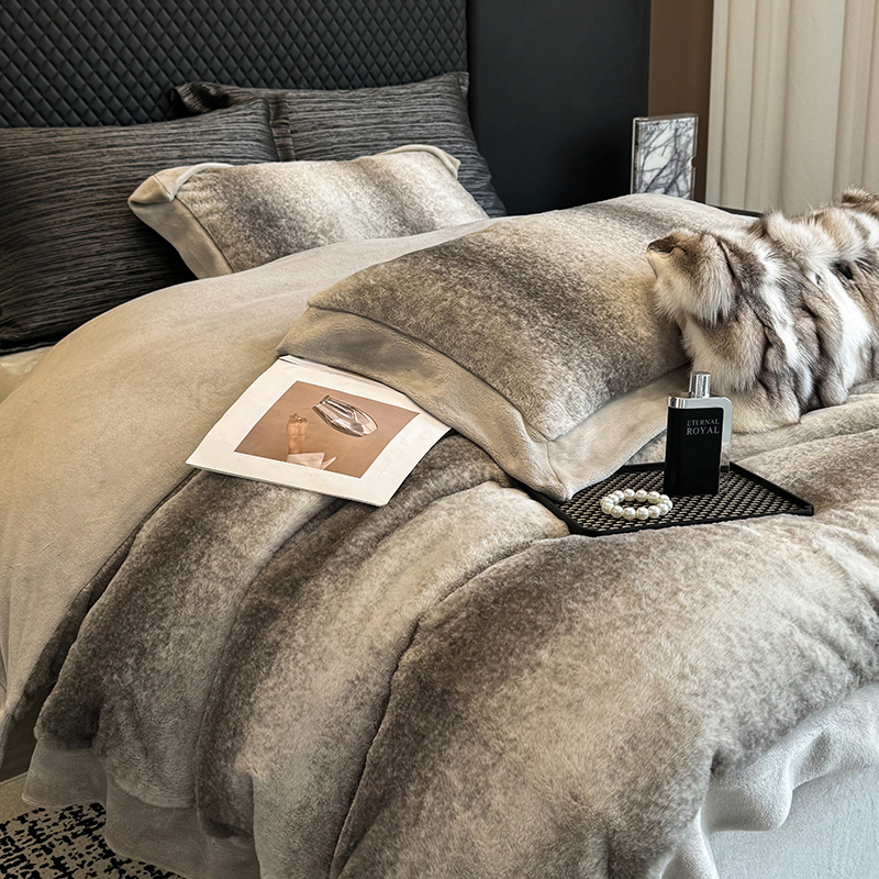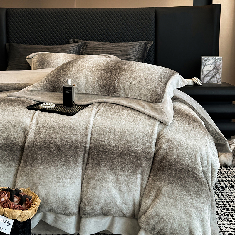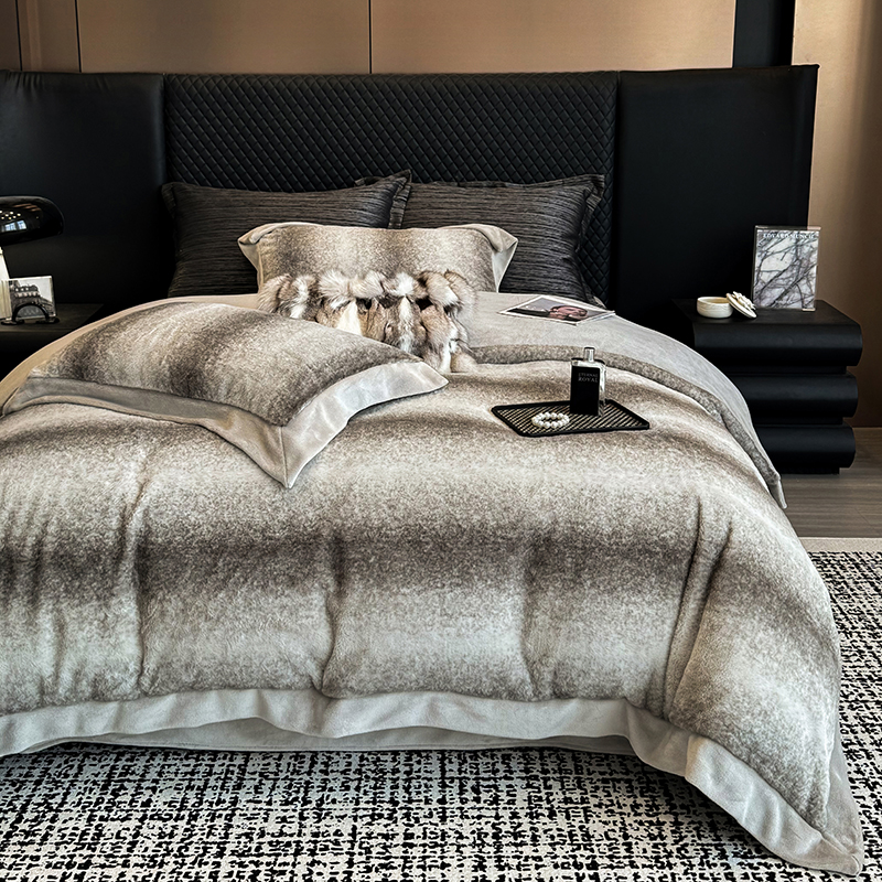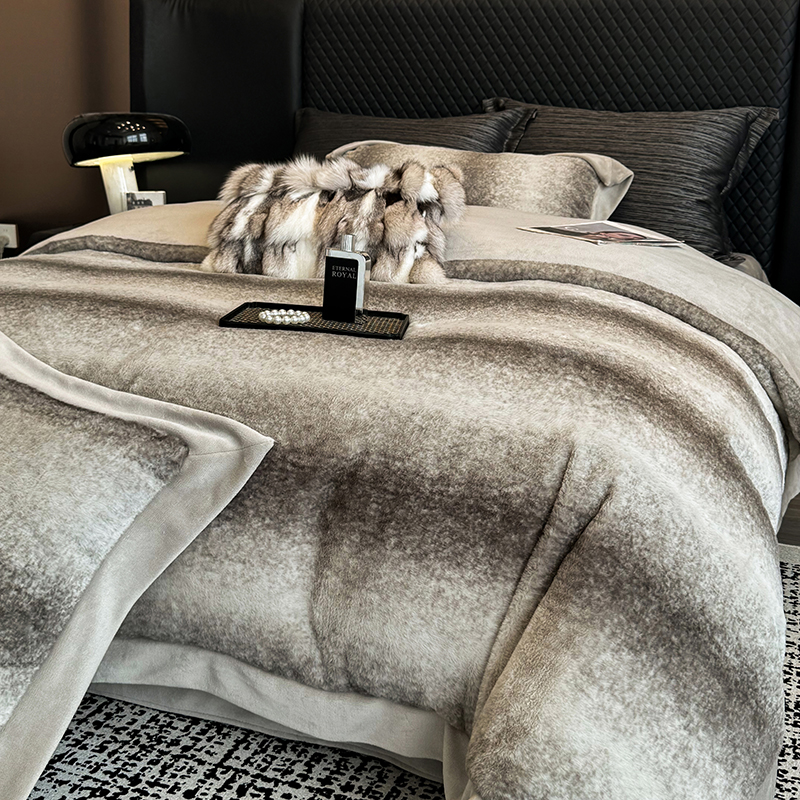 商品名称:若未家居 LOVEWE HOUSE 2025新款秋冬渐变丹麦貂四件套-卡洛斯 卡洛斯-杏仁米灰