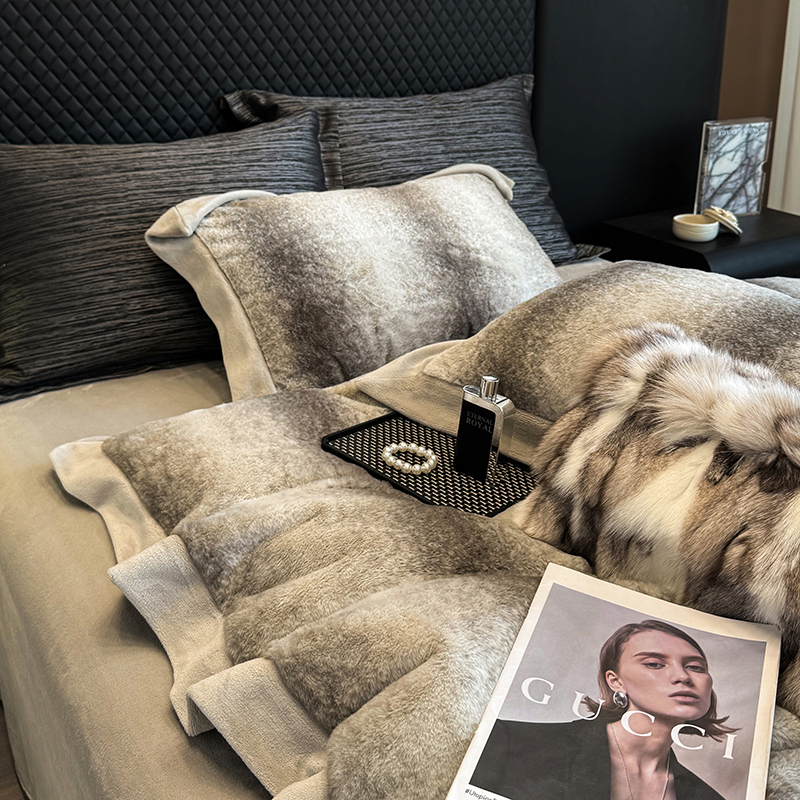 (总)若未家居 LOVEWE HOUSE 2025新款轻奢意式风仿真貂绒床盖四件套A版400克B版260克-北国雪乡,北国雪乡 暗夜灰,北国雪乡 咖,北国雪乡 驼