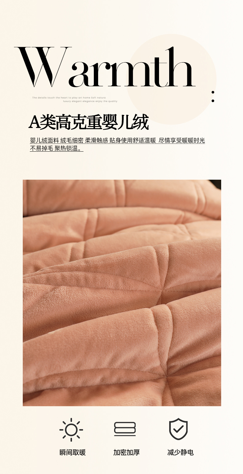 商品名称:网客家纺 2024新款婴儿绒三层夹棉加厚毛毯 豆蔻玉