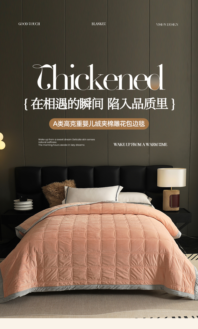 网客家纺 2024新款婴儿绒三层夹棉加厚毛毯 豆蔻玉