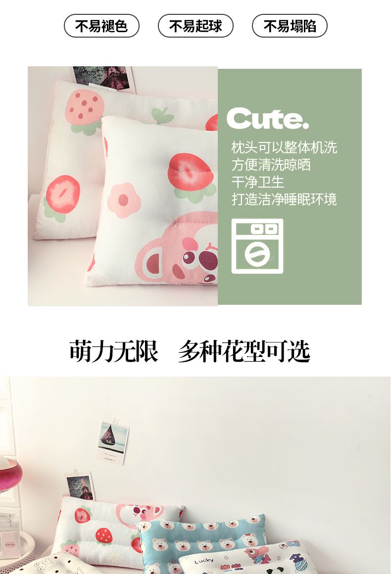 (总)宝晶枕芯 2024新款超柔水洗棉豆豆枕 枕头枕芯,三丽鸥,动物聚会,恐龙乐园,乐园,小熊,小熊仔
